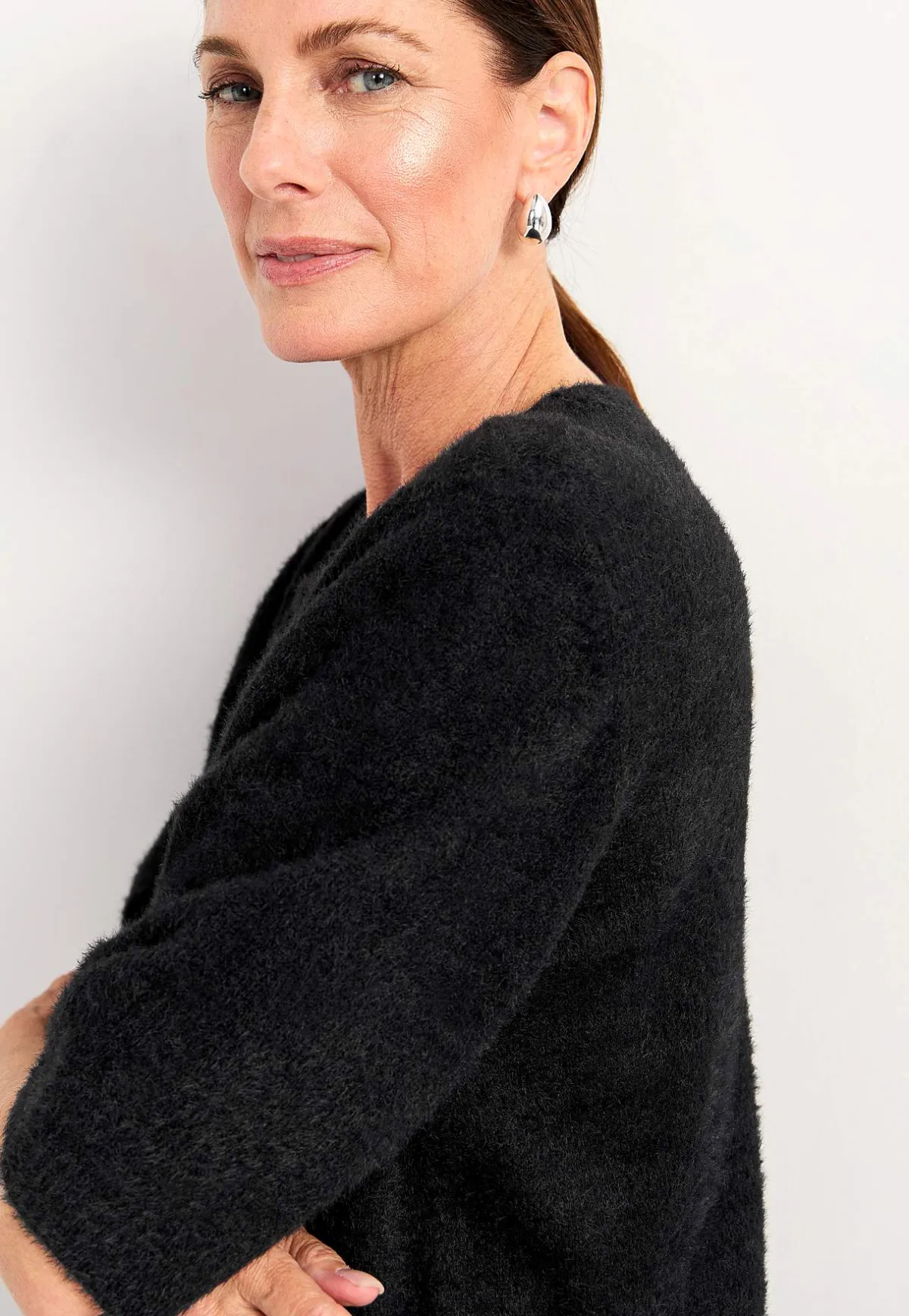 • Fully fashioned-stickade ärmhål.