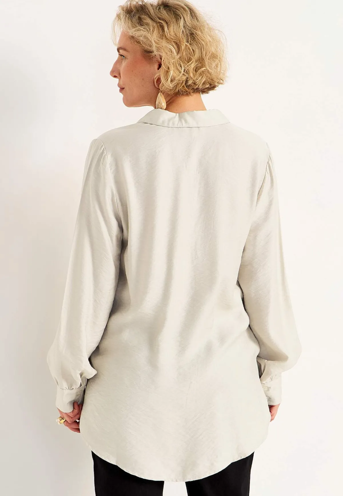 • Långa ärmar med manschett, två knappar och rynk i ärmsluten.