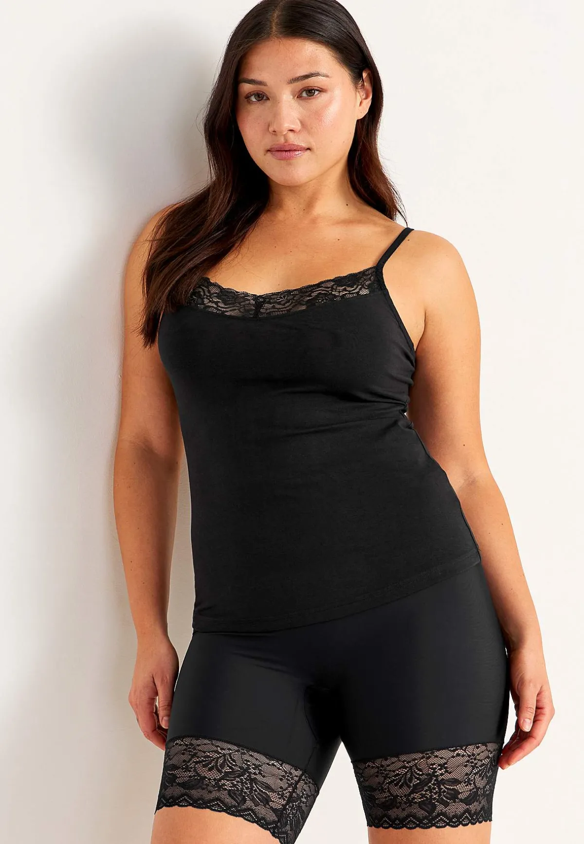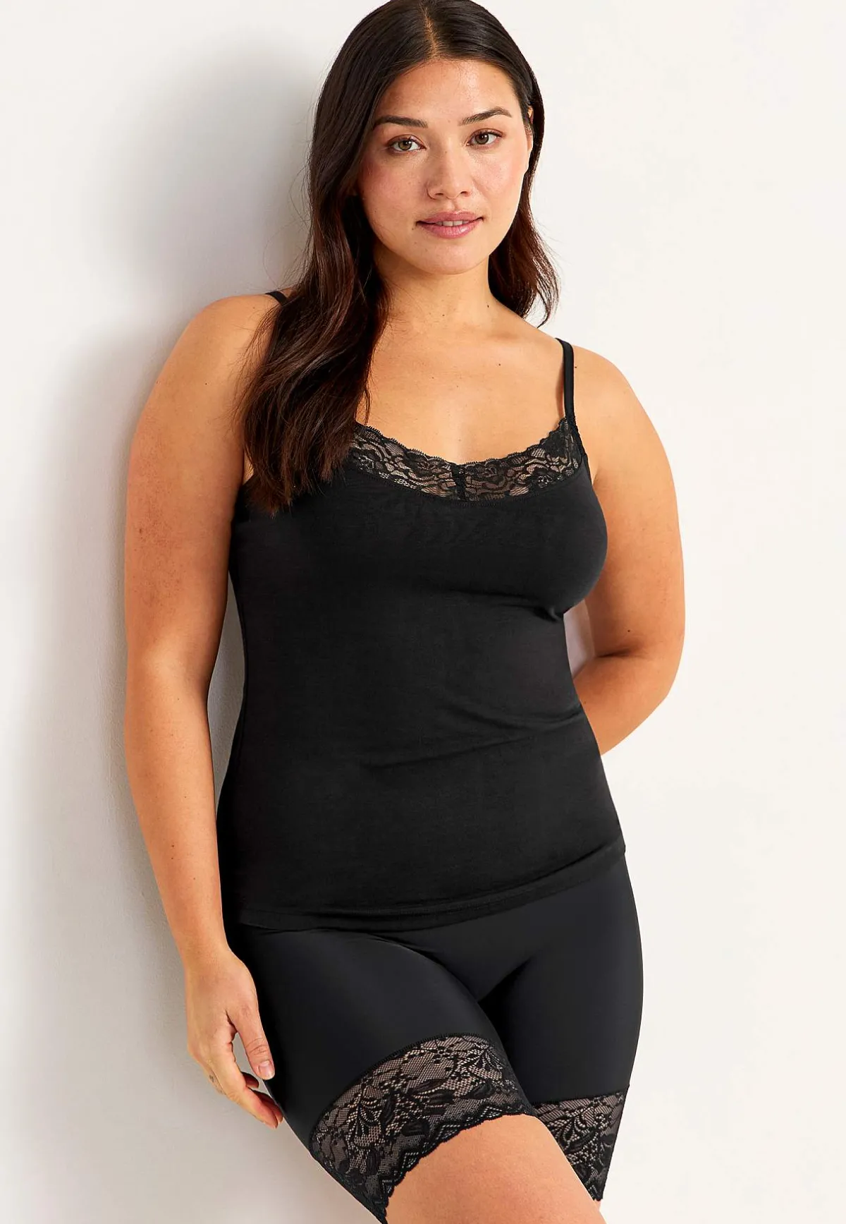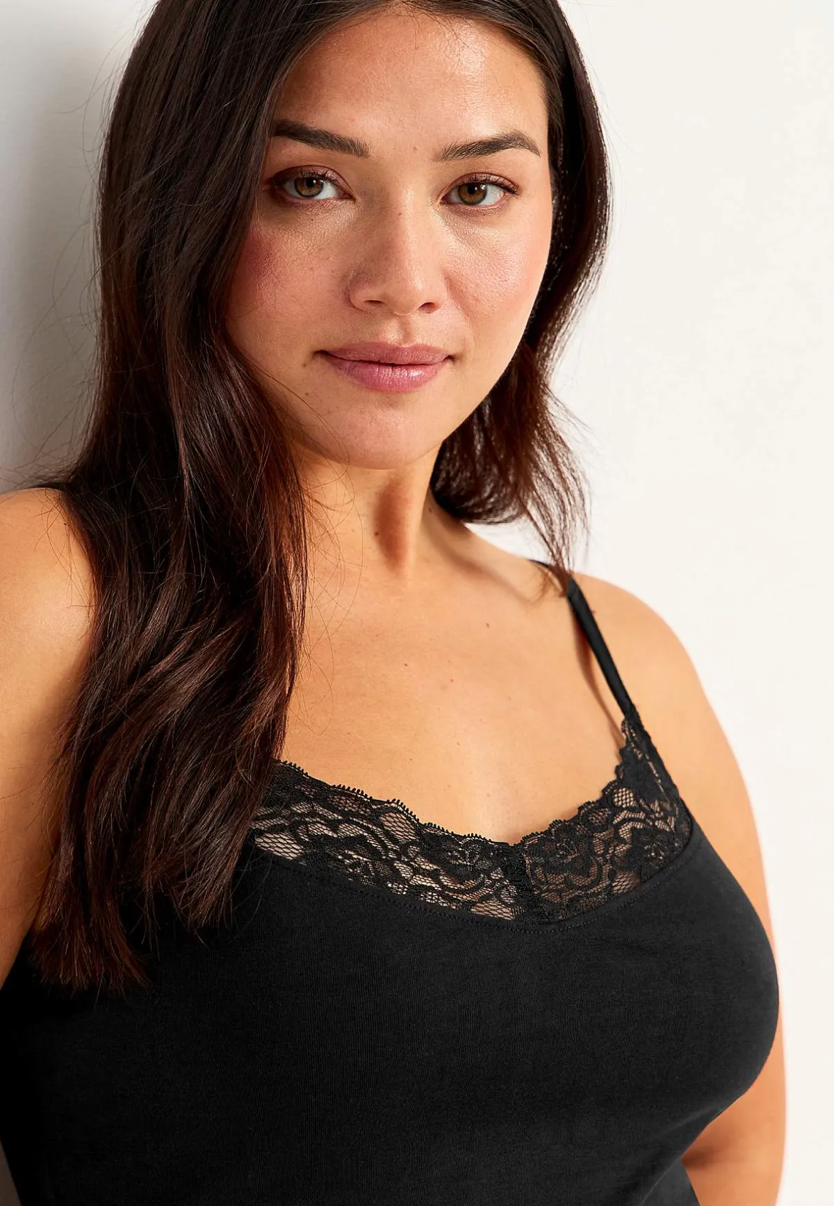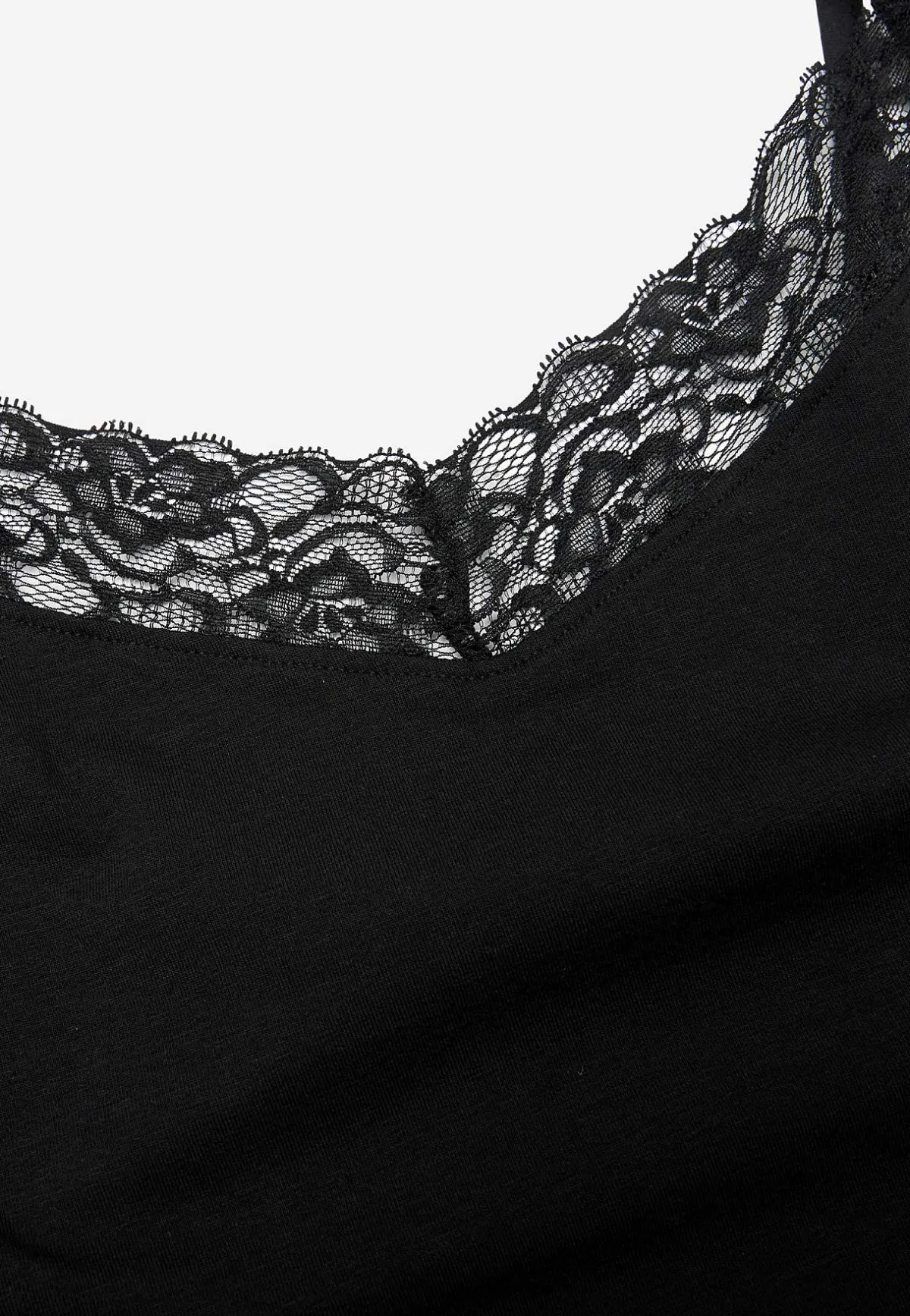 • V-ringning framtill med spets.