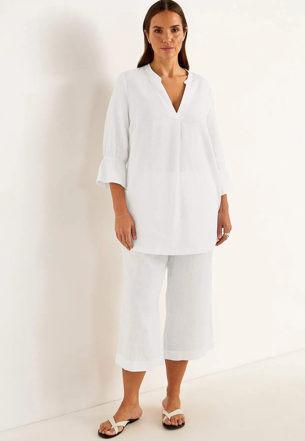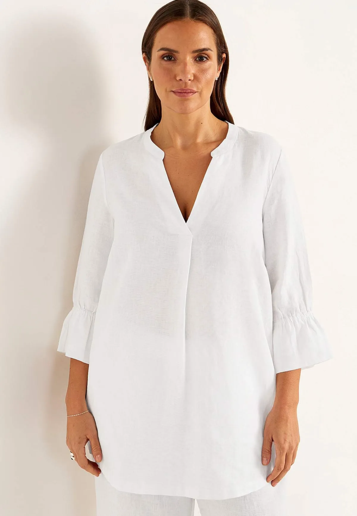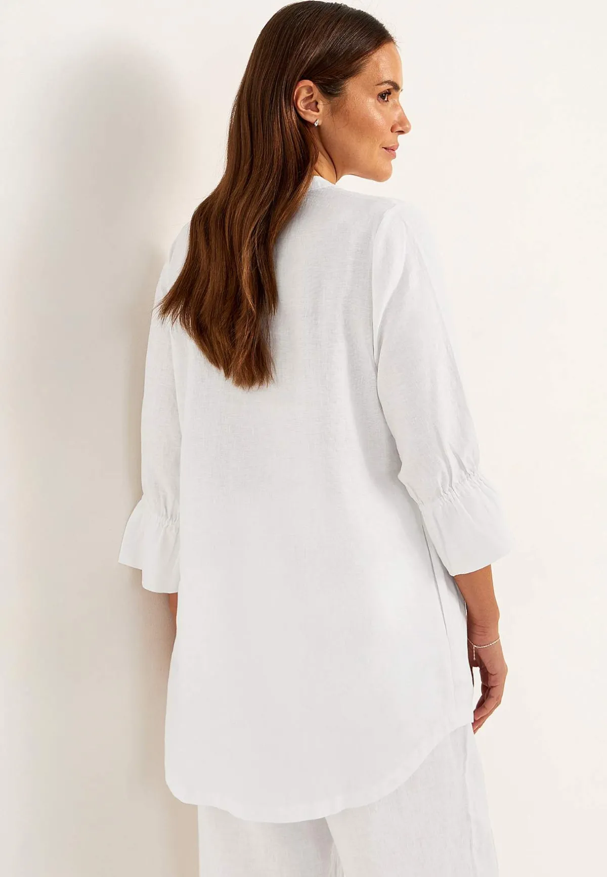 • 3/4-ärm med volang och resår i ärmsluten.