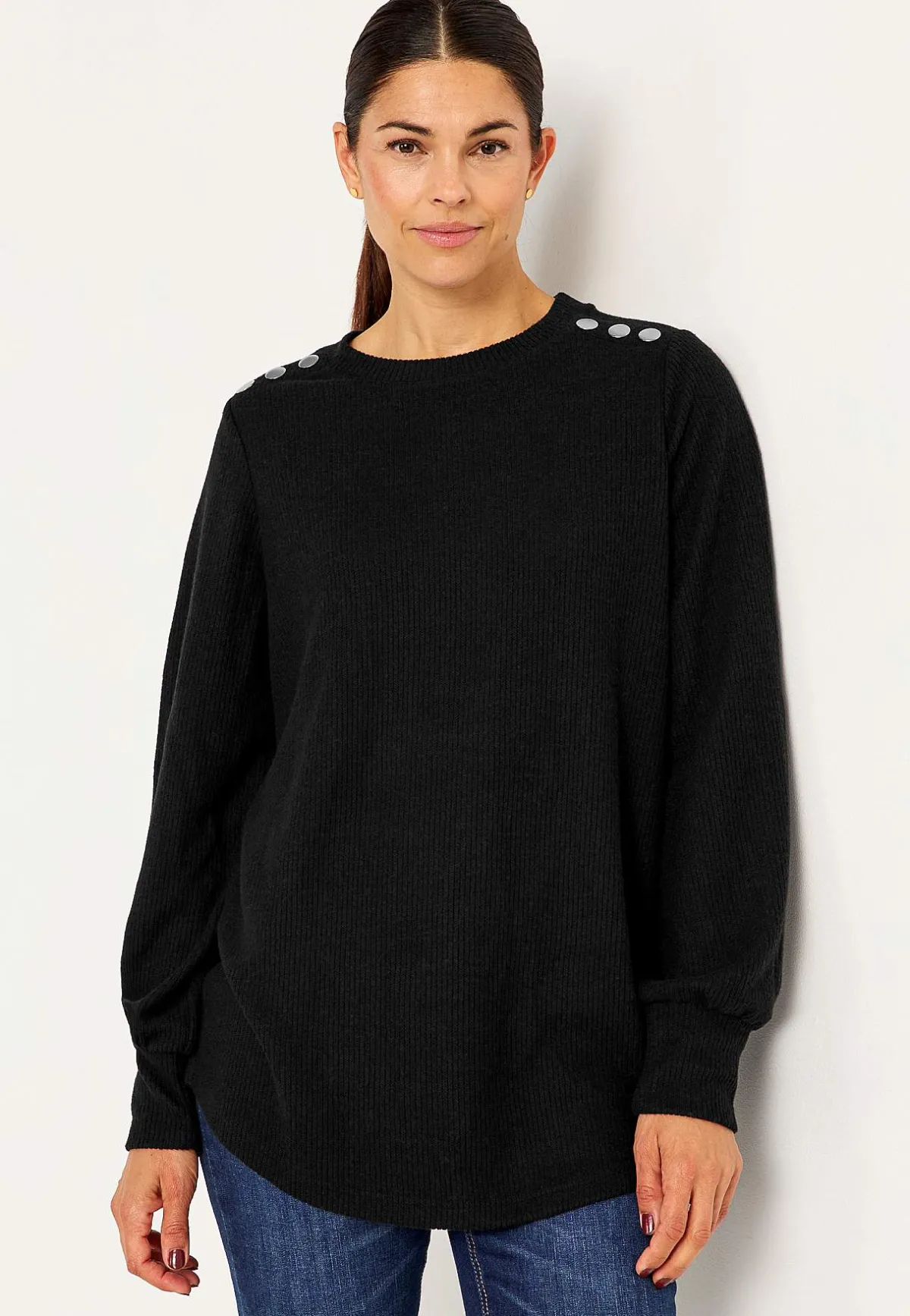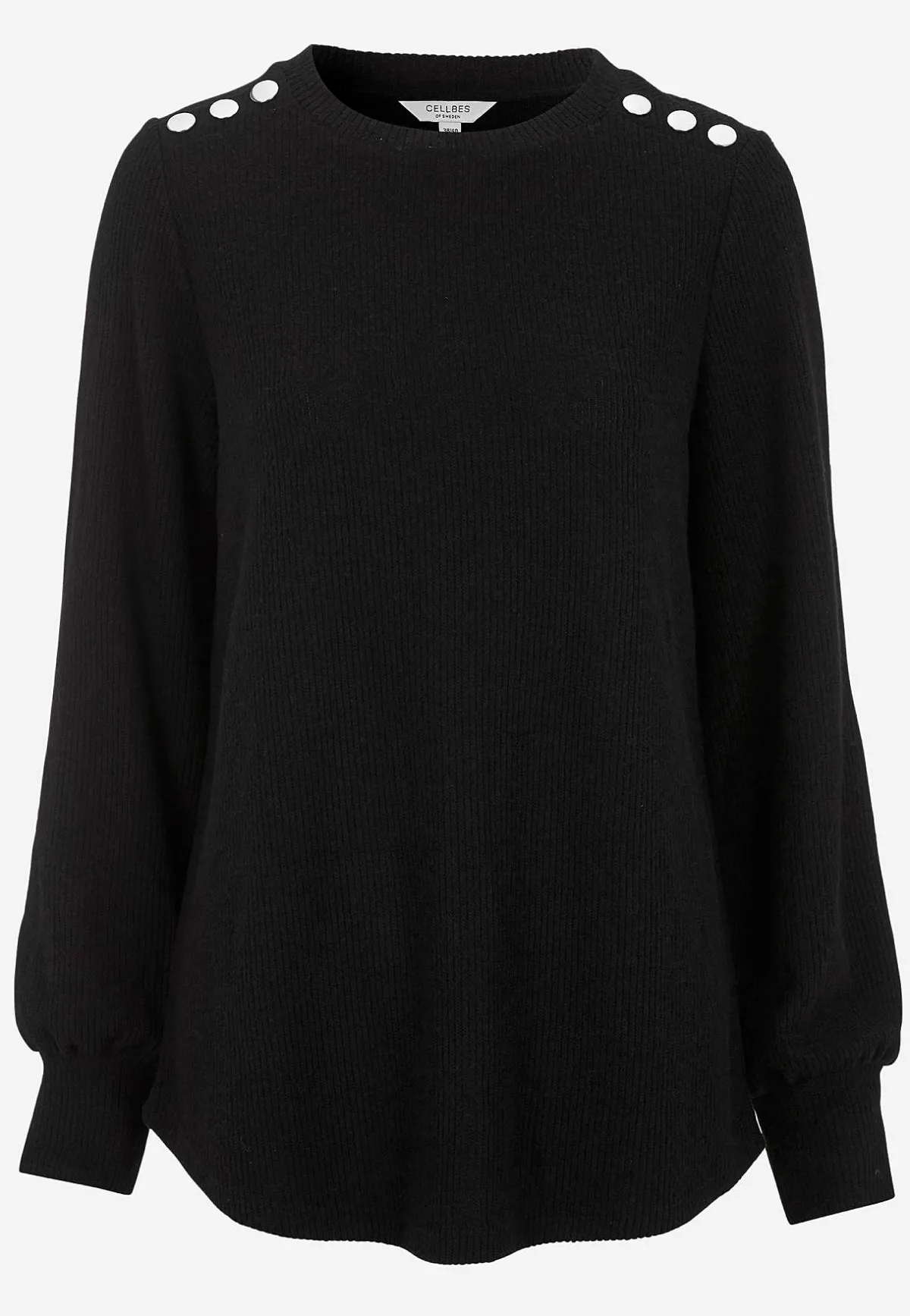 • Rundhalsad med knappdekor.