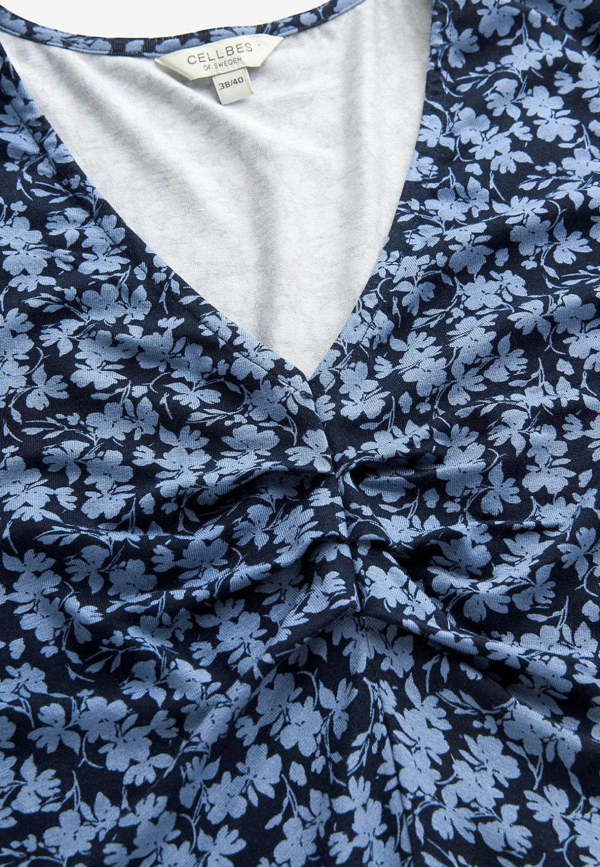 • V-ringad hals med veckad detaljsöm fram.