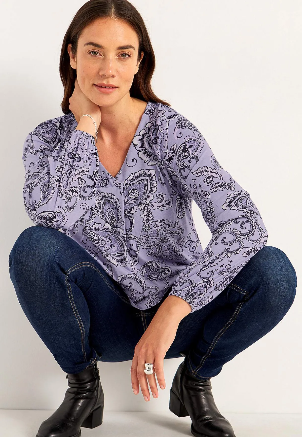 • V-ringad halsringning med effektfullt veck framtill.