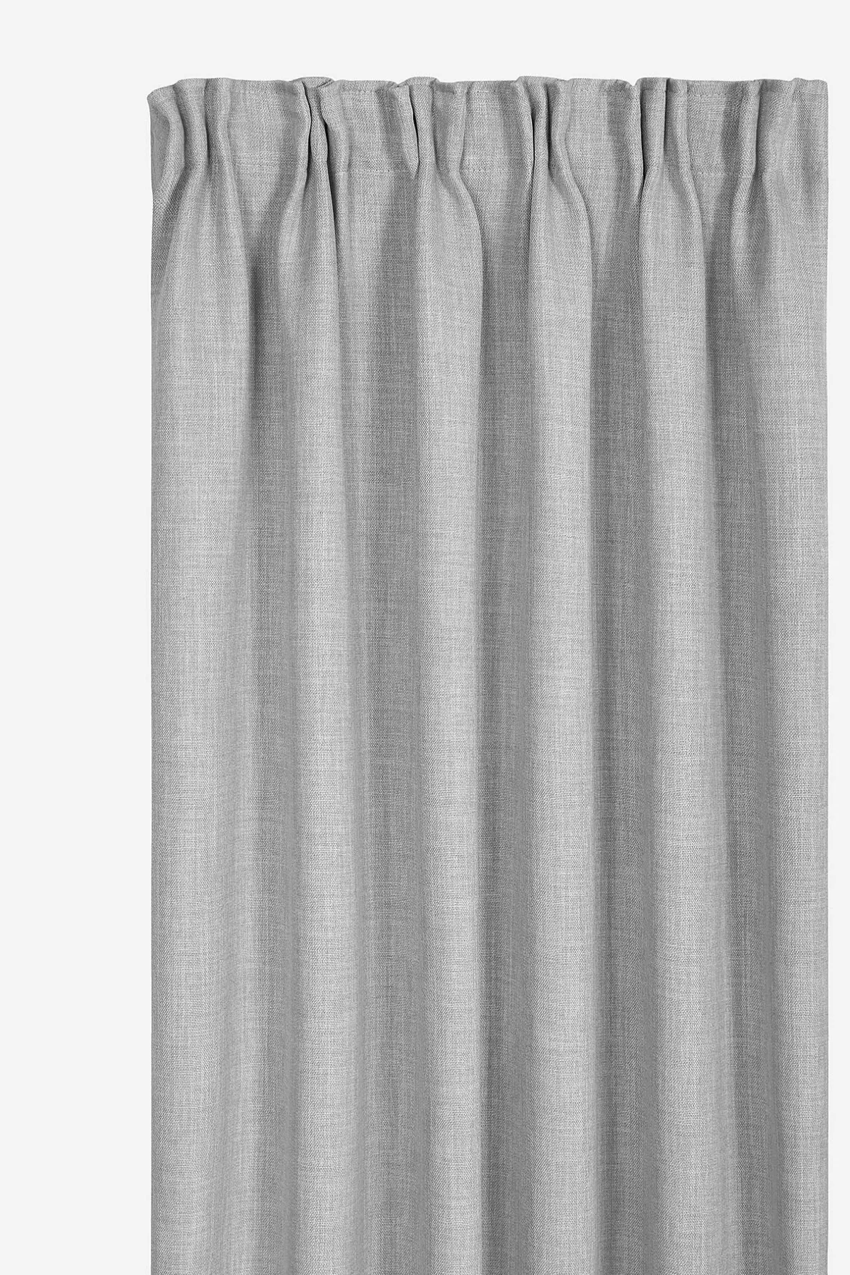 Mörkläggningsgardiner är användbara året runt. Är de dessutom tidlösa och snygga som de här bli det enkelt att skapa en fin hemtrevlig atmosfär. Enfärgad, något melerad väv med struktur. Slät enfärgad baksida i ton med framsidan. Bandet på baksidan har flera upphängningsfunktioner. Stilrena och funktionella med 95% mörkläggningseffekt. Tyget är vävt med en speciell mörkläggande väv. Du får på ett snabbt och enkelt sätt ett mörkt och skönt rum. Lätta att dra för. Levereras overlockade nedtill med fållband som lätt stryks fast för önskad längd.