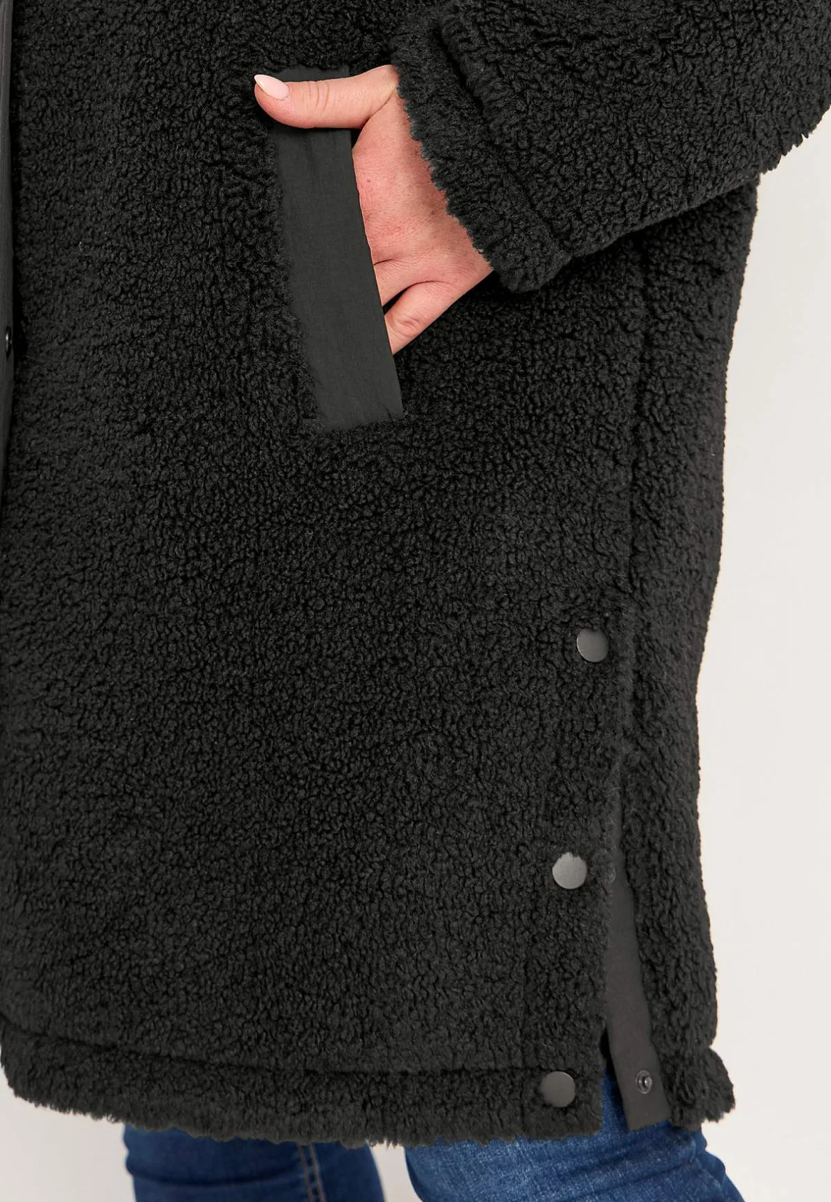• Praktisk tvåvägsdragkedja med knappslå i vävt tyg.