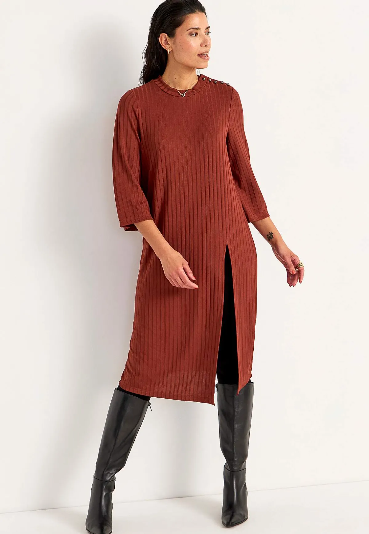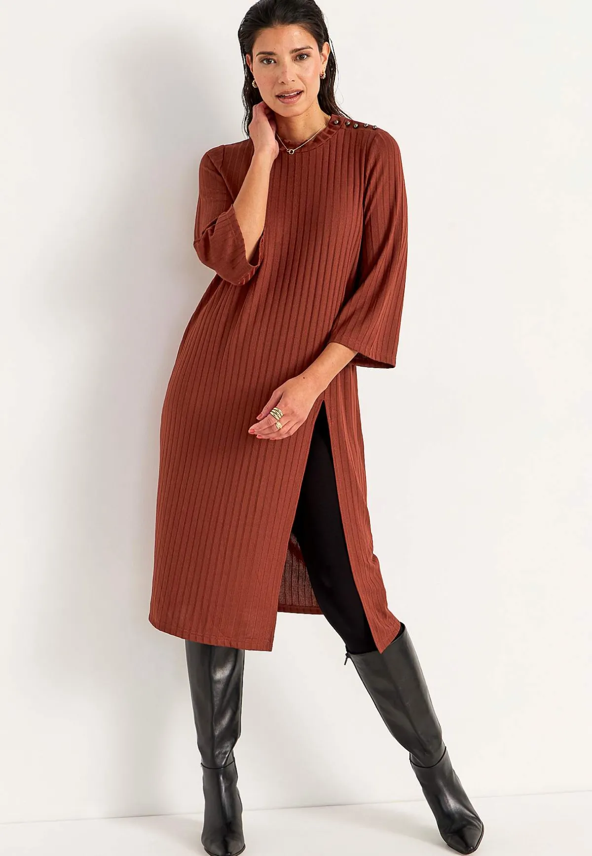 • Rak nederkant med hög slits.