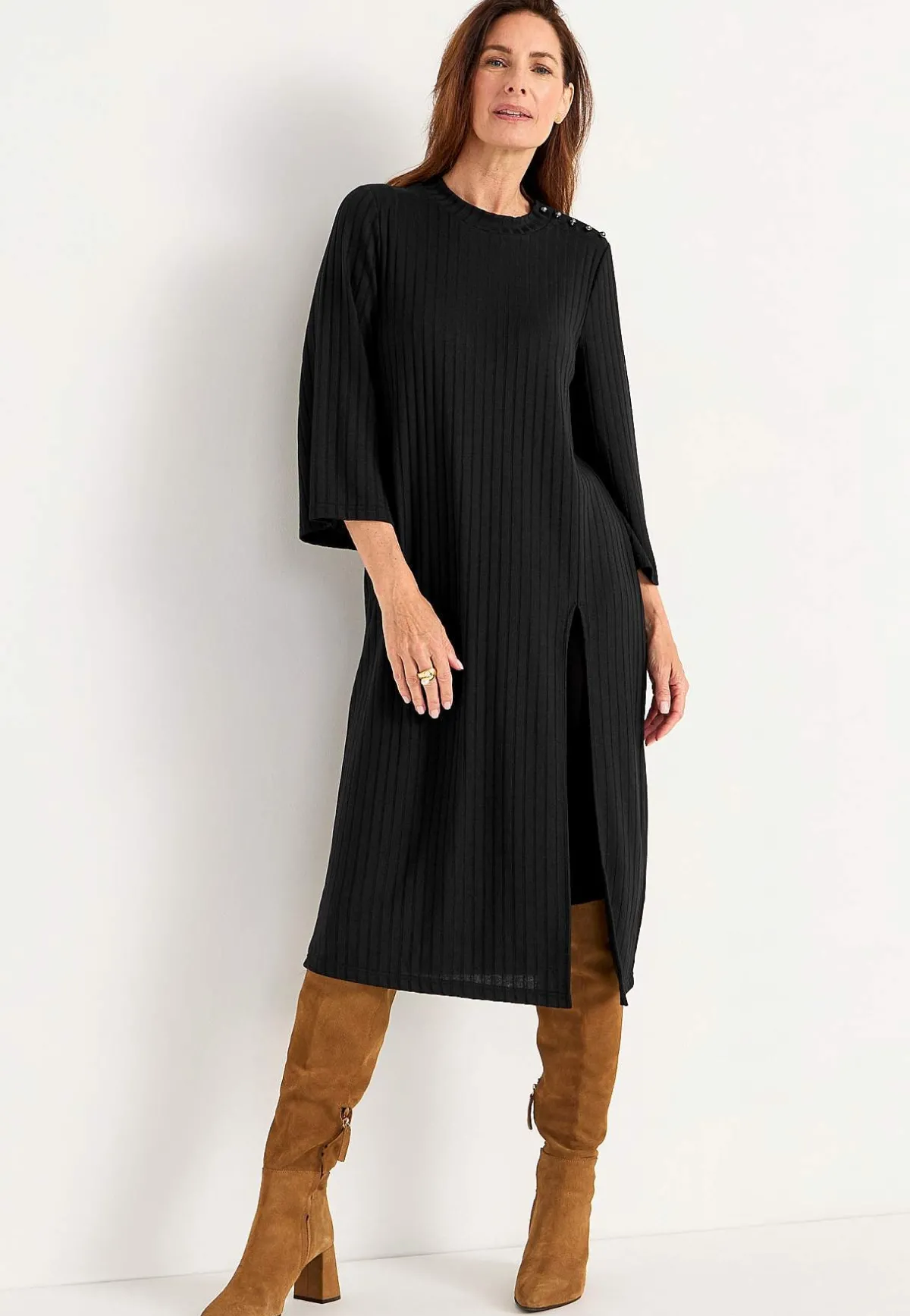 • Rak nederkant med hög slits.