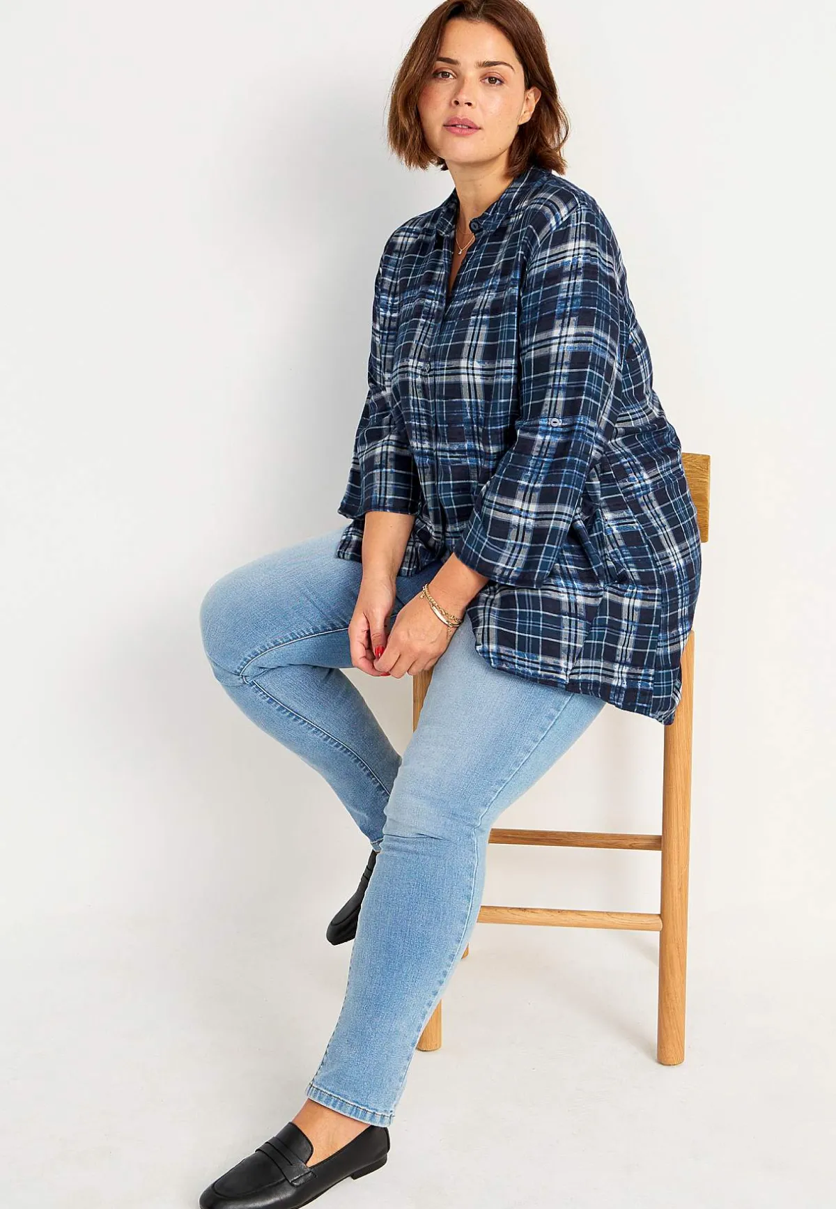 • 3/4-långa, uppvikbara ärmar med slejf och knapp