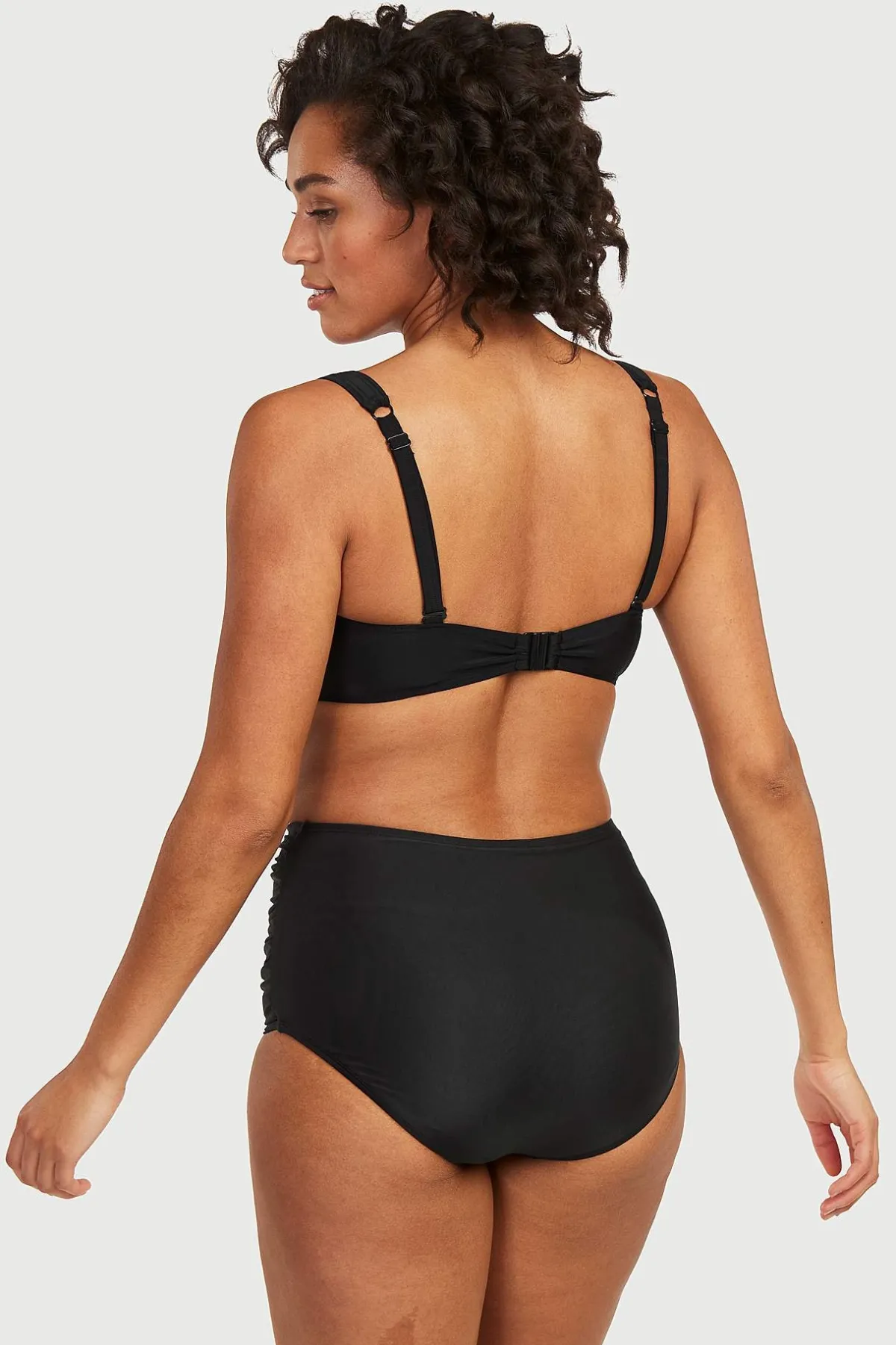 Stilsäker modell med rynkad drapering i sidorna för en smickrande siluett.
