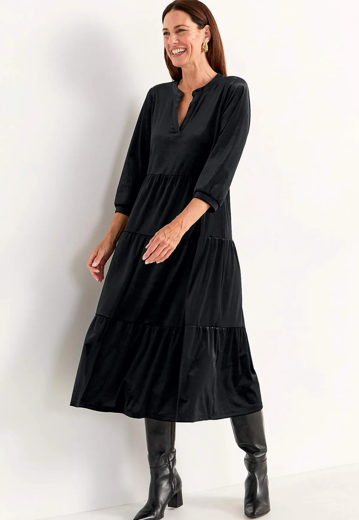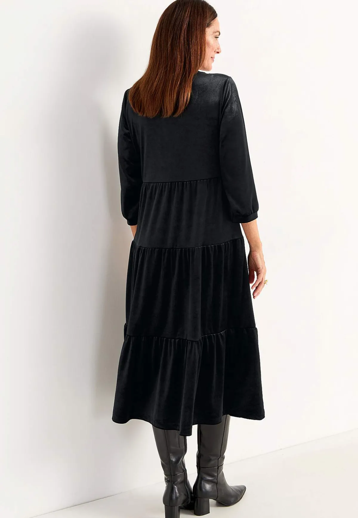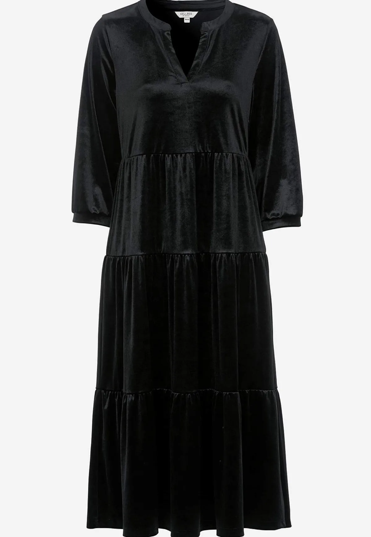 • Vid nederdel med bred volang längst ner.