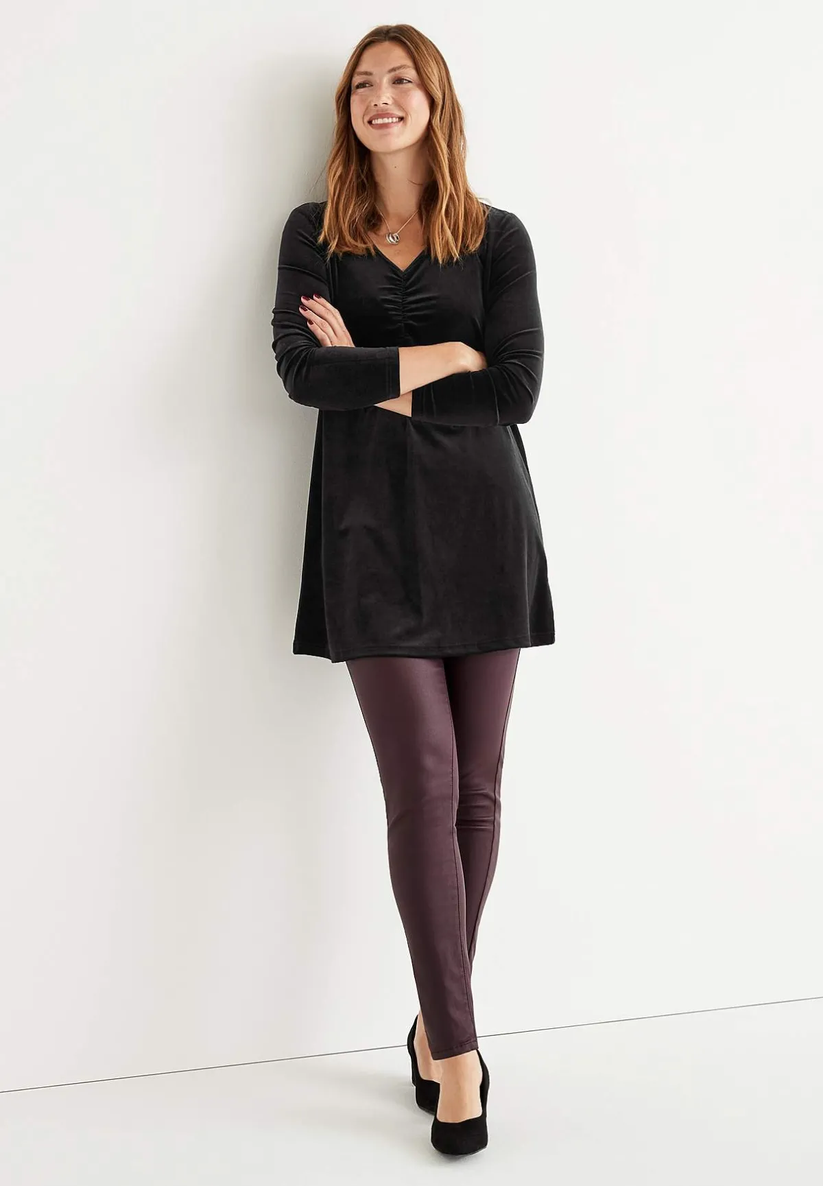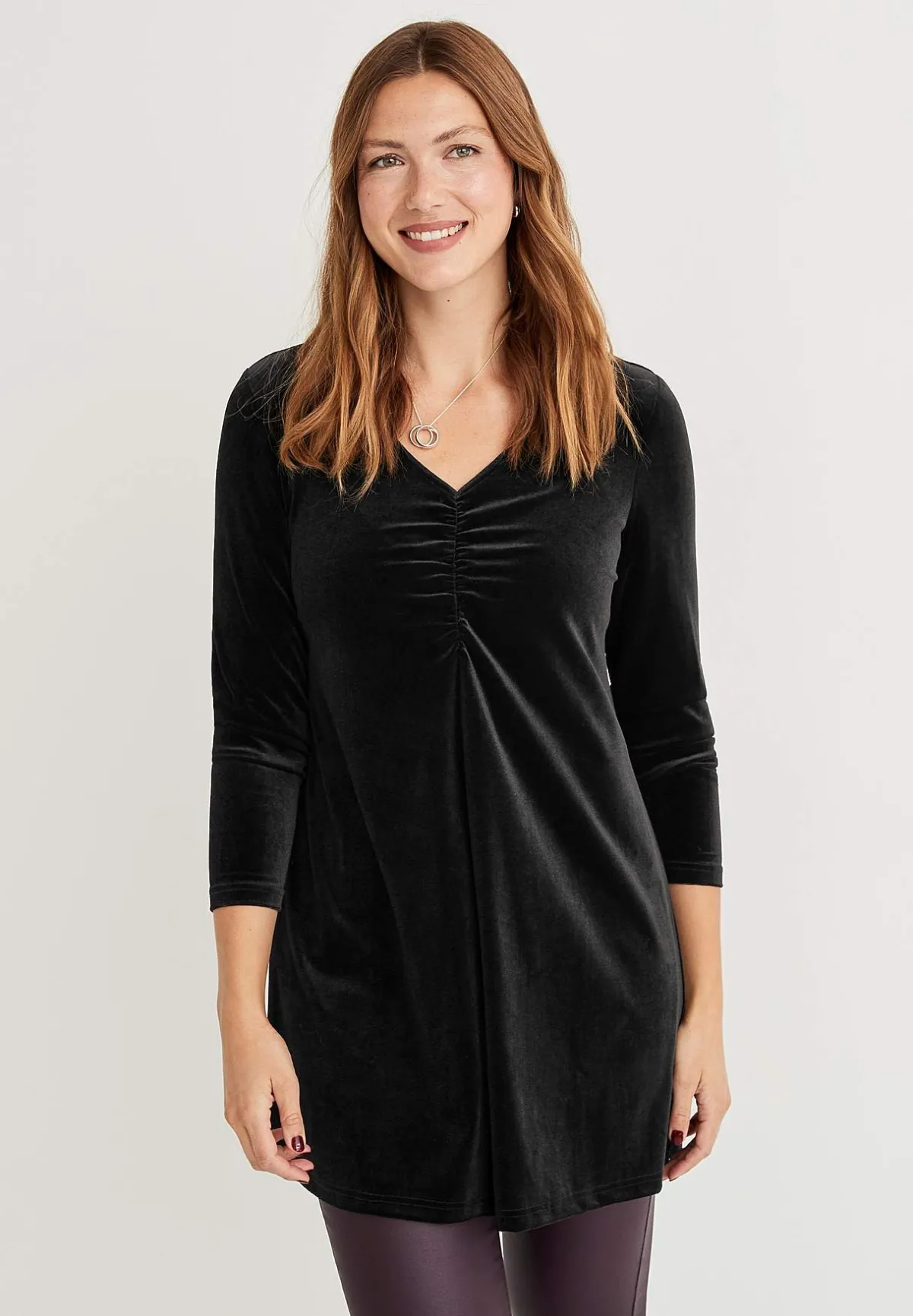 • V-ringad halsringning med rynkdetalj