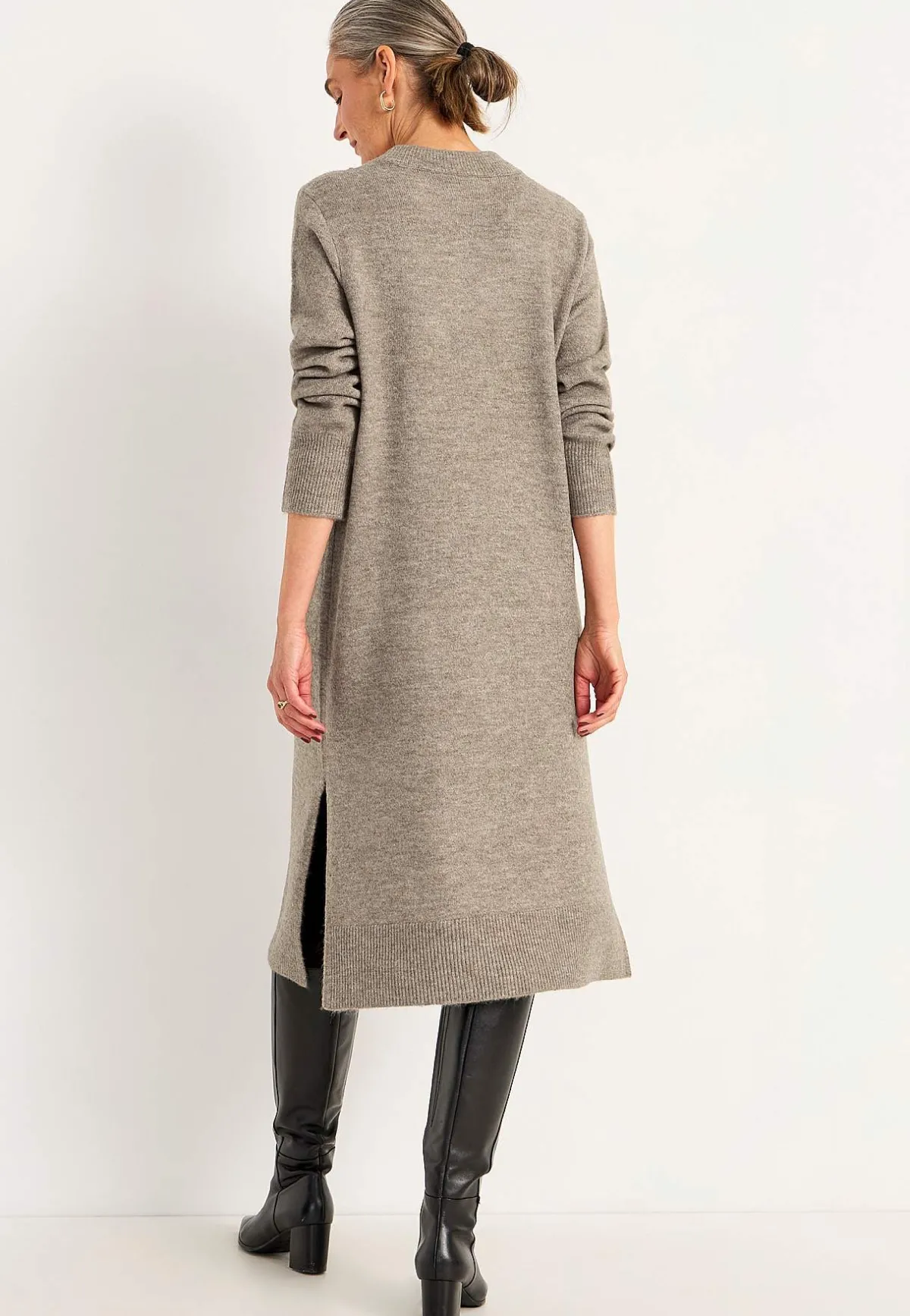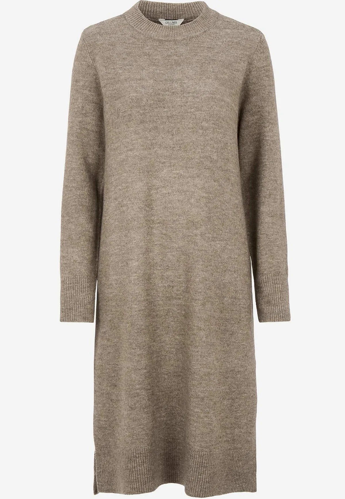 • Finstickad, stretchig klänning med sidoslitsar nedtill och bred ribbstickad kant.