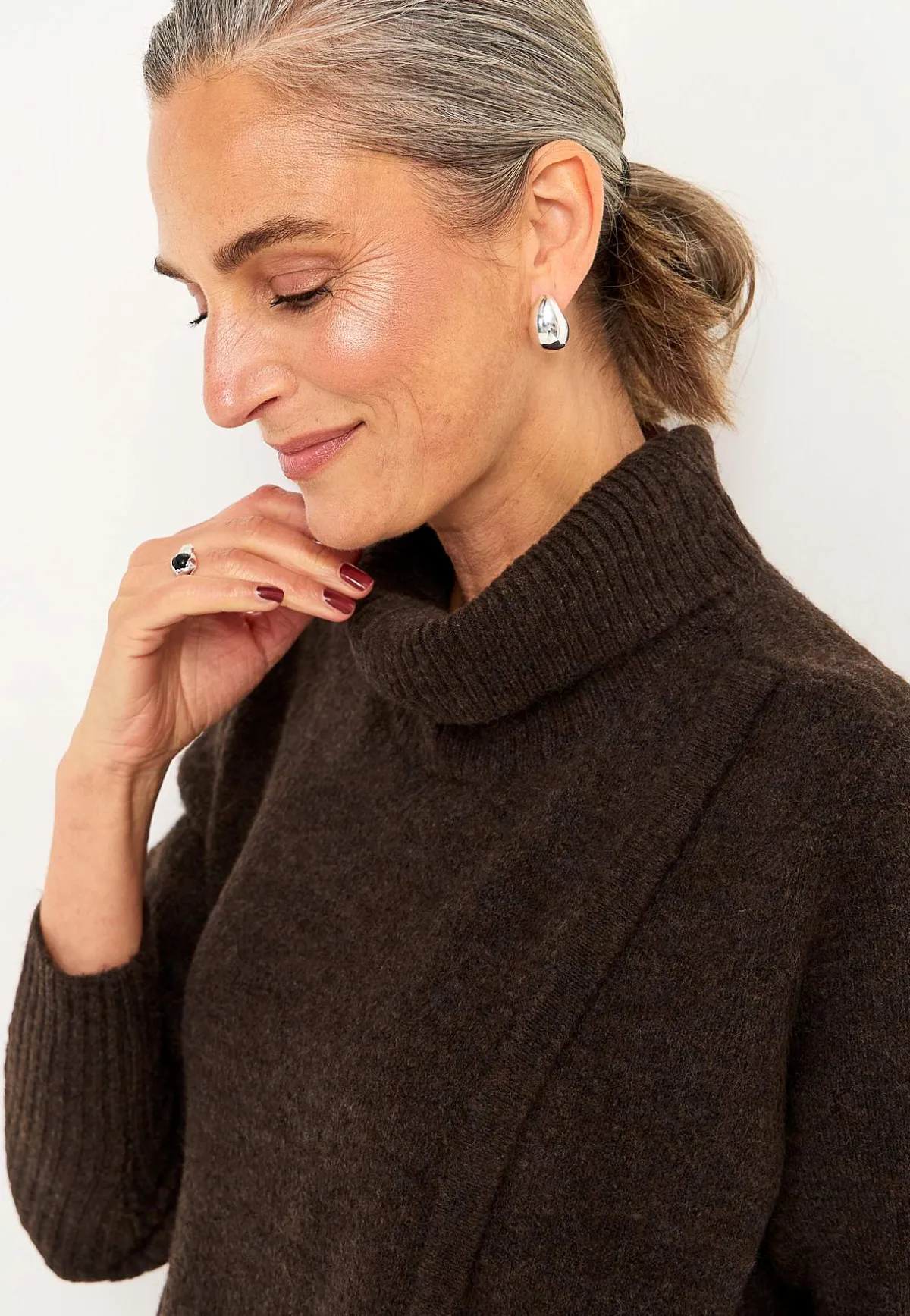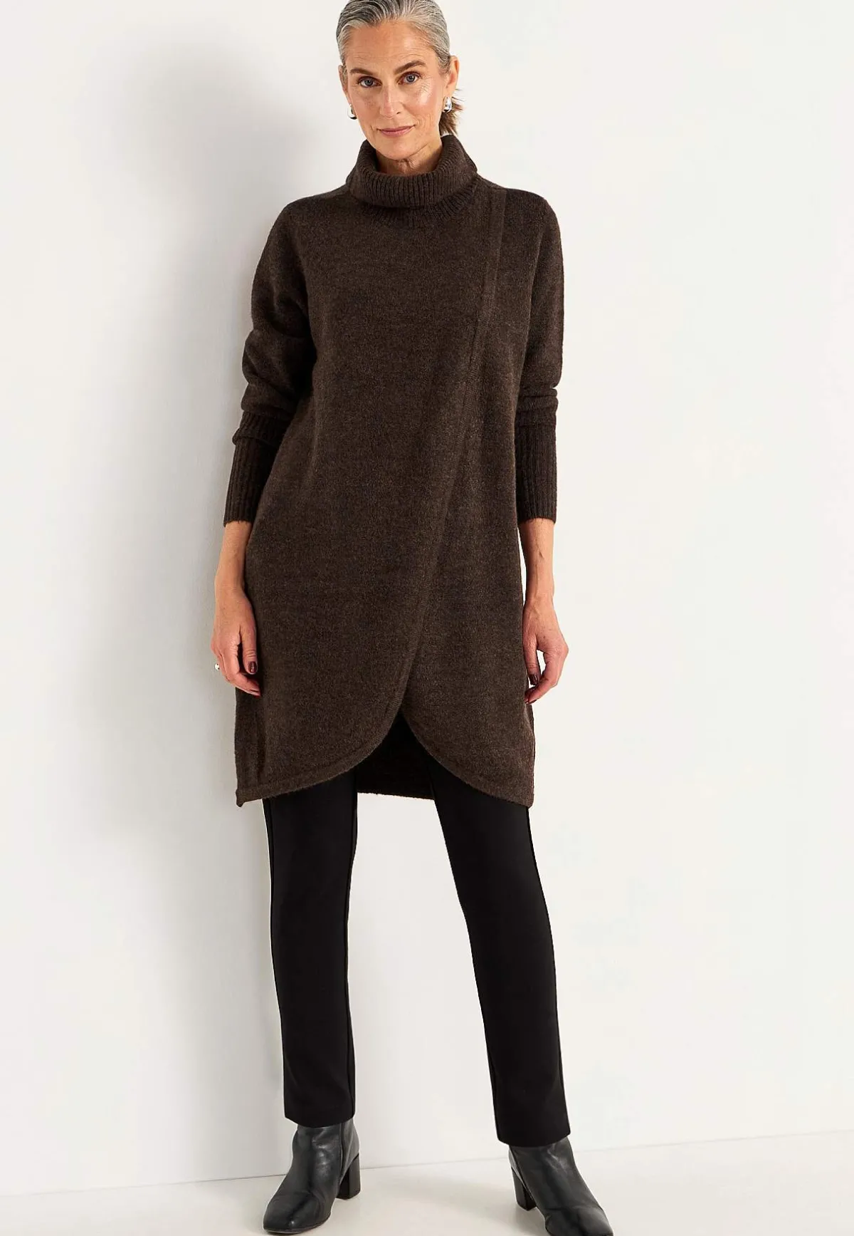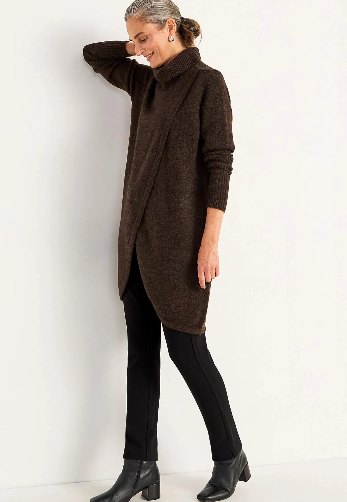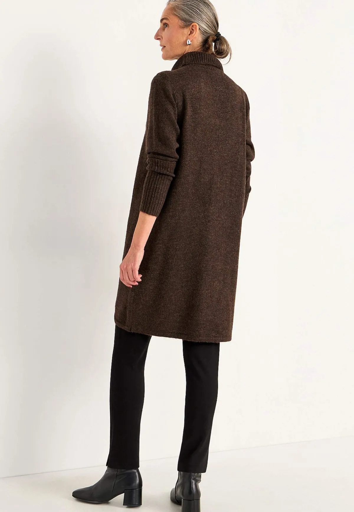 • Långa ärmar med bred ribbstickning i ärmsluten.