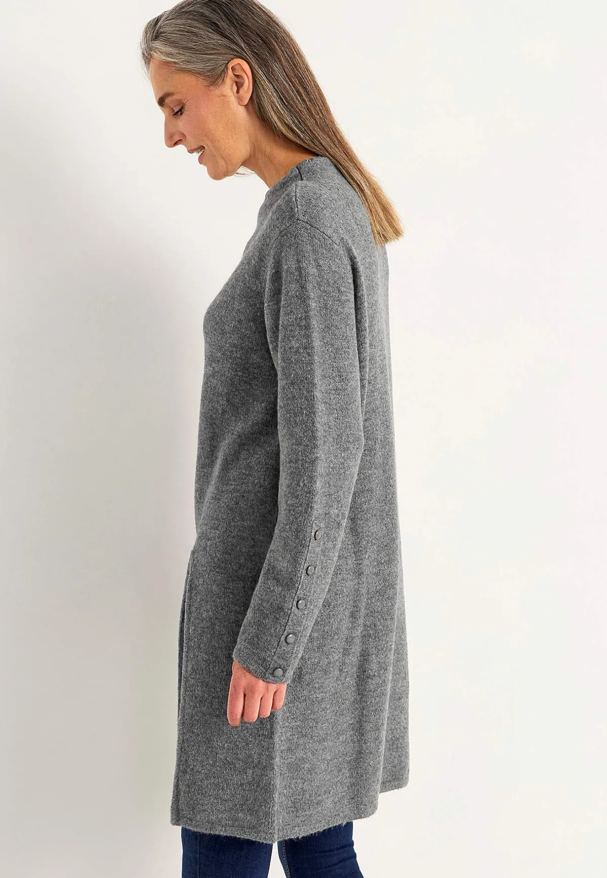 • Långa ärmar med dekorationsknappar i ärmsluten.