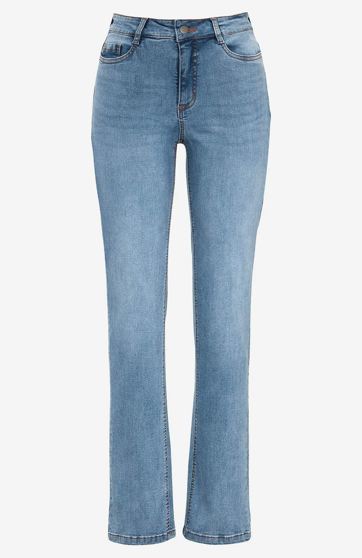 • Klassiska jeans med figurnära passform och rakt benslut.