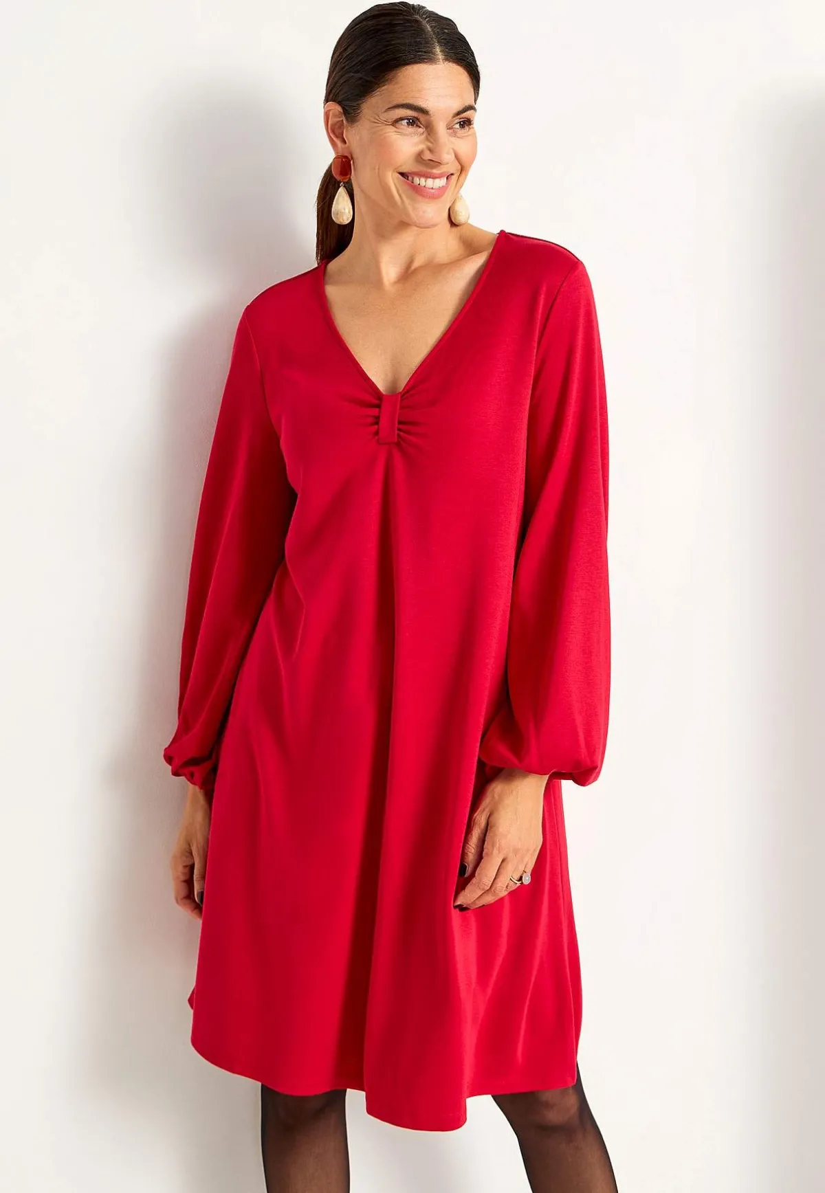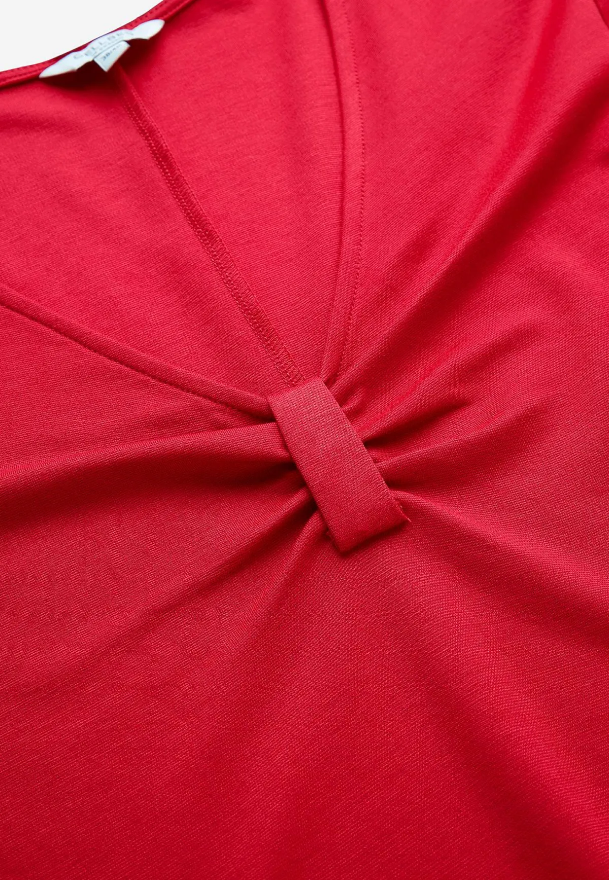 • V-ringad hals med dekorativ rynkdetalj.