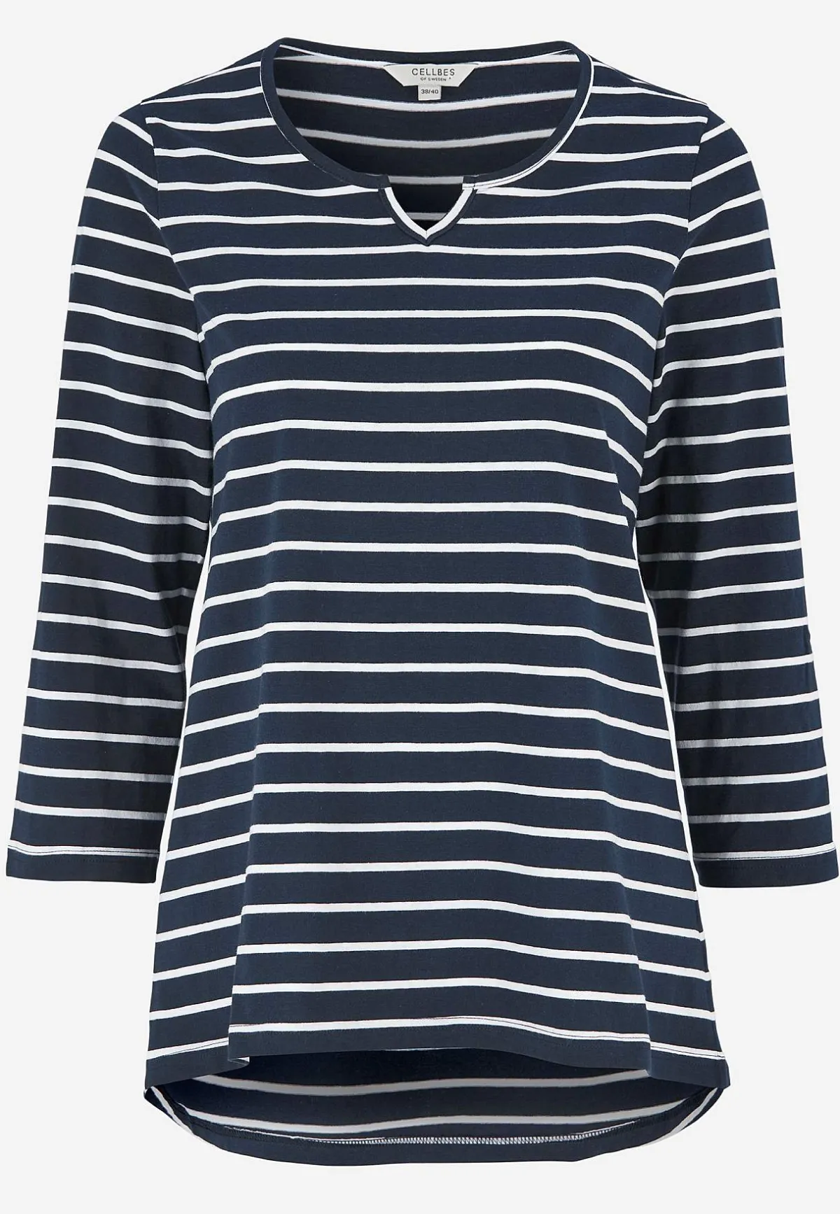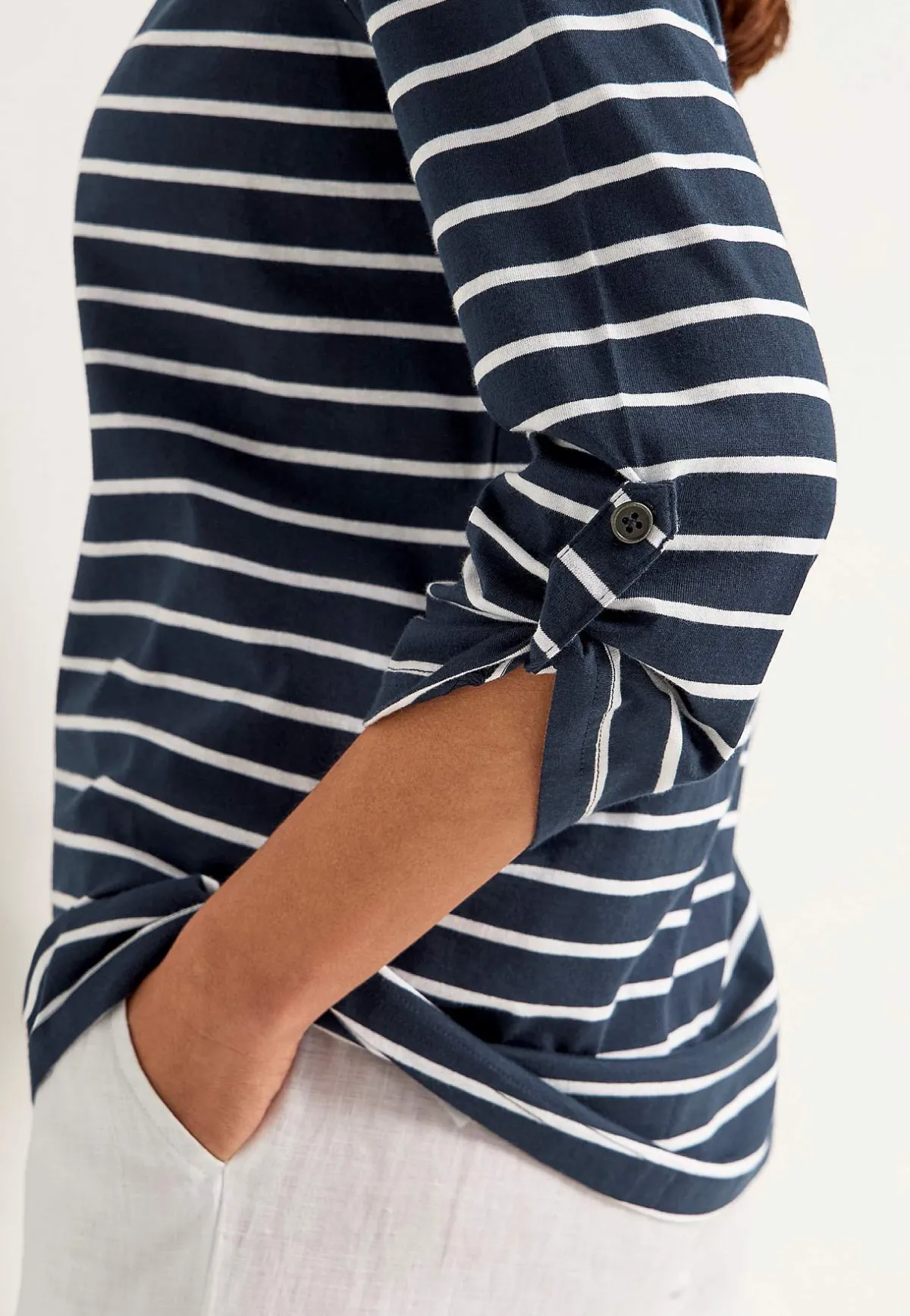 • 3/4-långa, uppvikbara ärmar med slejf och knapp.