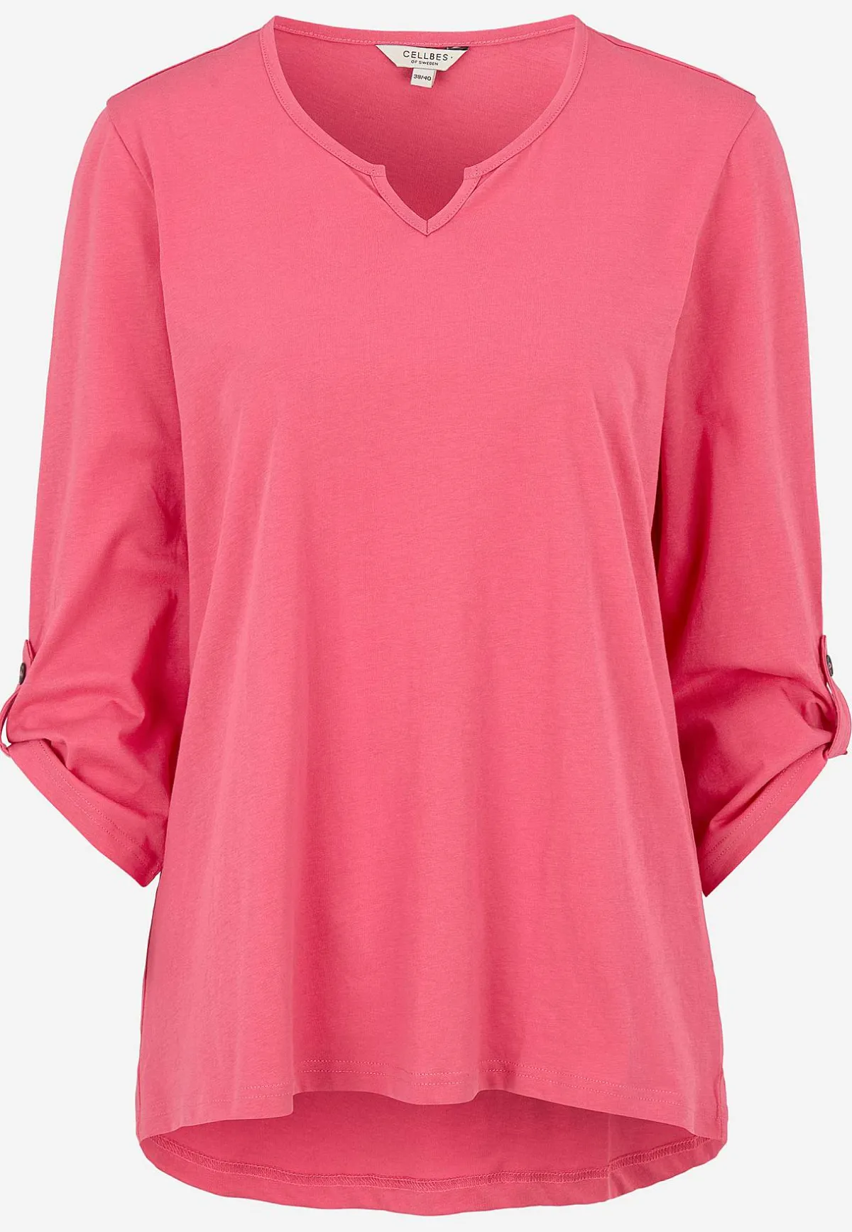 • 3/4-långa, uppvikbara ärmar med slejf och knapp.