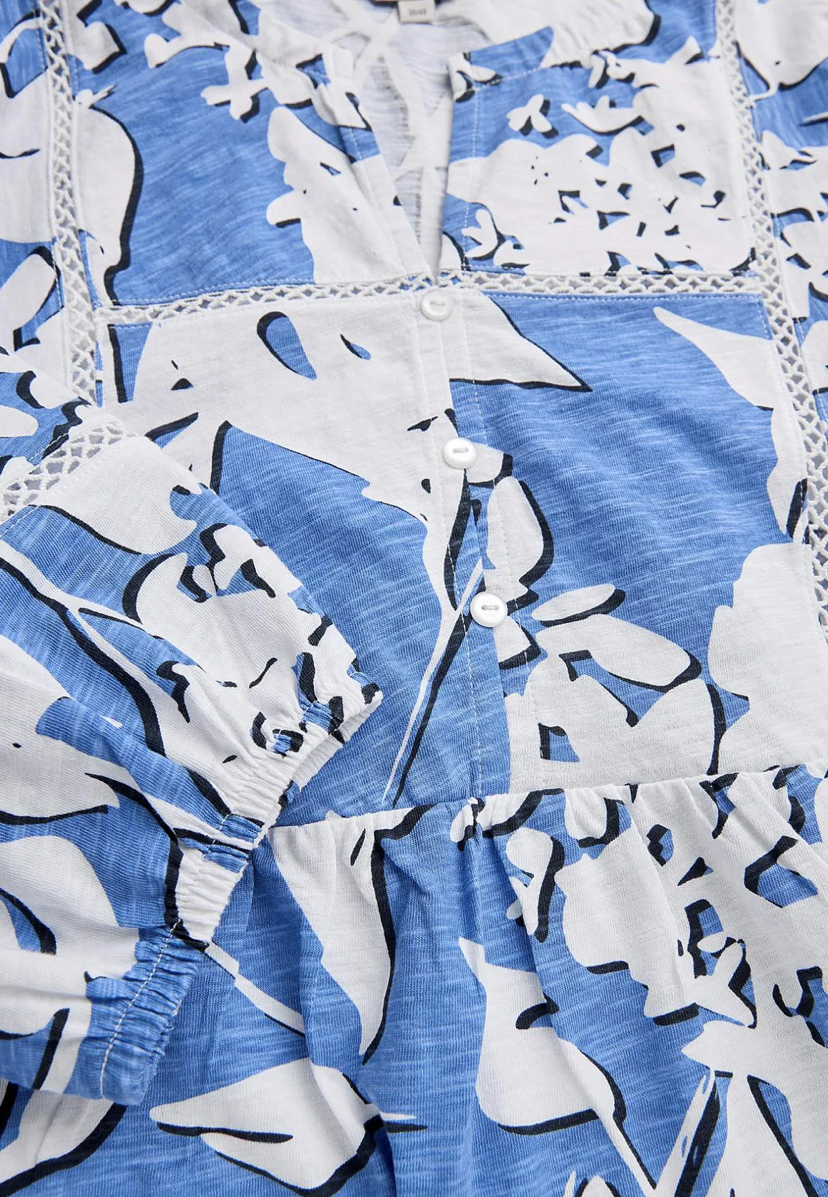 • Dekorativ spetssöm framtill och på ärmarna.