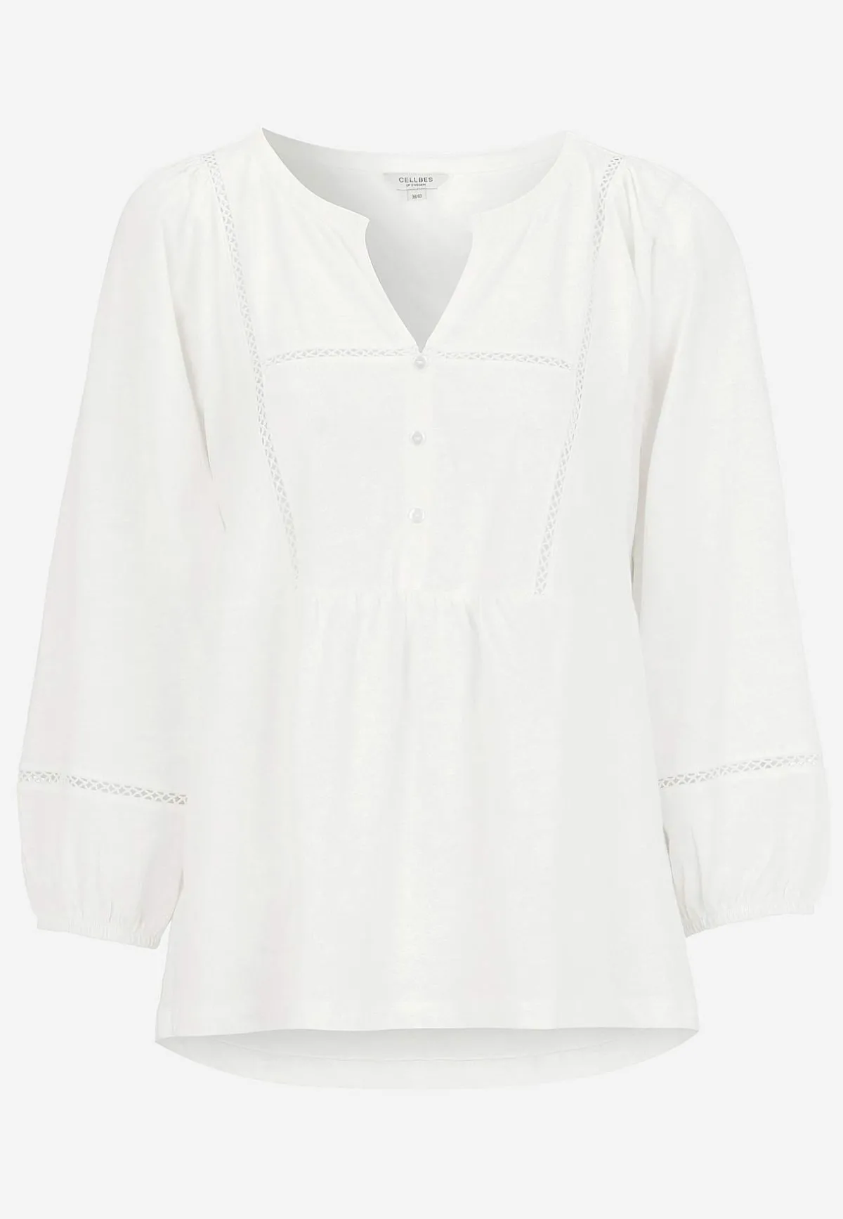 • Vida, 3/4-långa ärmar med rynk på axlarna och i ärmsluten.