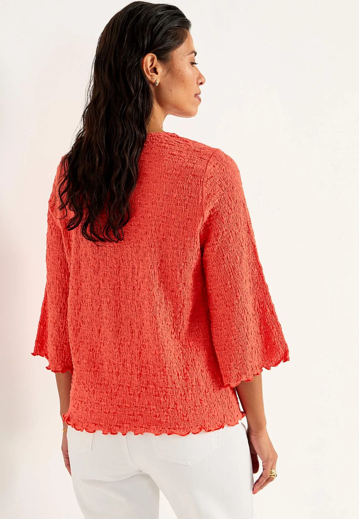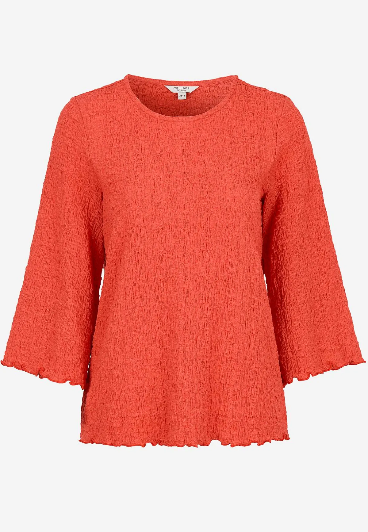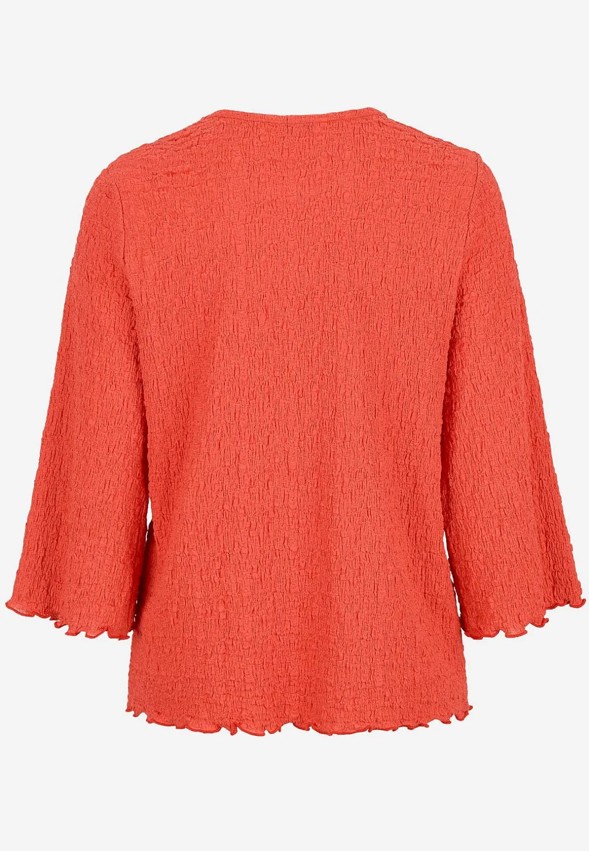 • 3/4-långa ärmar med vidd och overlockad, vågig kant.