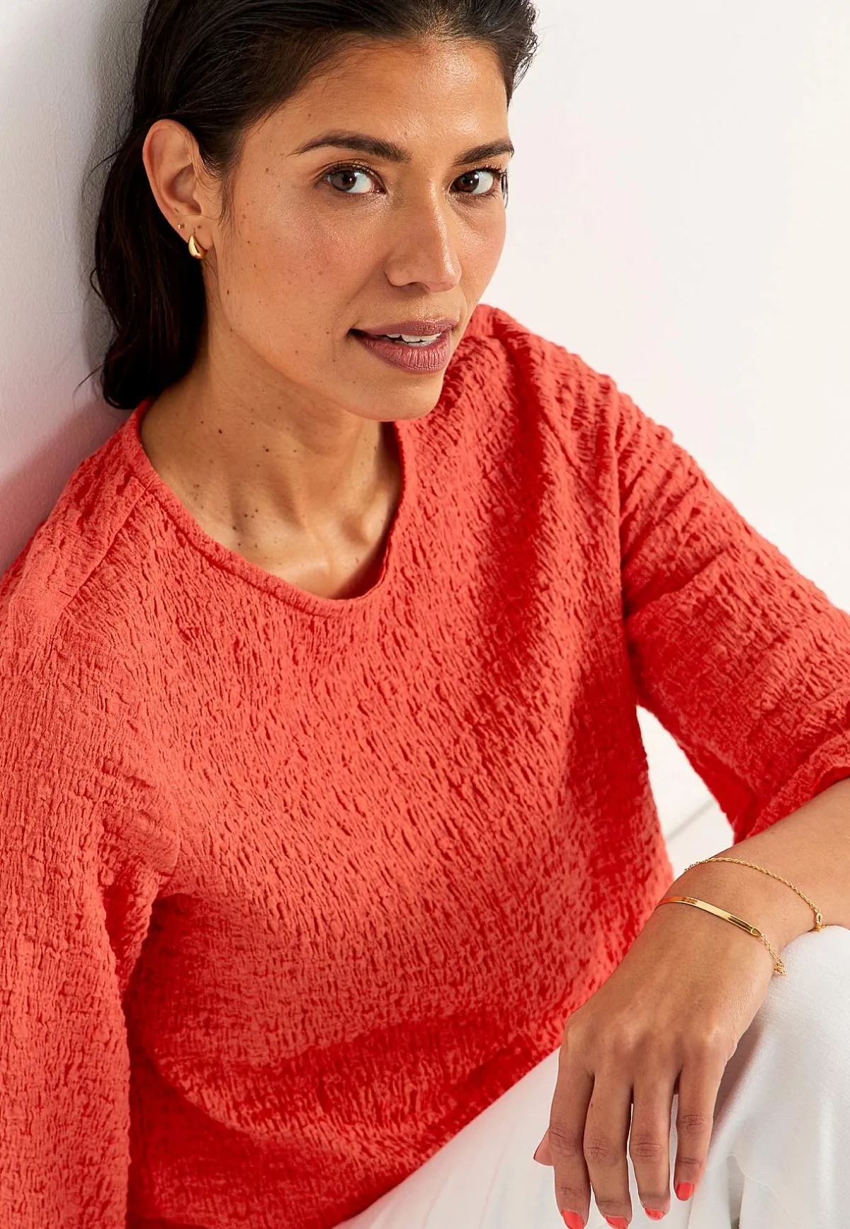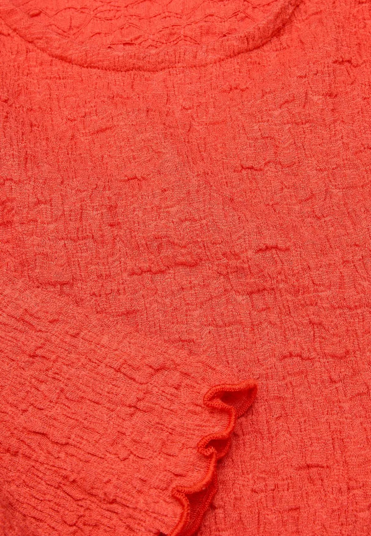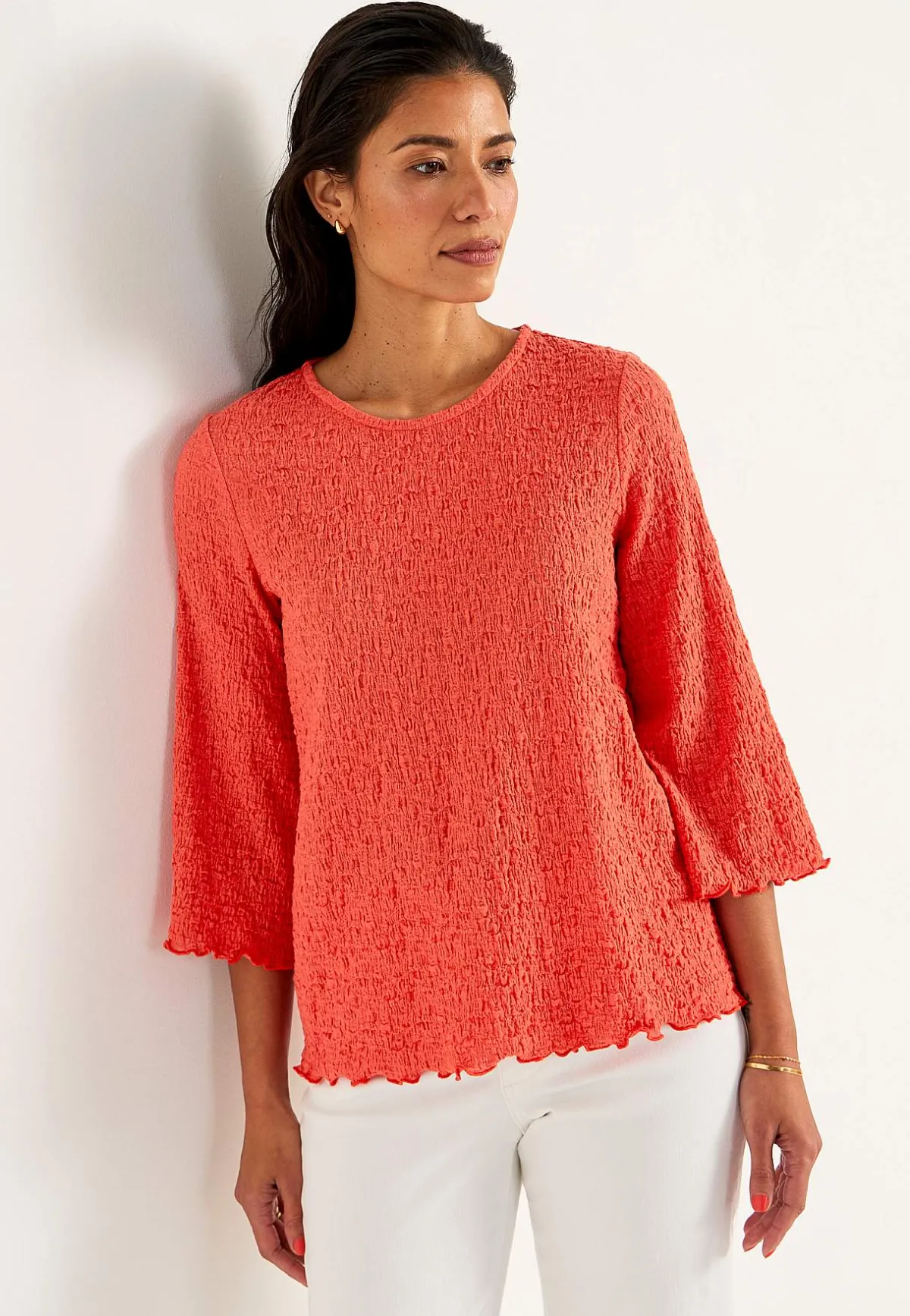 • 3/4-långa ärmar med vidd och overlockad, vågig kant.