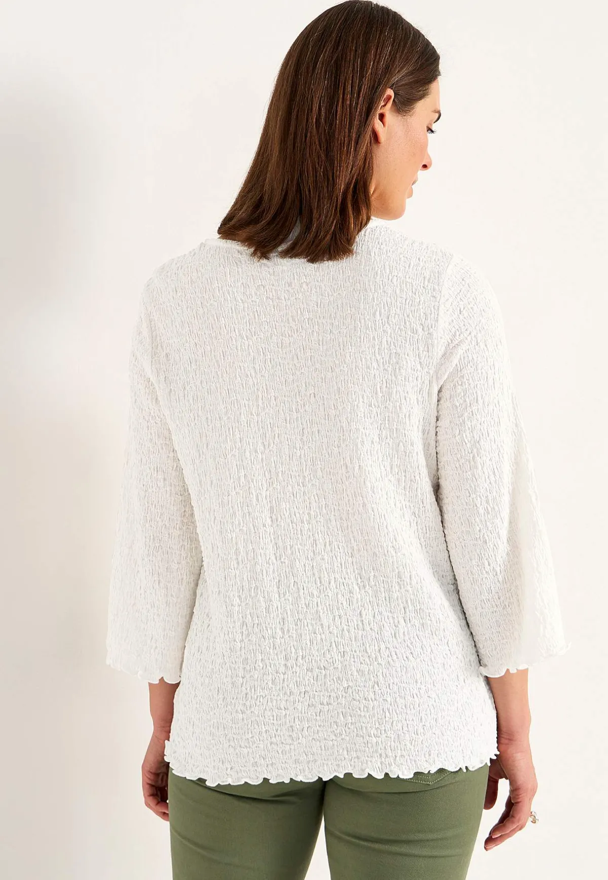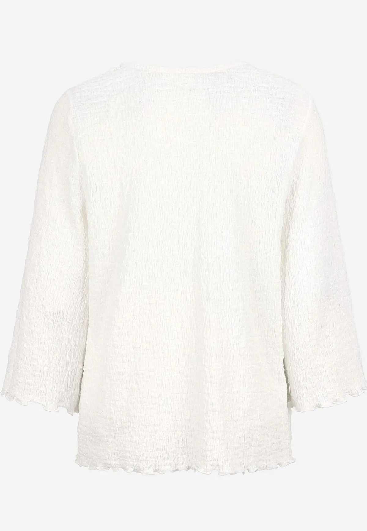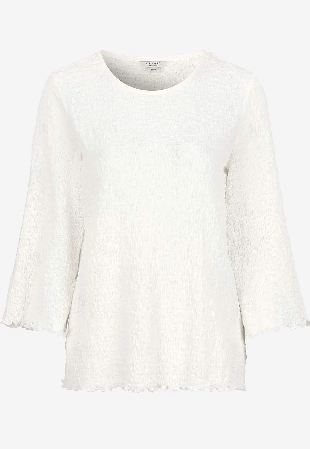 • 3/4-långa ärmar med vidd och overlockad, vågig kant.