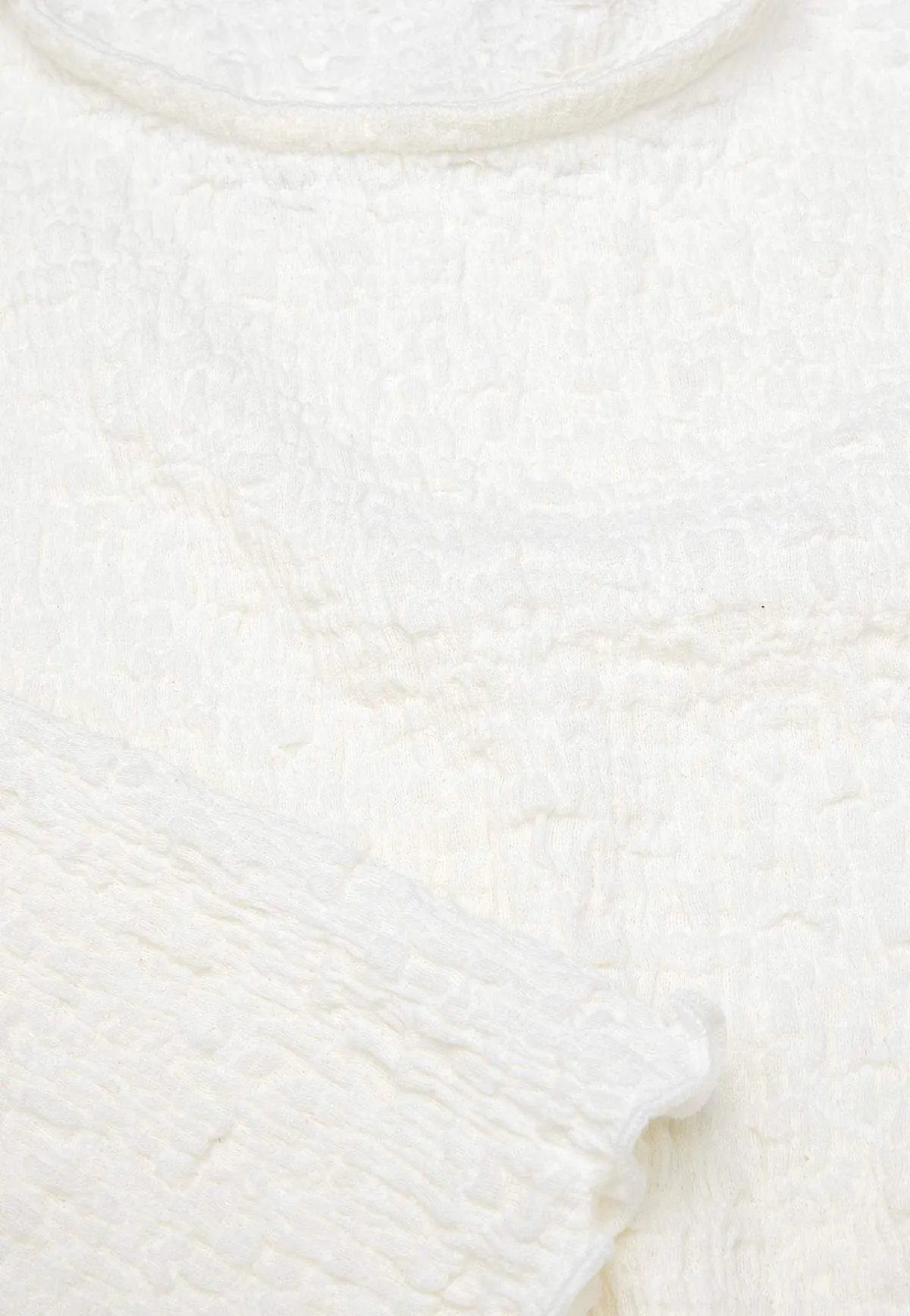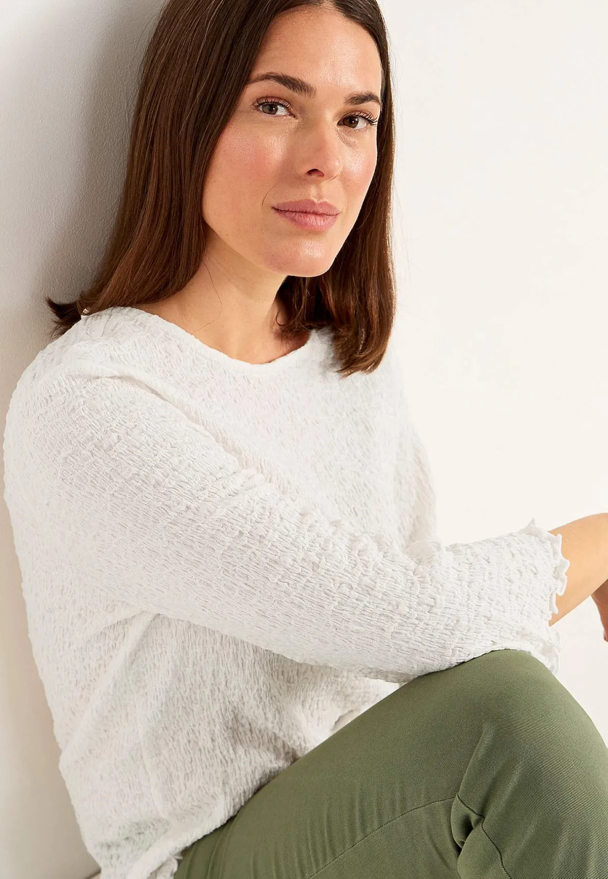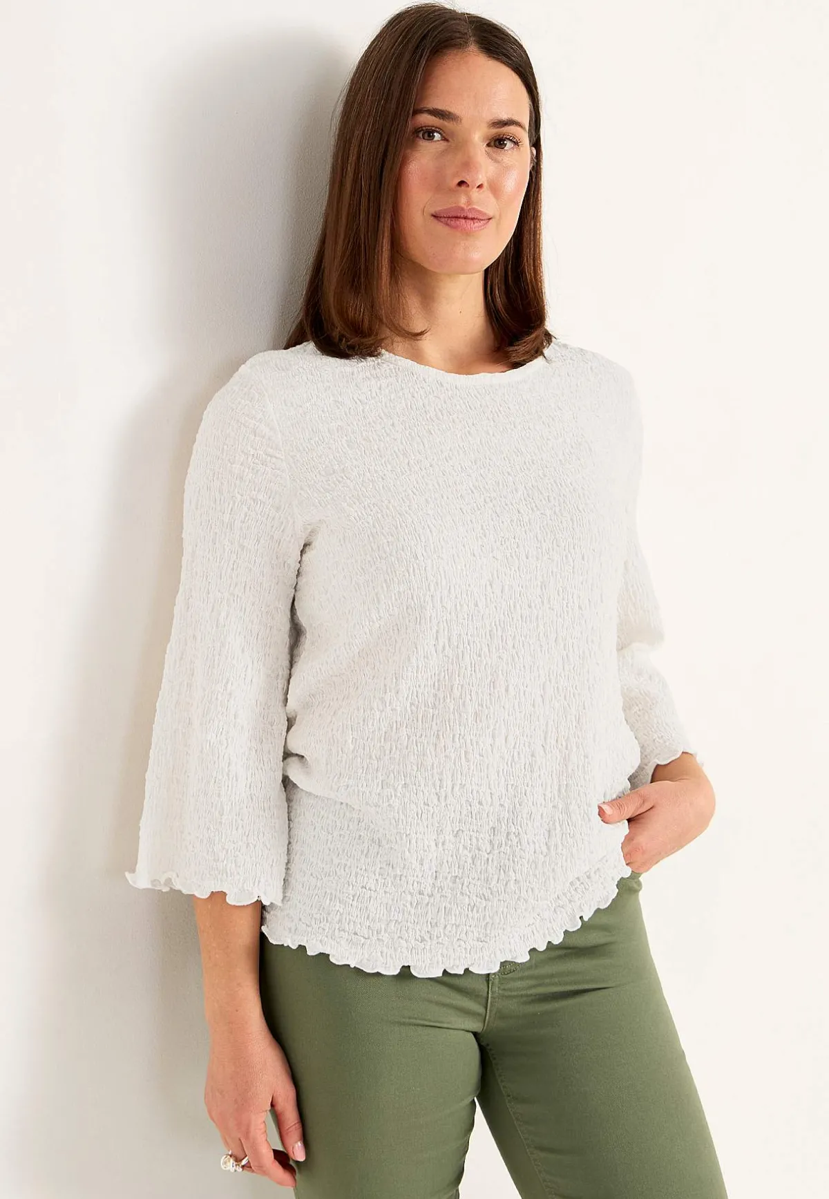 • 3/4-långa ärmar med vidd och overlockad, vågig kant.