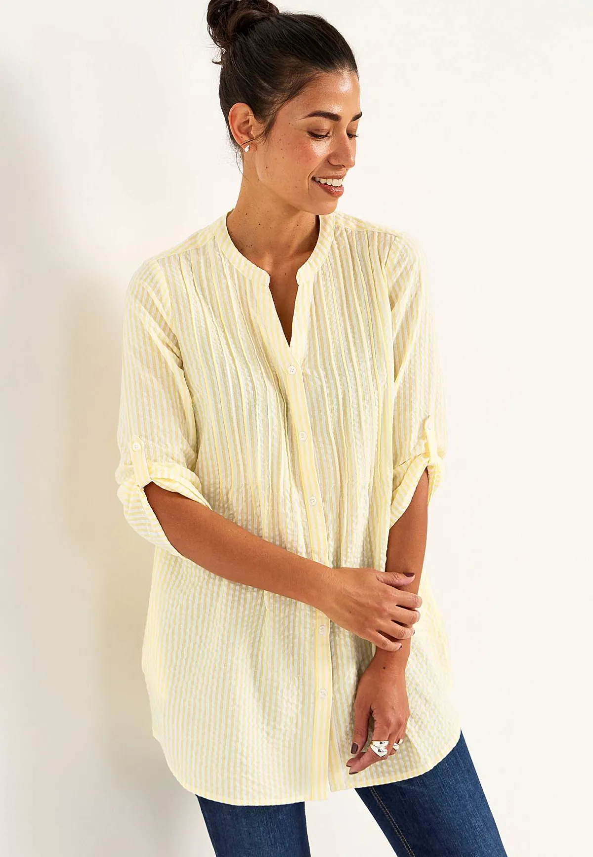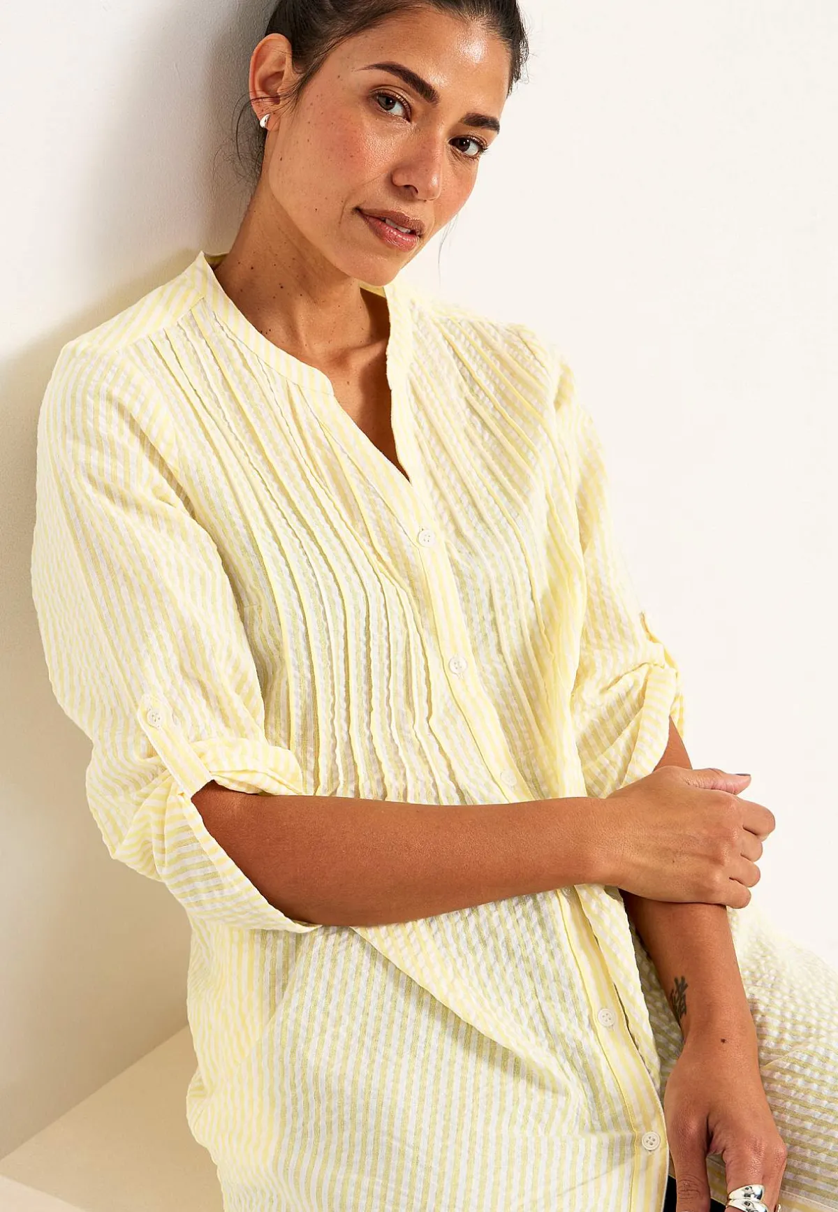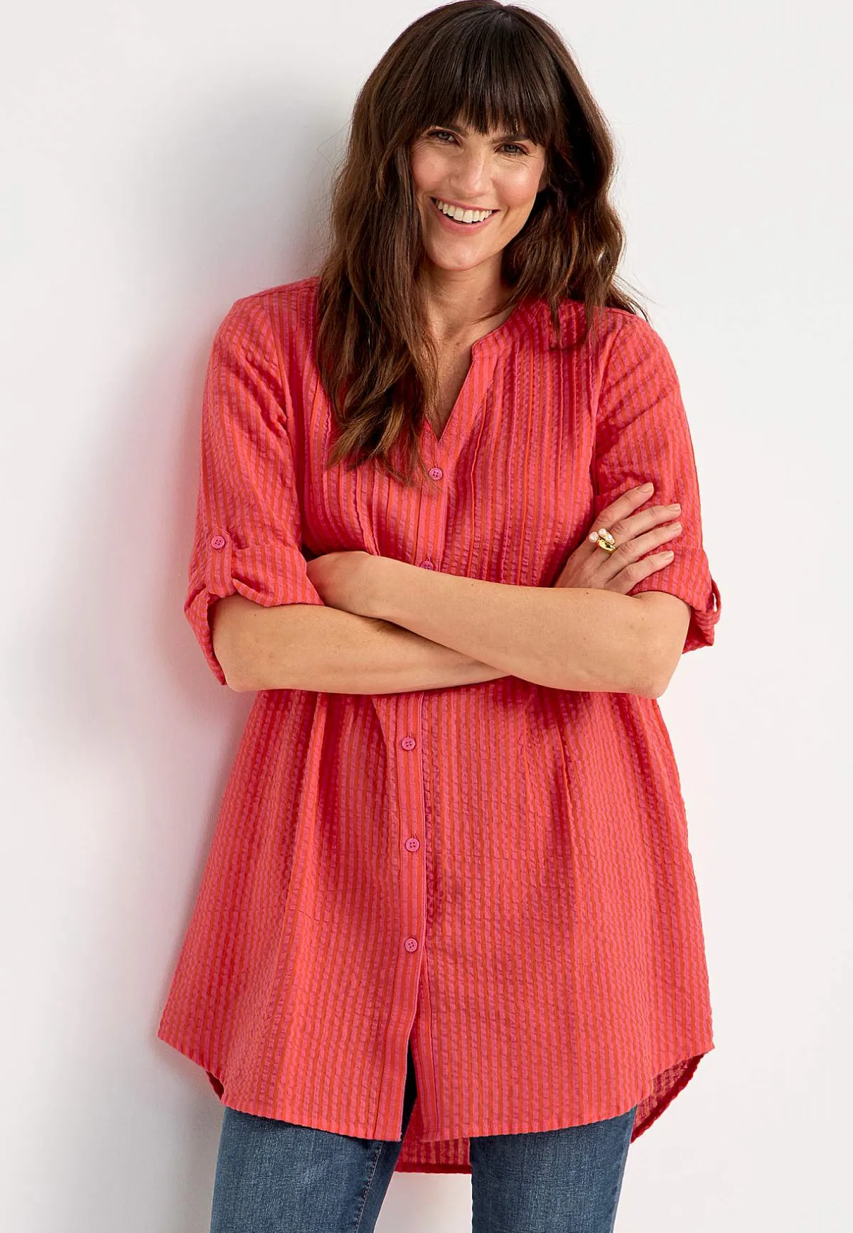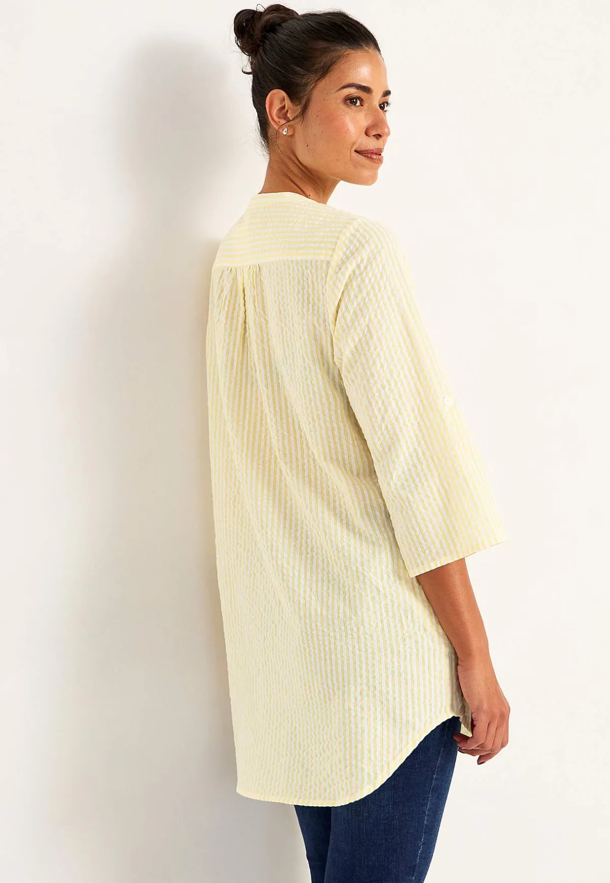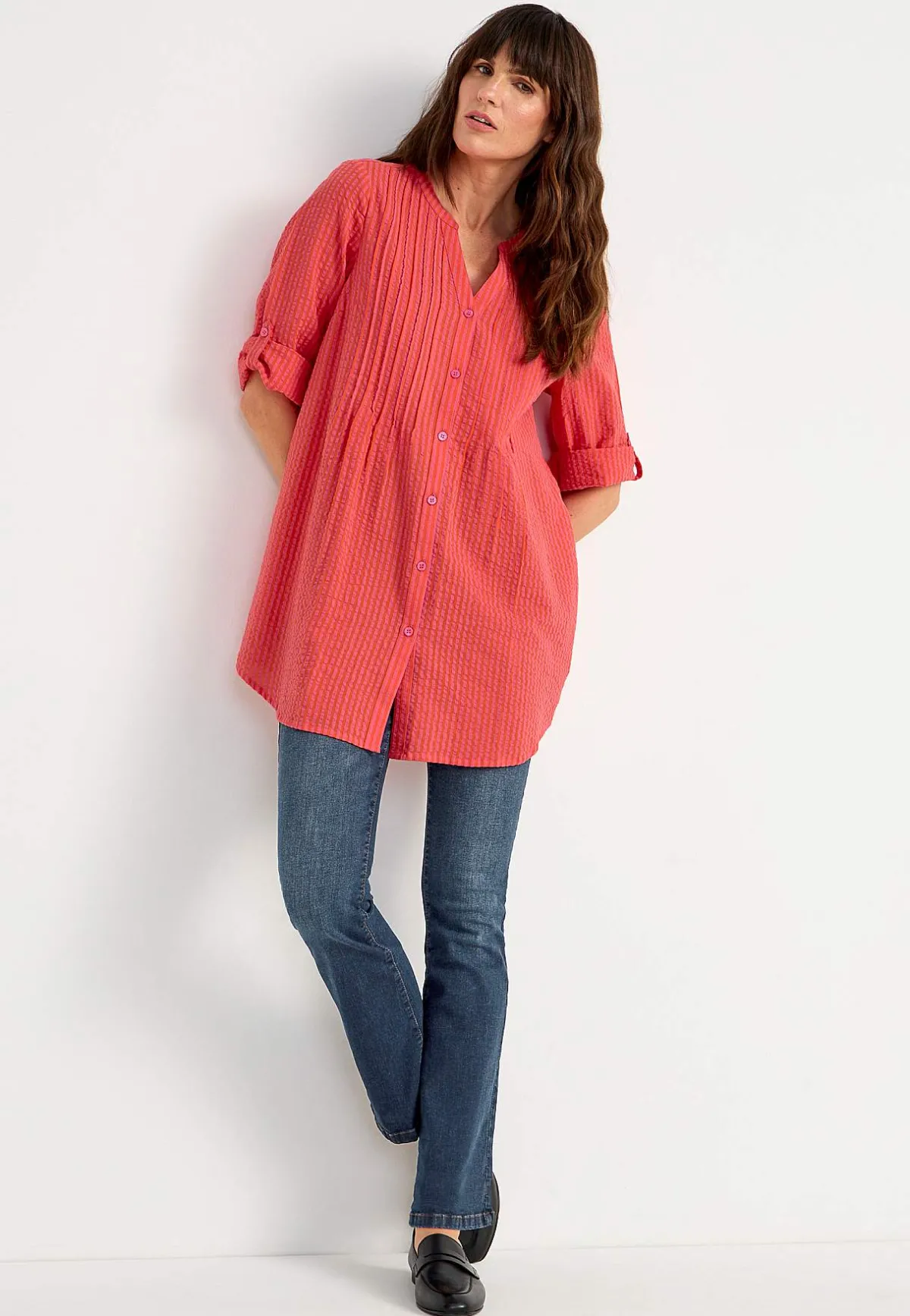 • 3/4-lång, vid uppvikningsbar ärm med knapp.