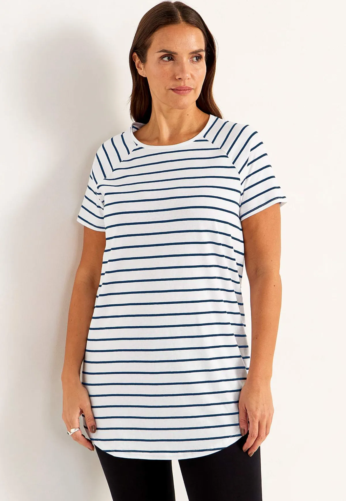 Rymlig passform med rundad nederkant och korta ärmar.