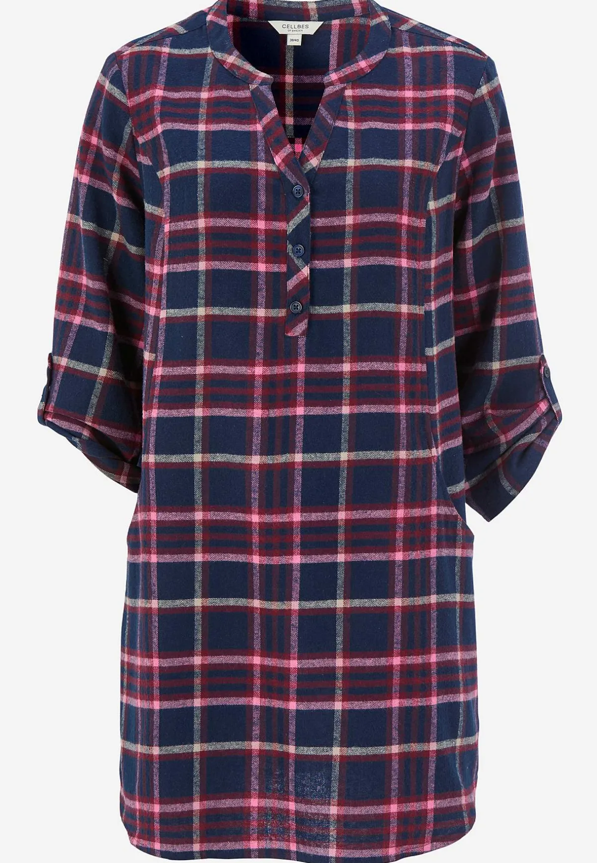 • 3/4-långa, uppvikbara ärmar med slejf och knapp.