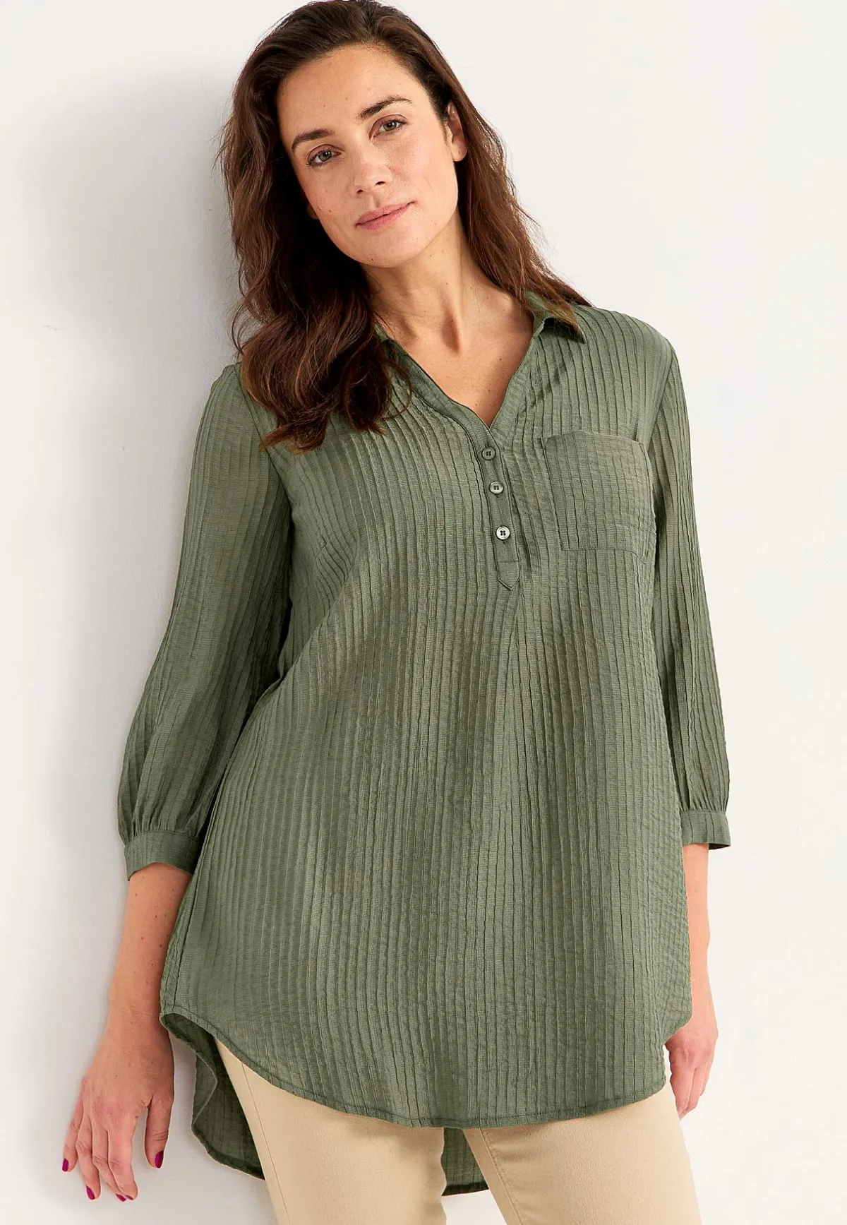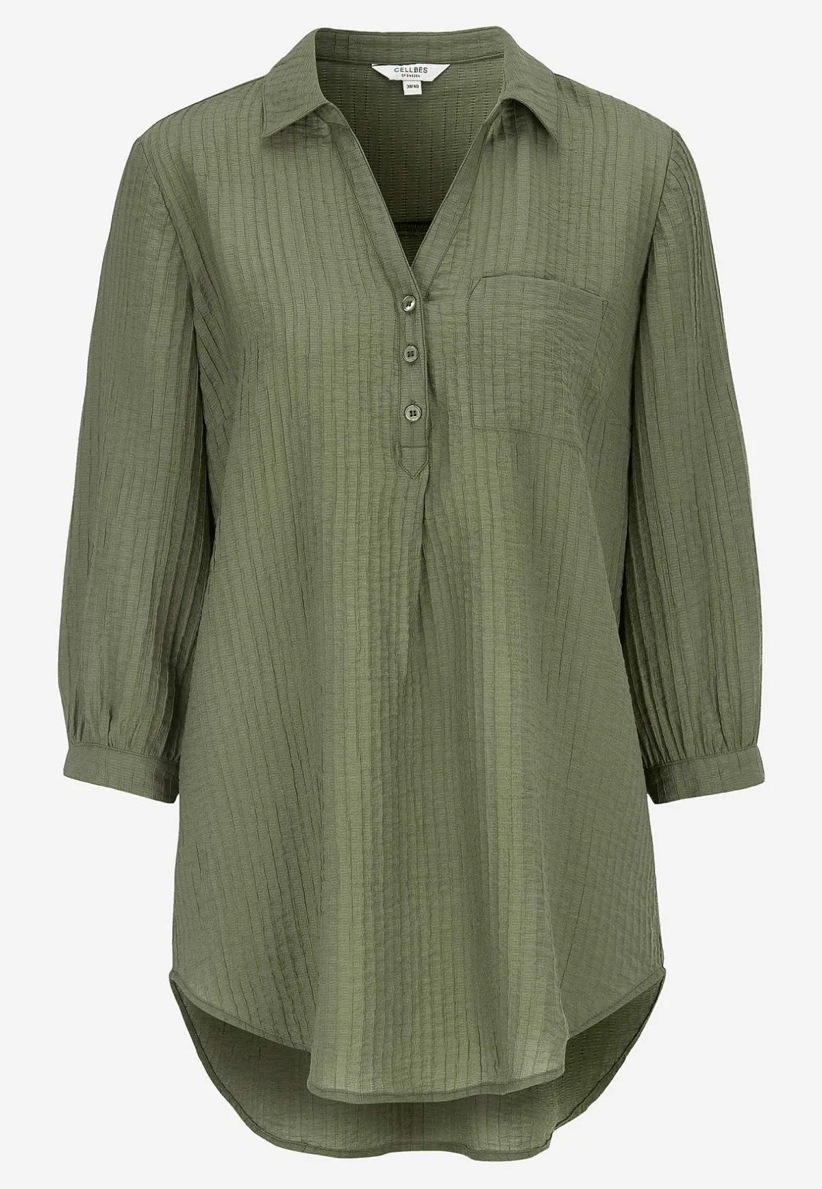 • 3/4-långa ärmar med knapp i ärmsluten.