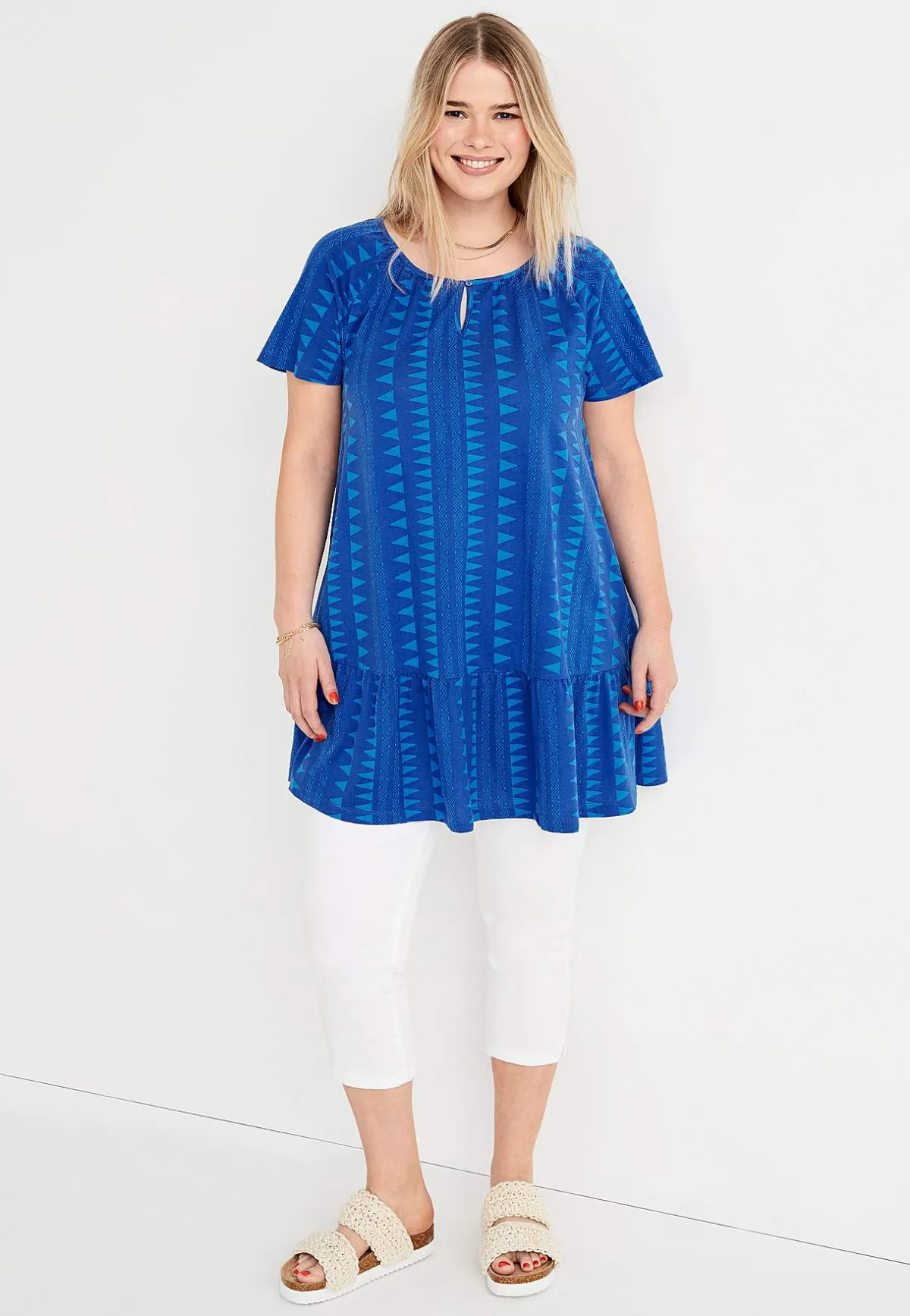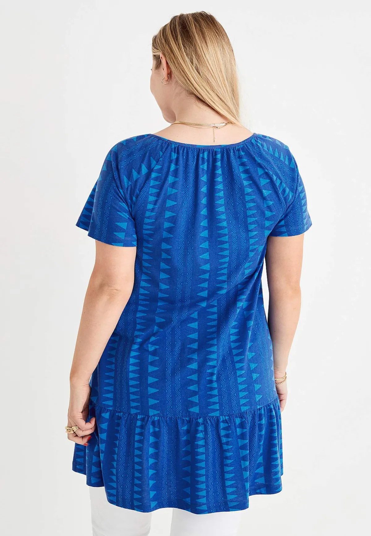 • Rund halsringning med knapp framtill.