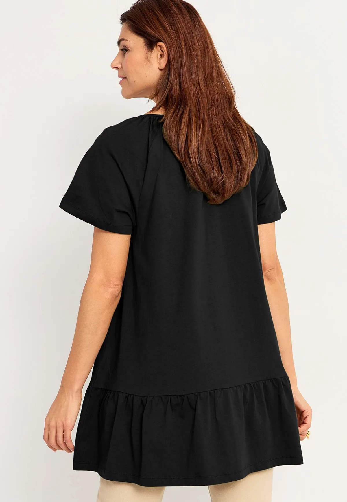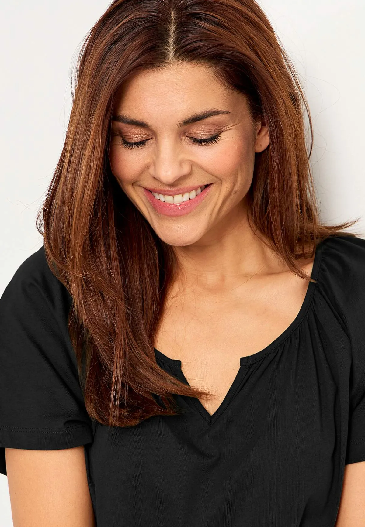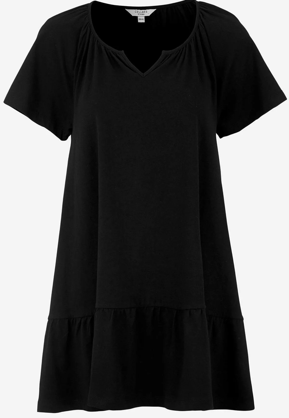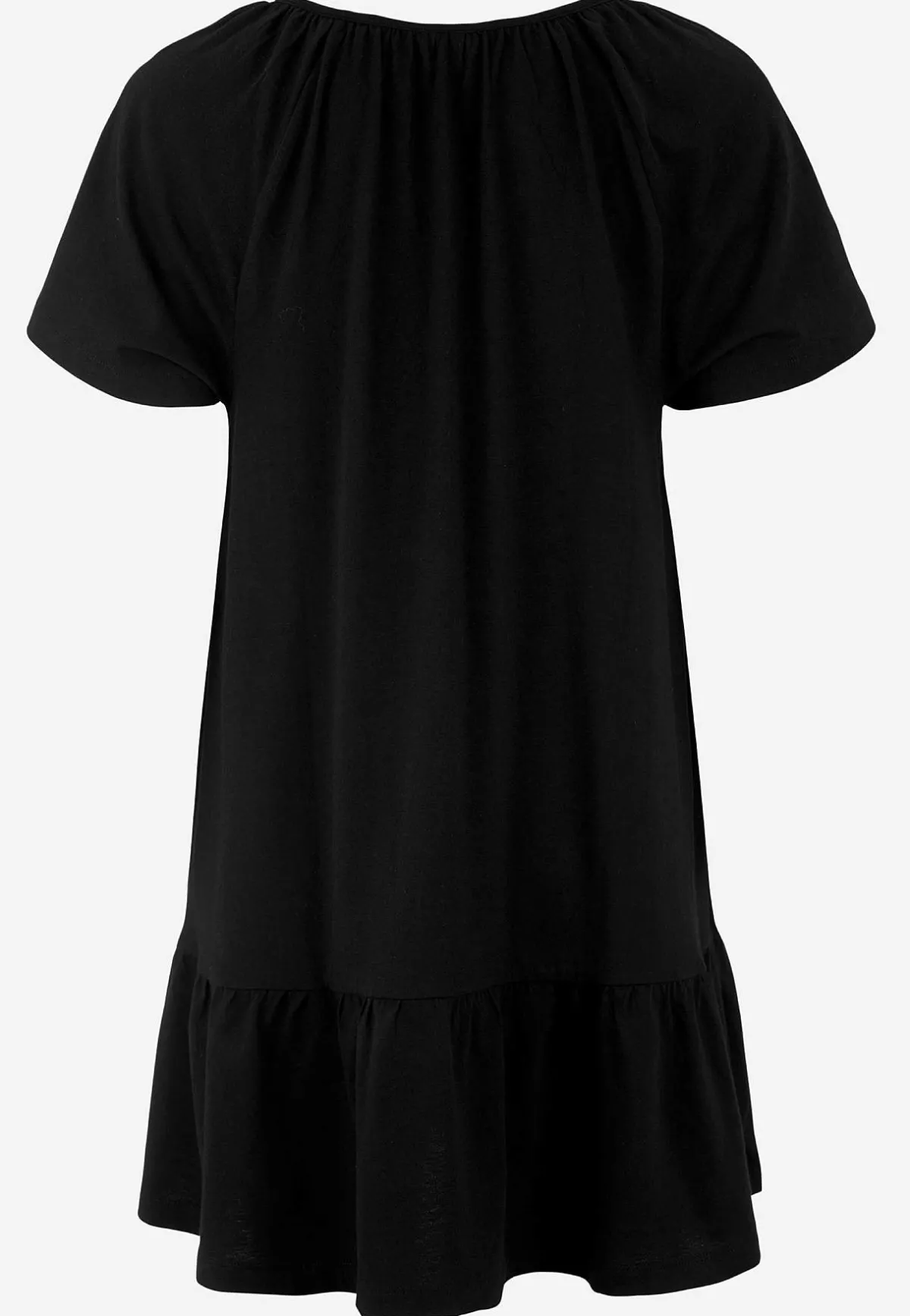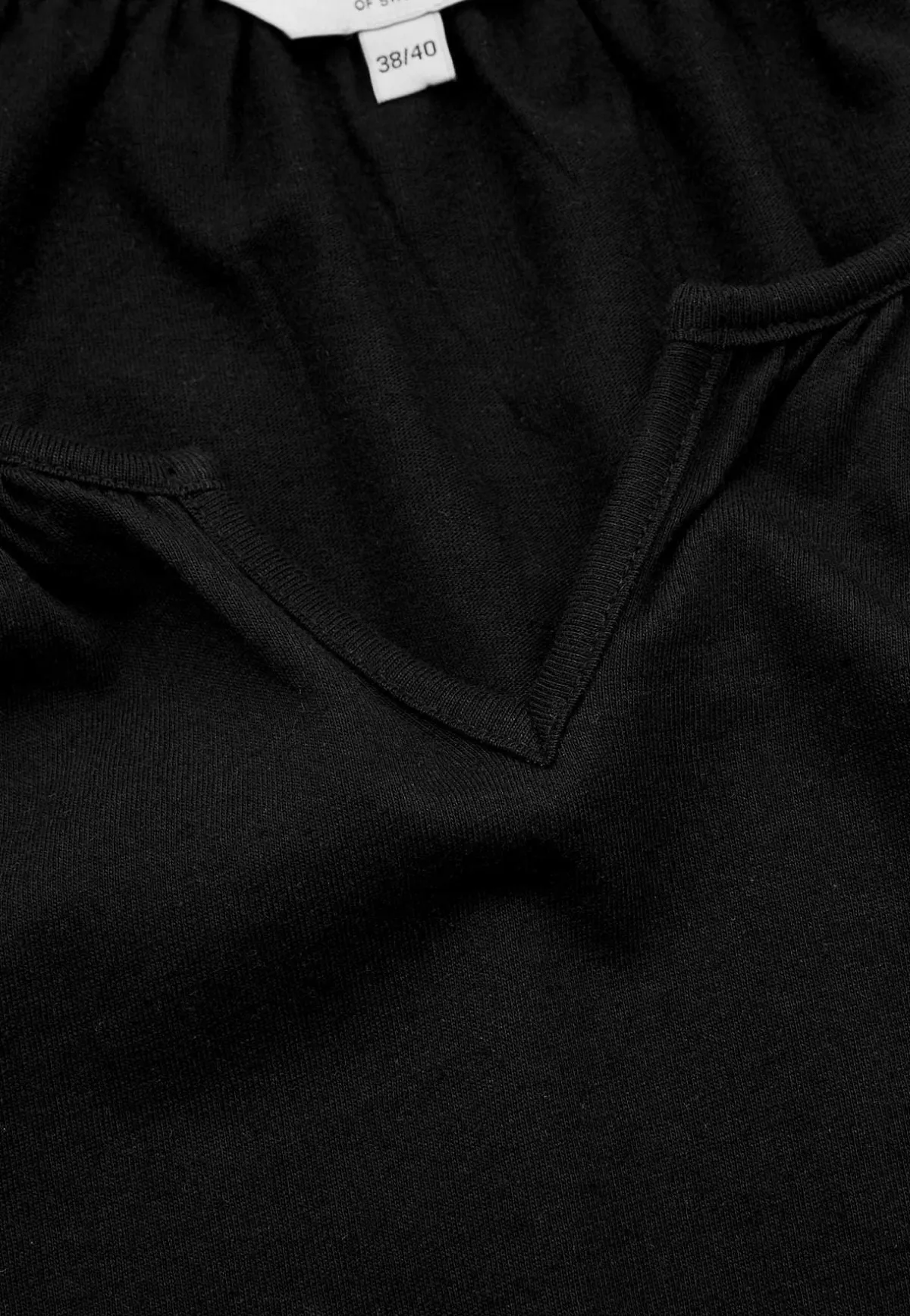 • Rund halsringning med liten v-ringning fram.