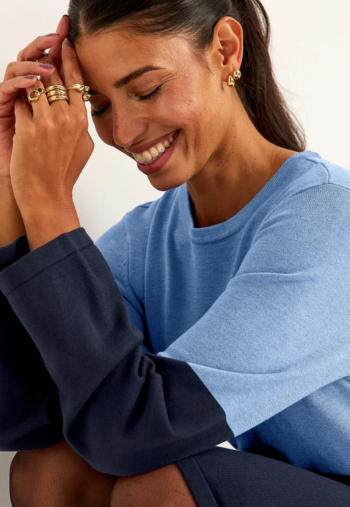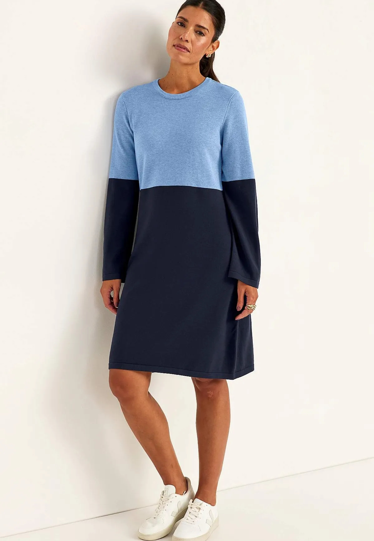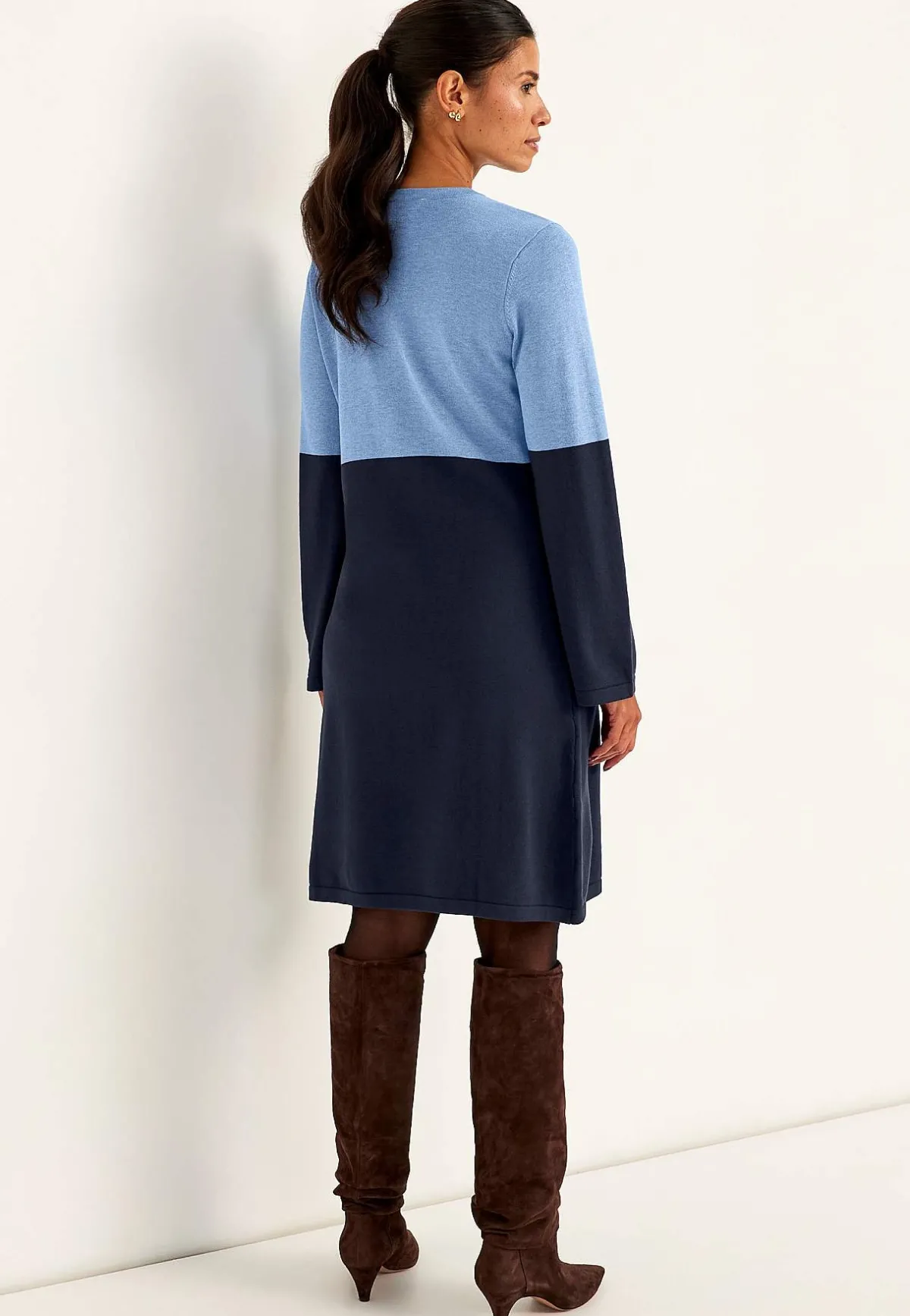 • Långa, vida ärmar med smal ribbmudd. Fully fashioned-stickade ärmhål.