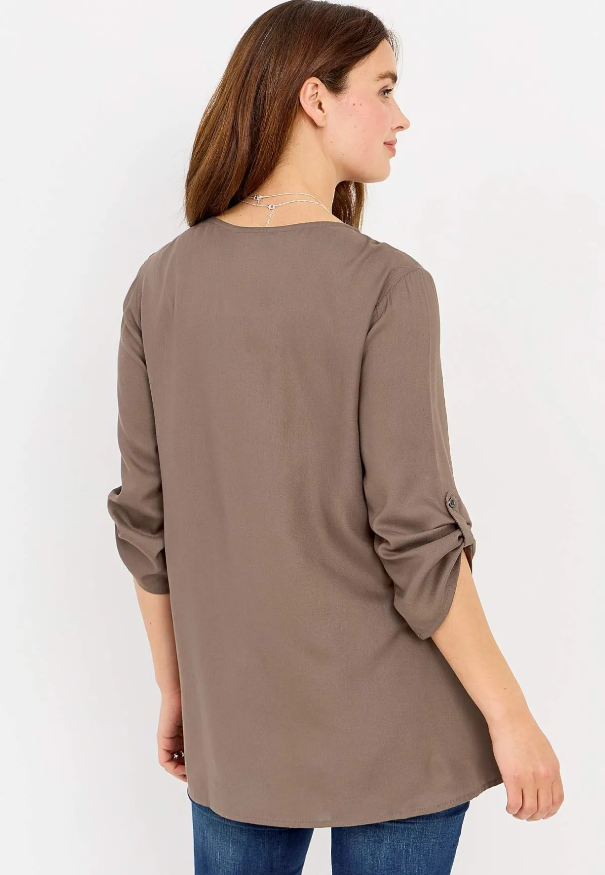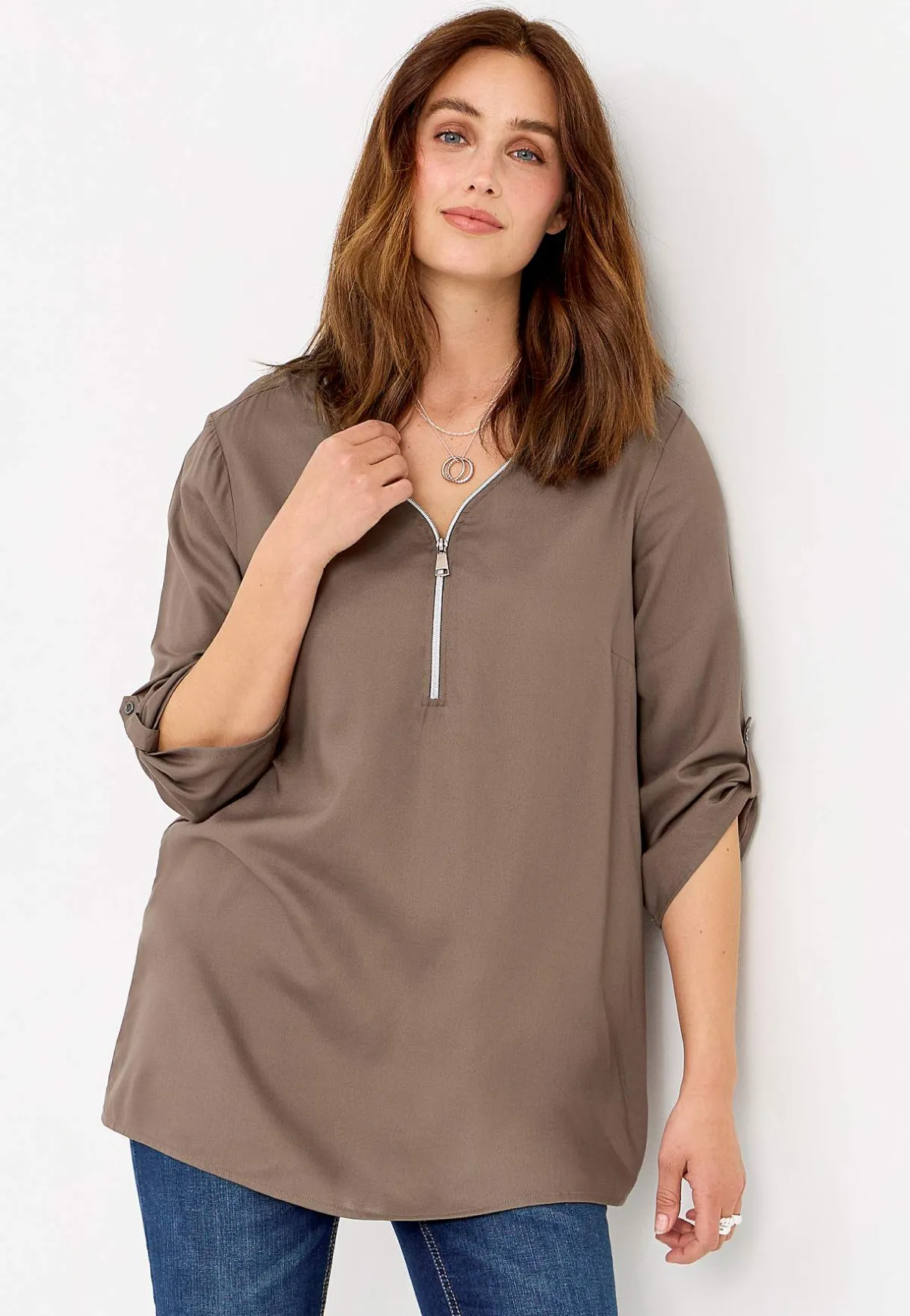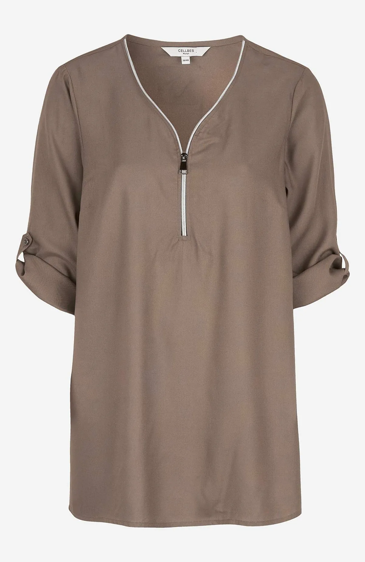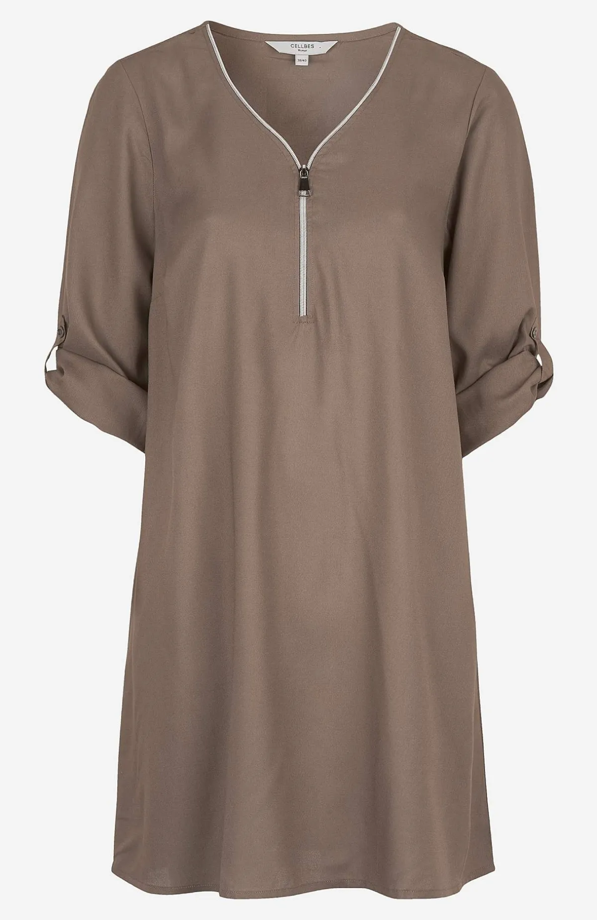 • V-ringad tunika med dragkedja.