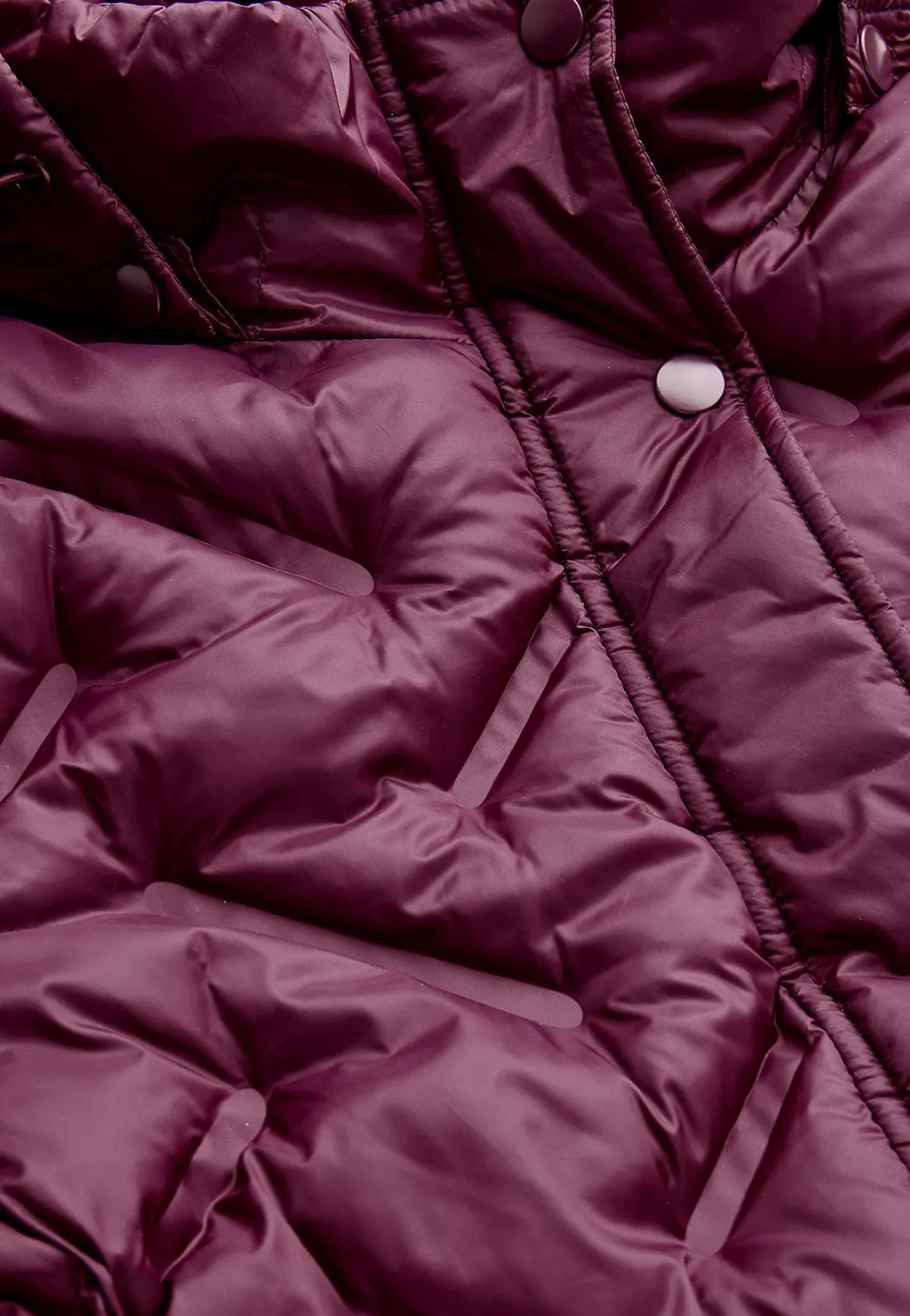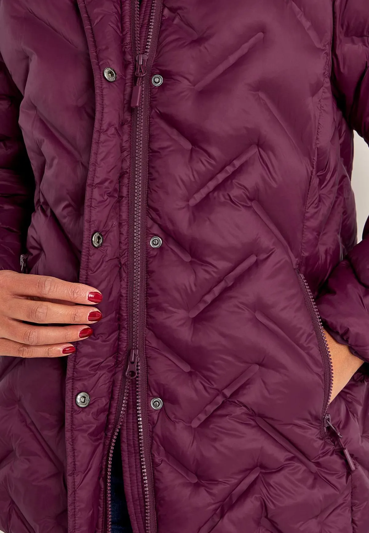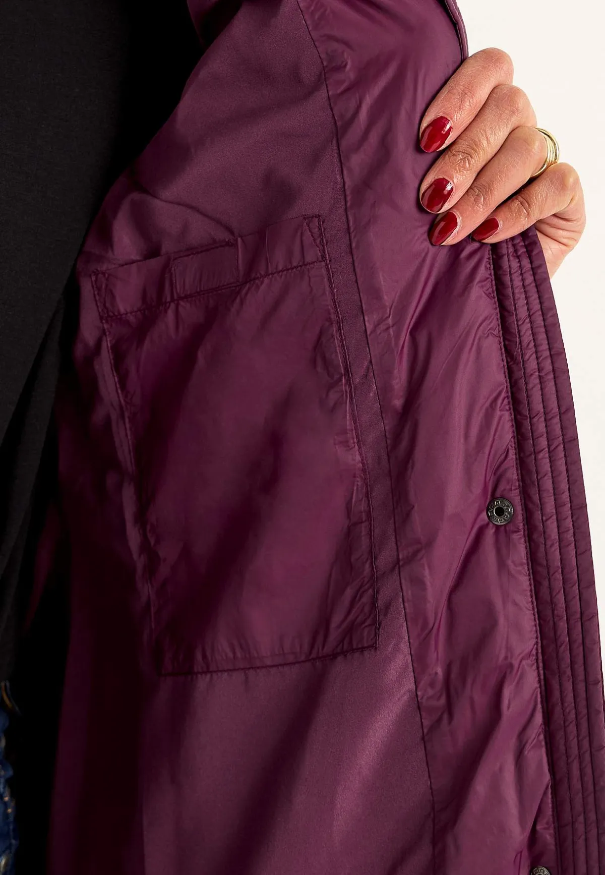 • Praktisk tvåvägsdragkedja och vindslå med dold tryckknapps-stängning.