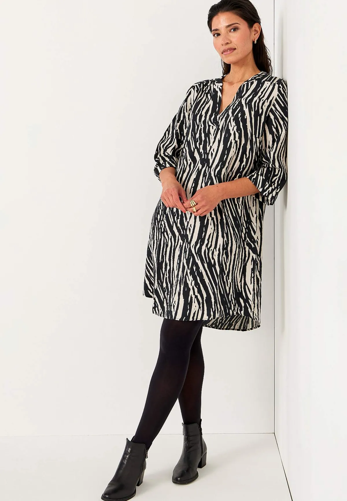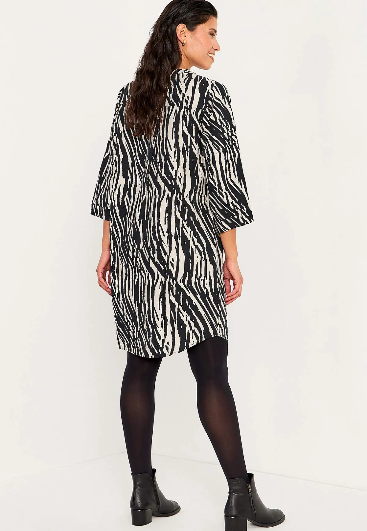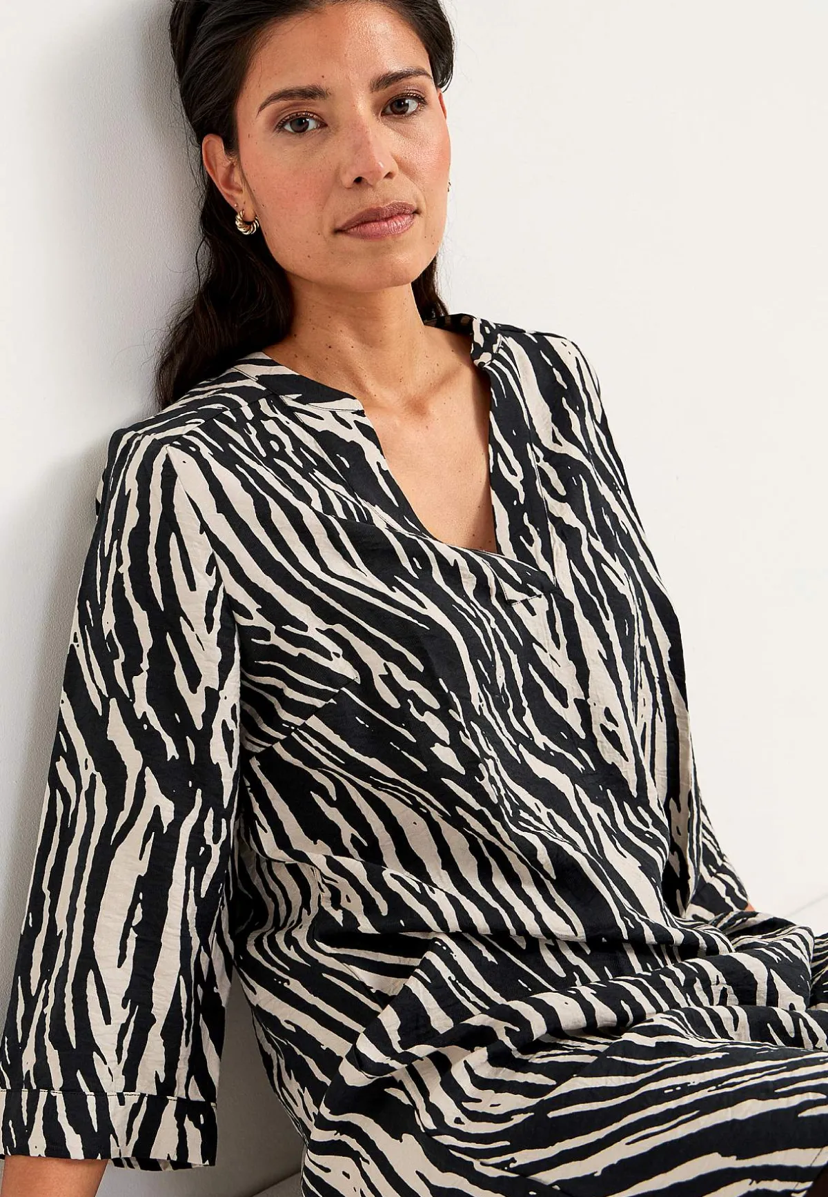 • 3/4-långa, vida ärmar med smal manschett i ärmsluten.