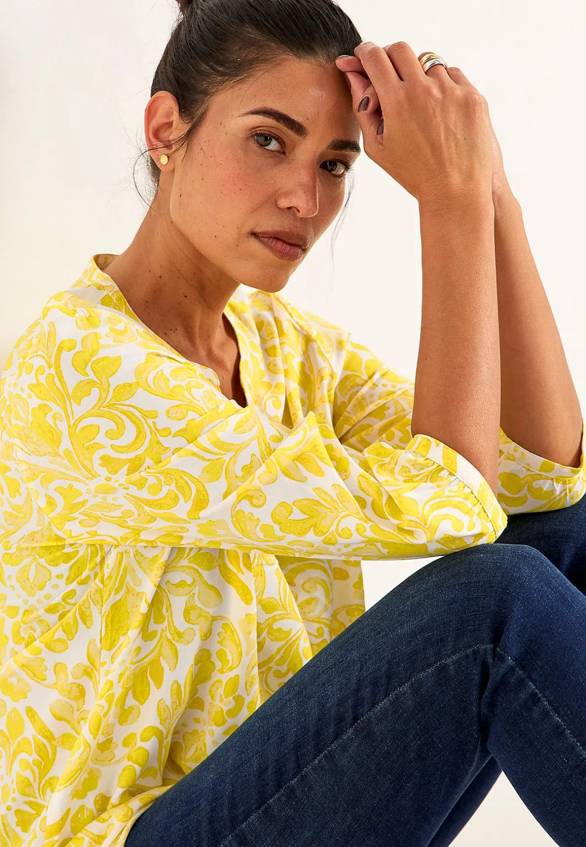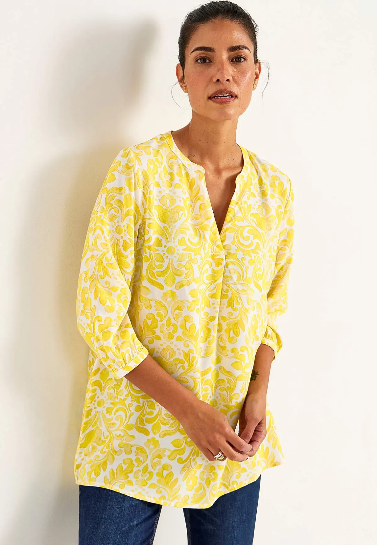 • 3/4-långa ärmar med smal manschett i ärmsluten.