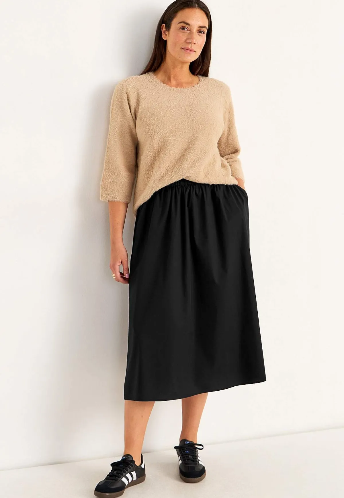 • Midja med bekväm resår och rynk runt om.