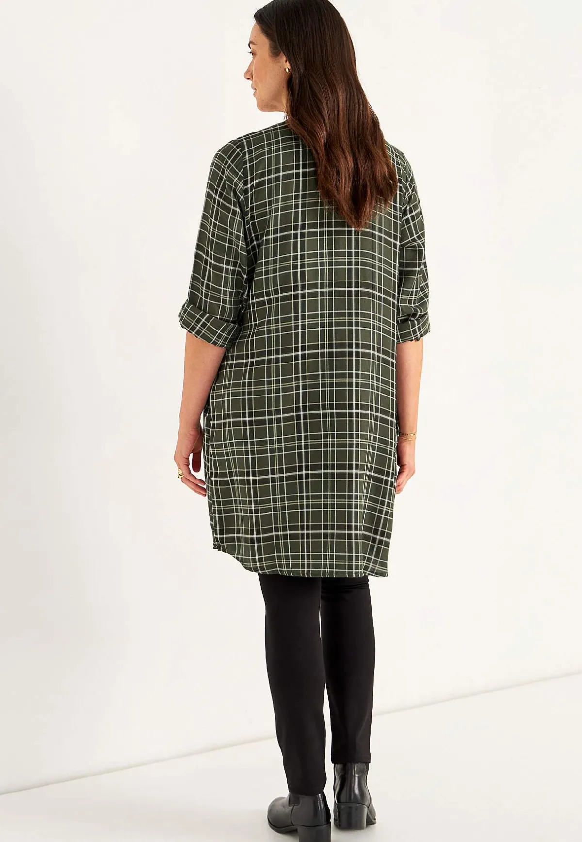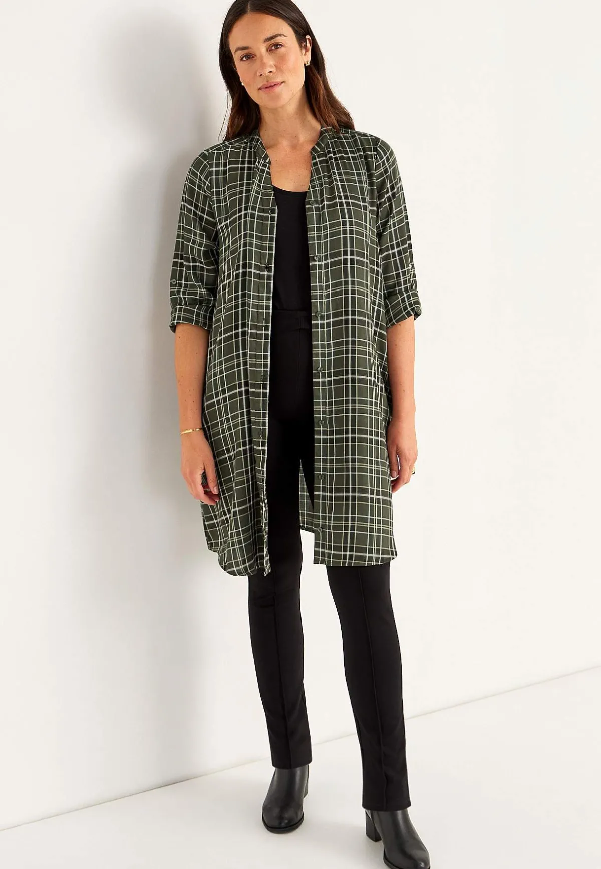 • Uppvikbara trekvartsärmar med knappdetalj.