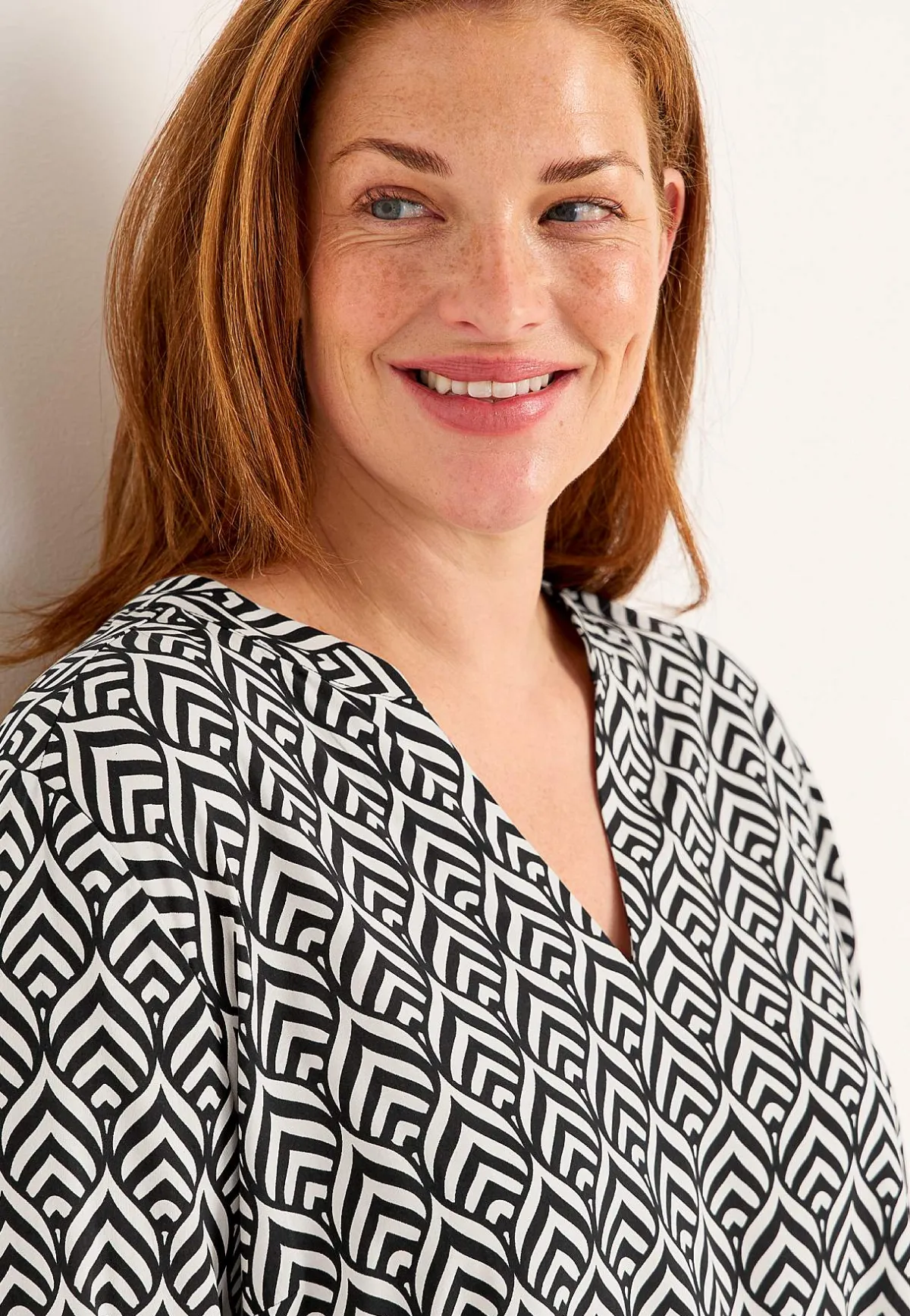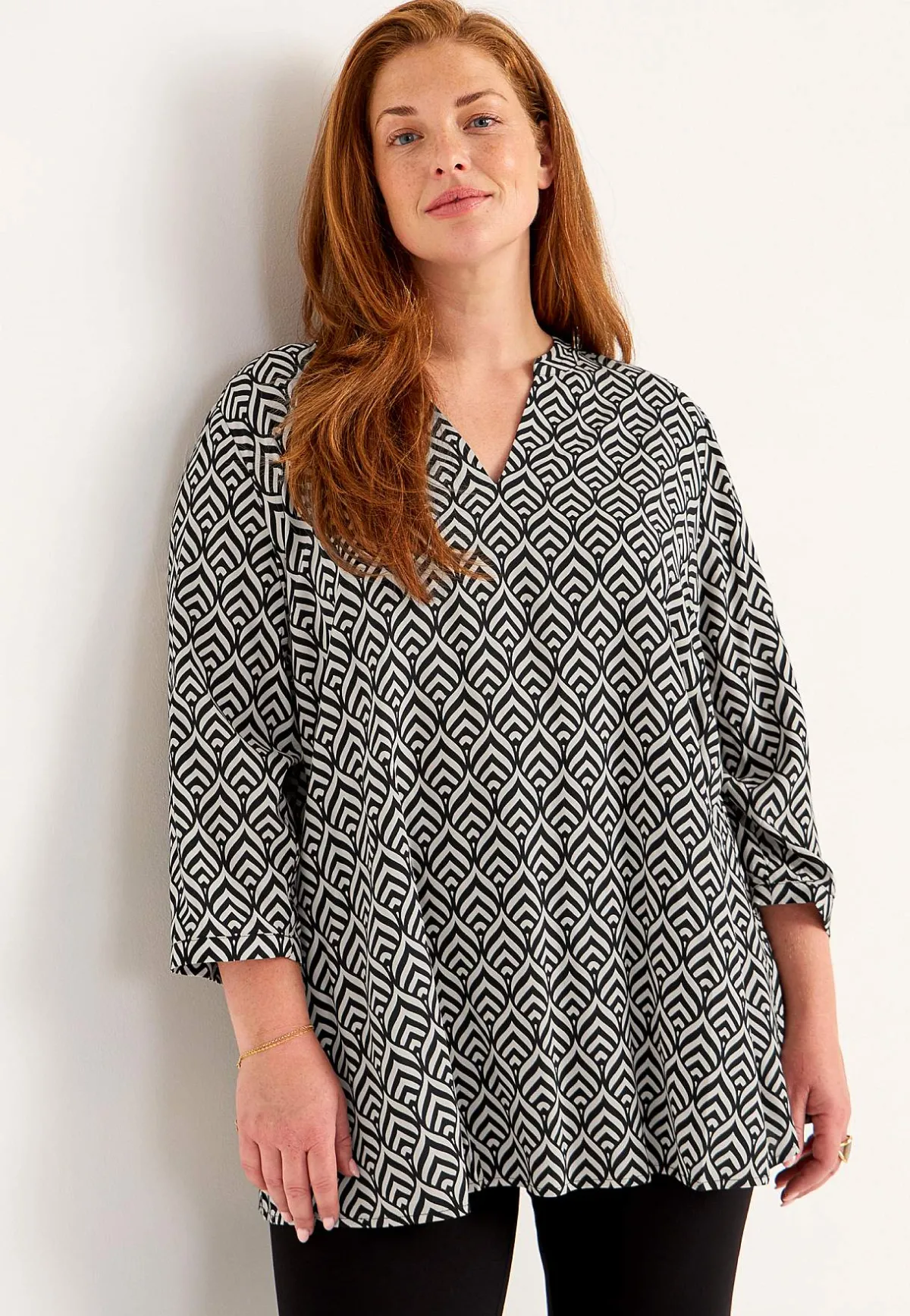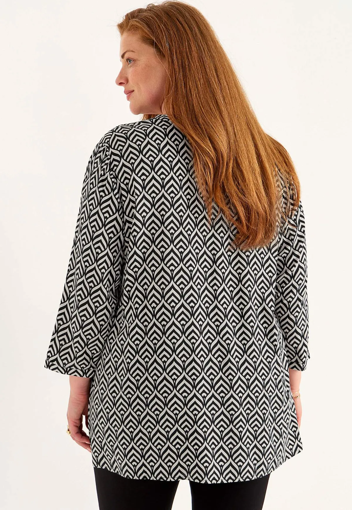 • 3/4-långa, vida ärmar med smal manschett och veck i ärmsluten.