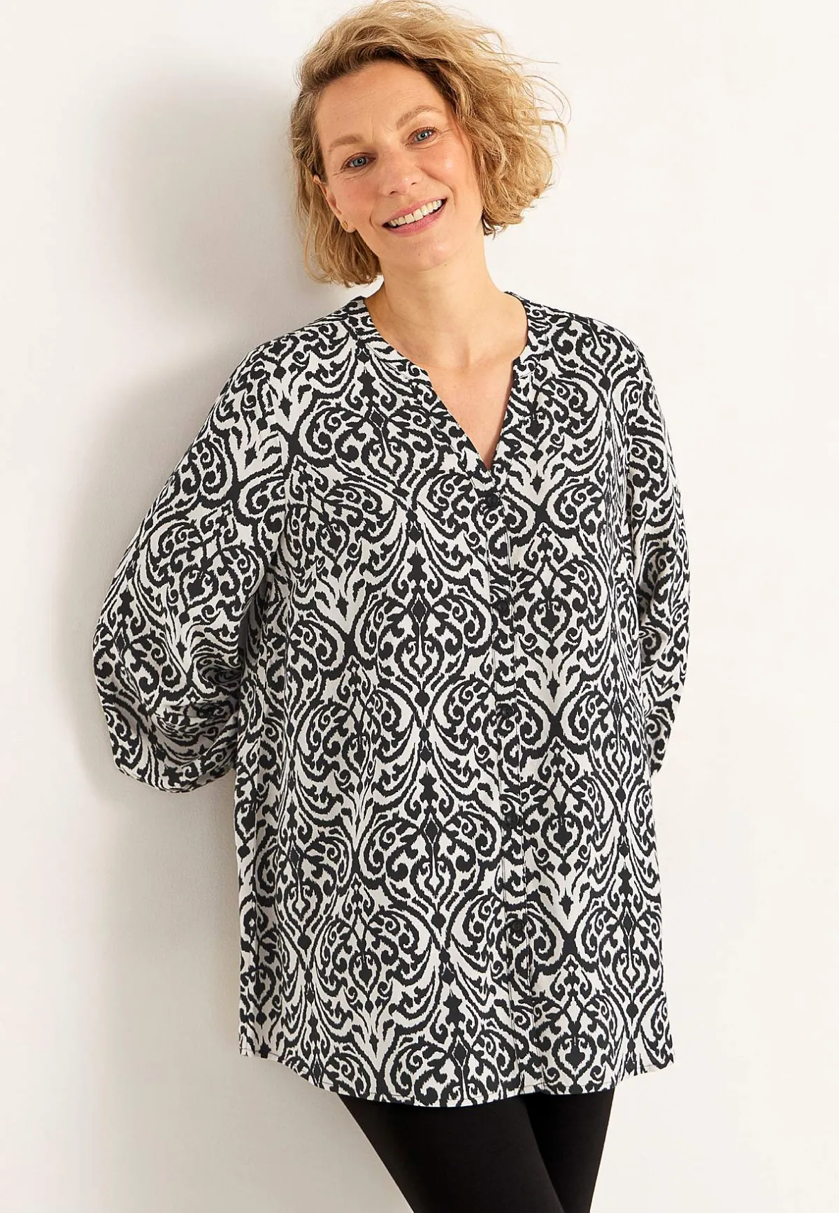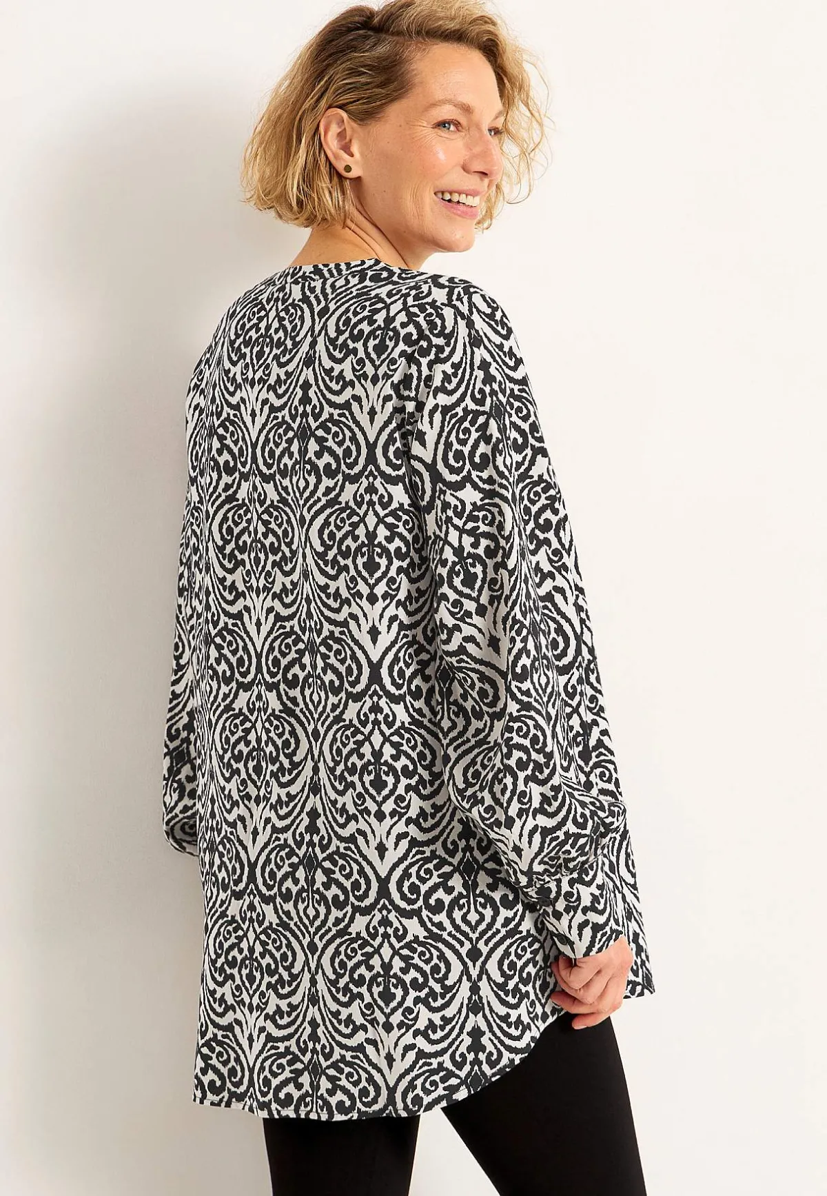 • Långa ärmar med manschett och två knappar i ärmsluten.