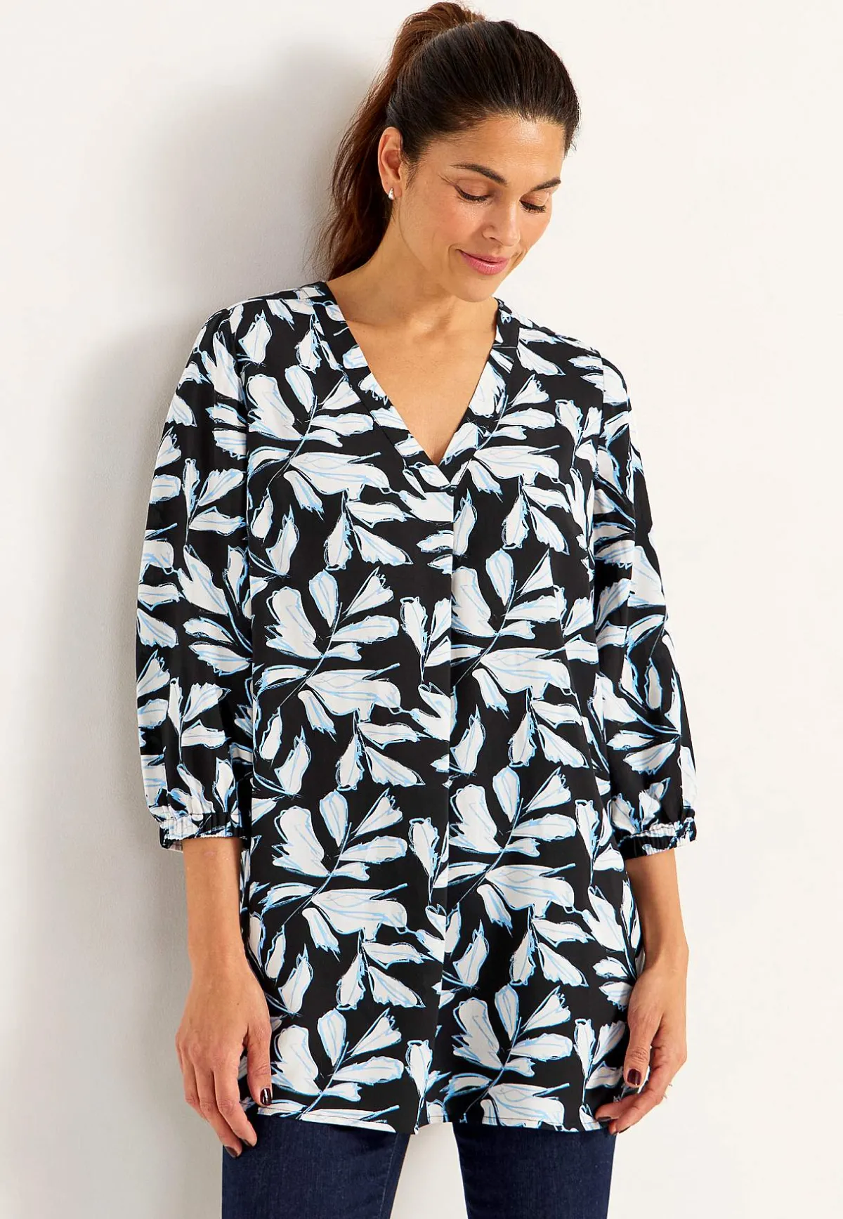 • 3/4-långa ärmar med resår i ärmsluten.