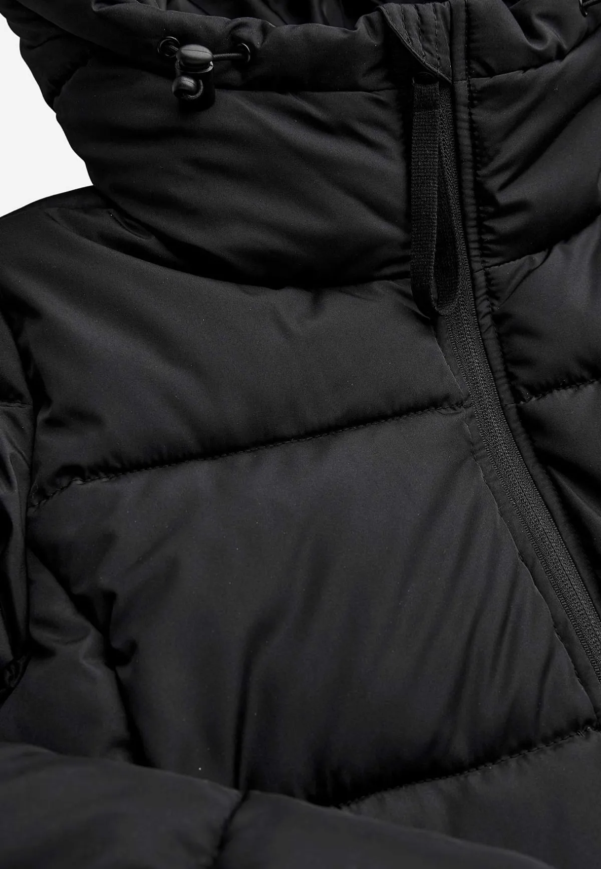 • Huva med elastisk dragsko med stopper.