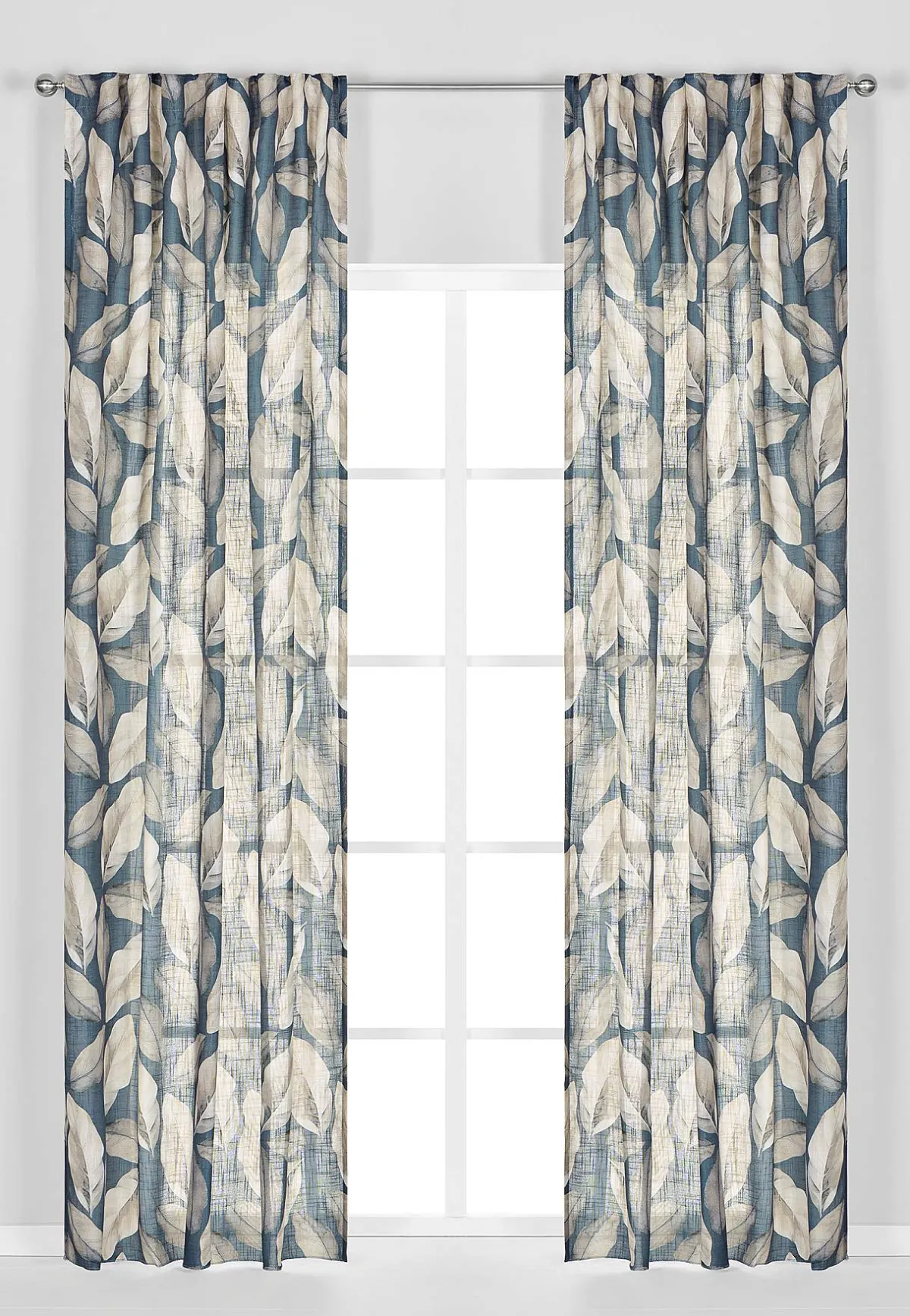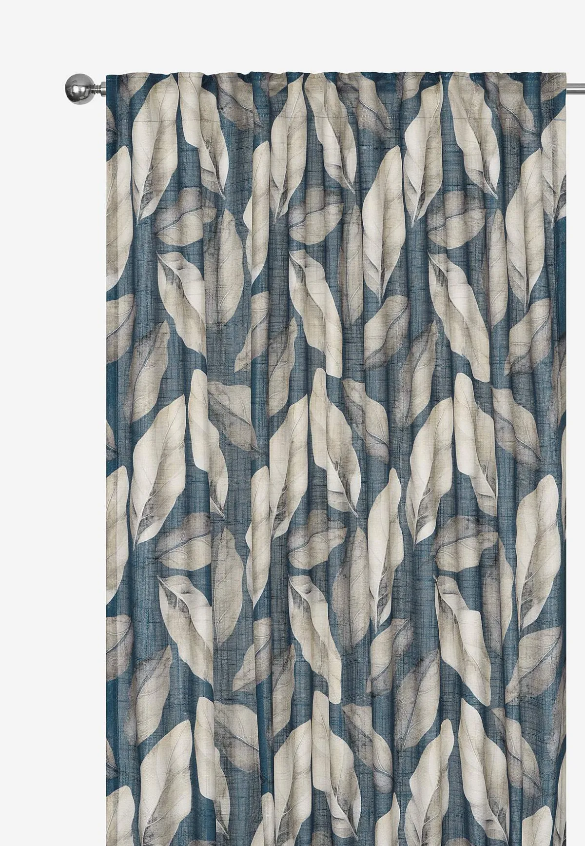 • Tryckta gardinlängder med stora blad.