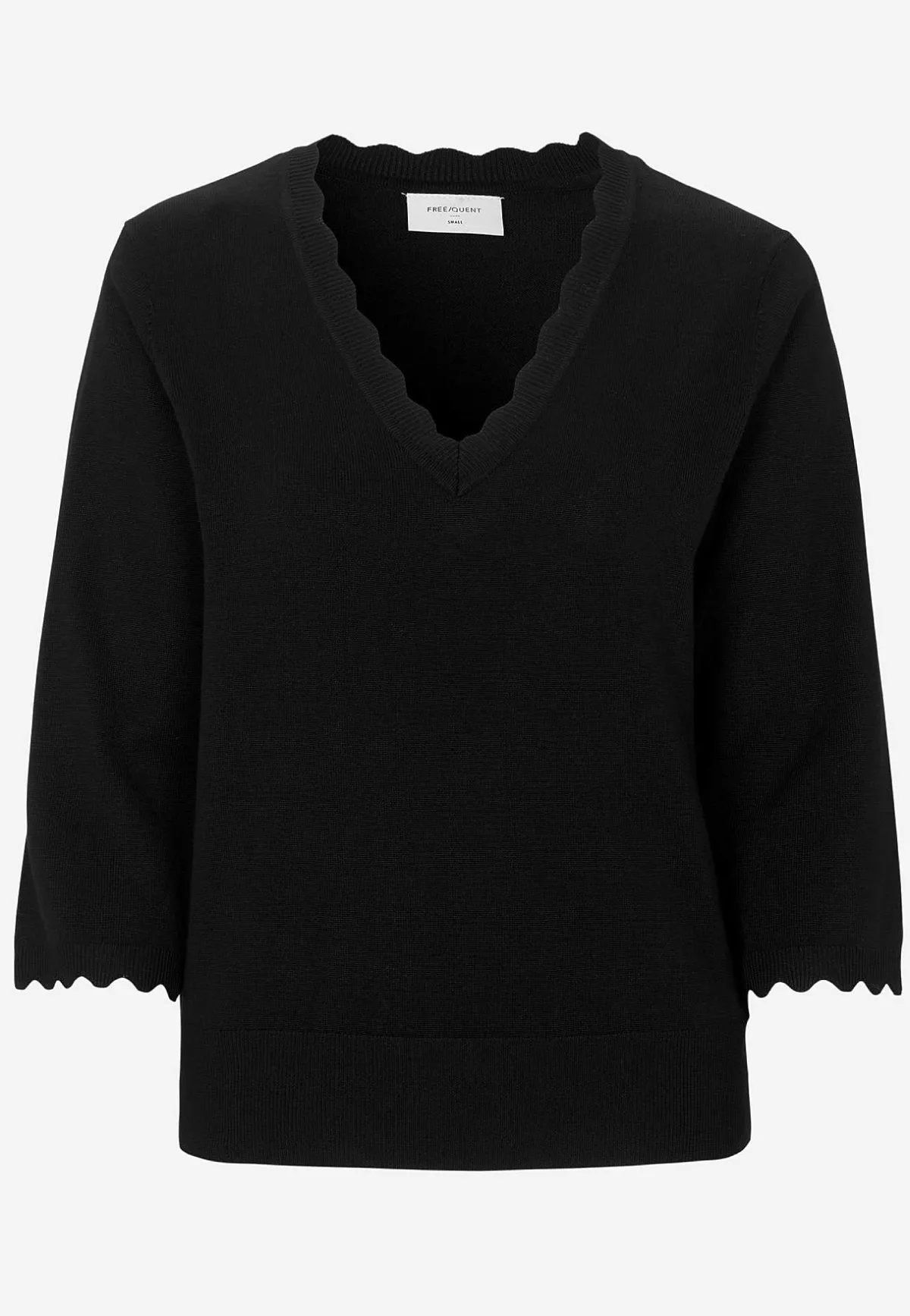 • 3/4-långa ärmar med vågig kant i ärmsluten.