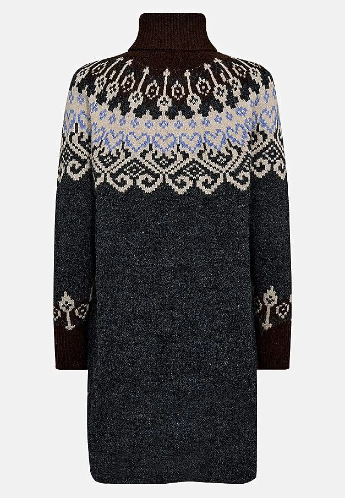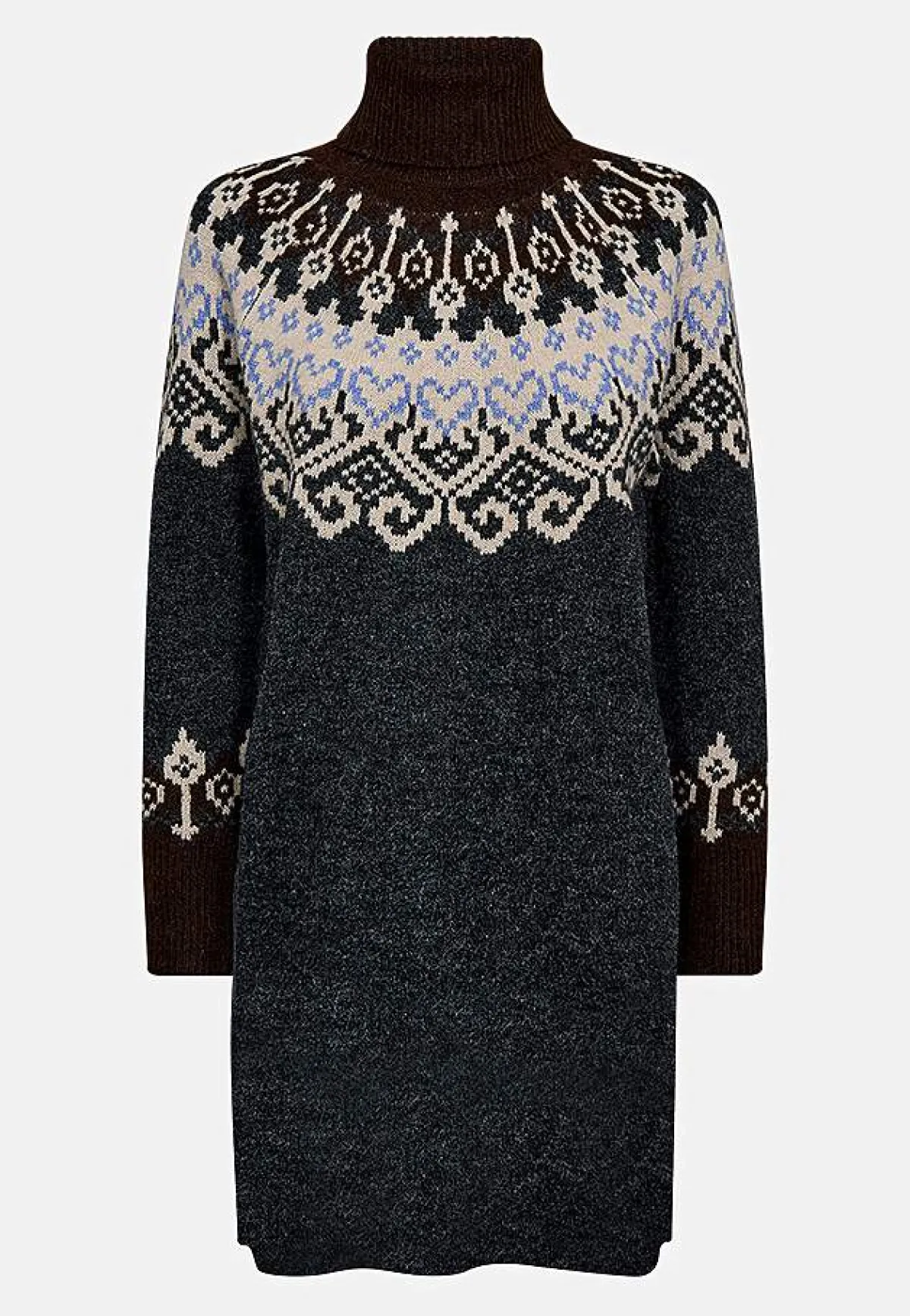 • Långa raglanärmar med mönster och bred ribbmudd i ärmsluten.
