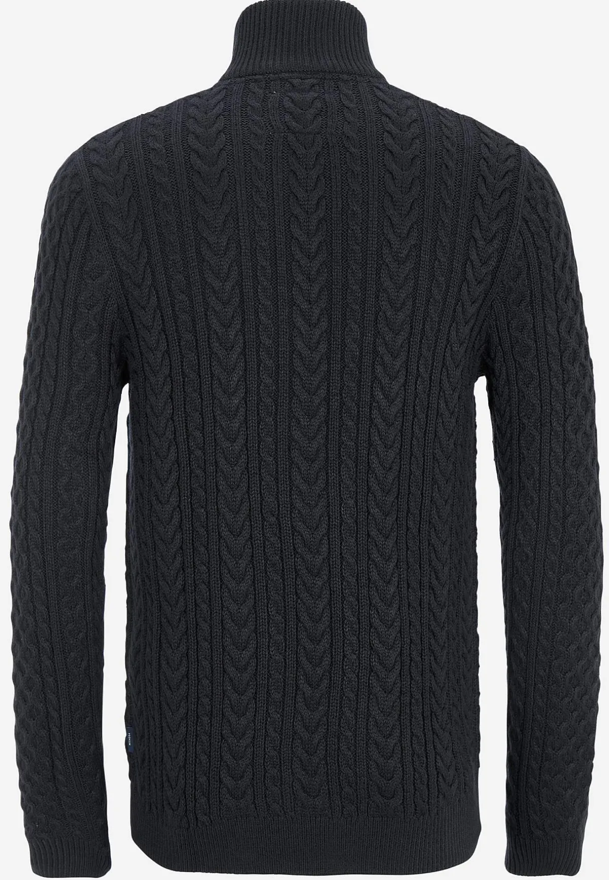 • Hög, ribbstickad krage med praktisk halv dragkedja.