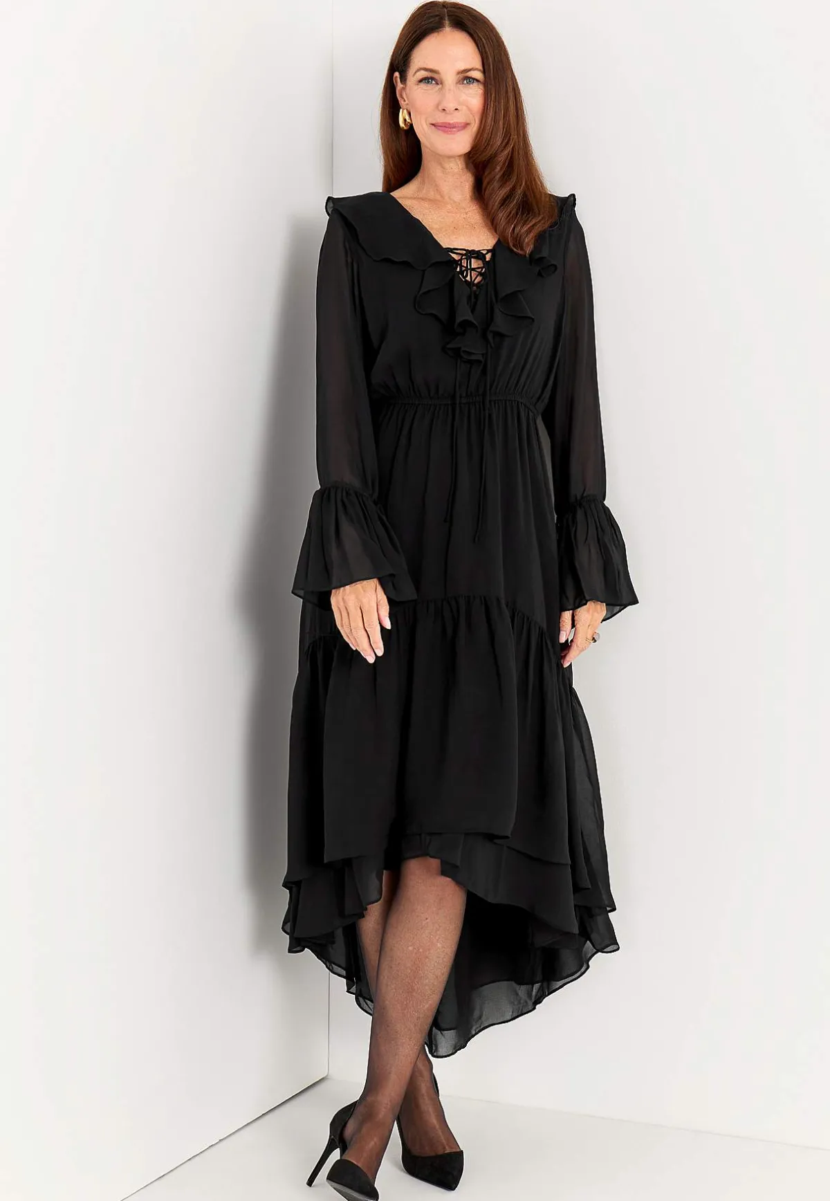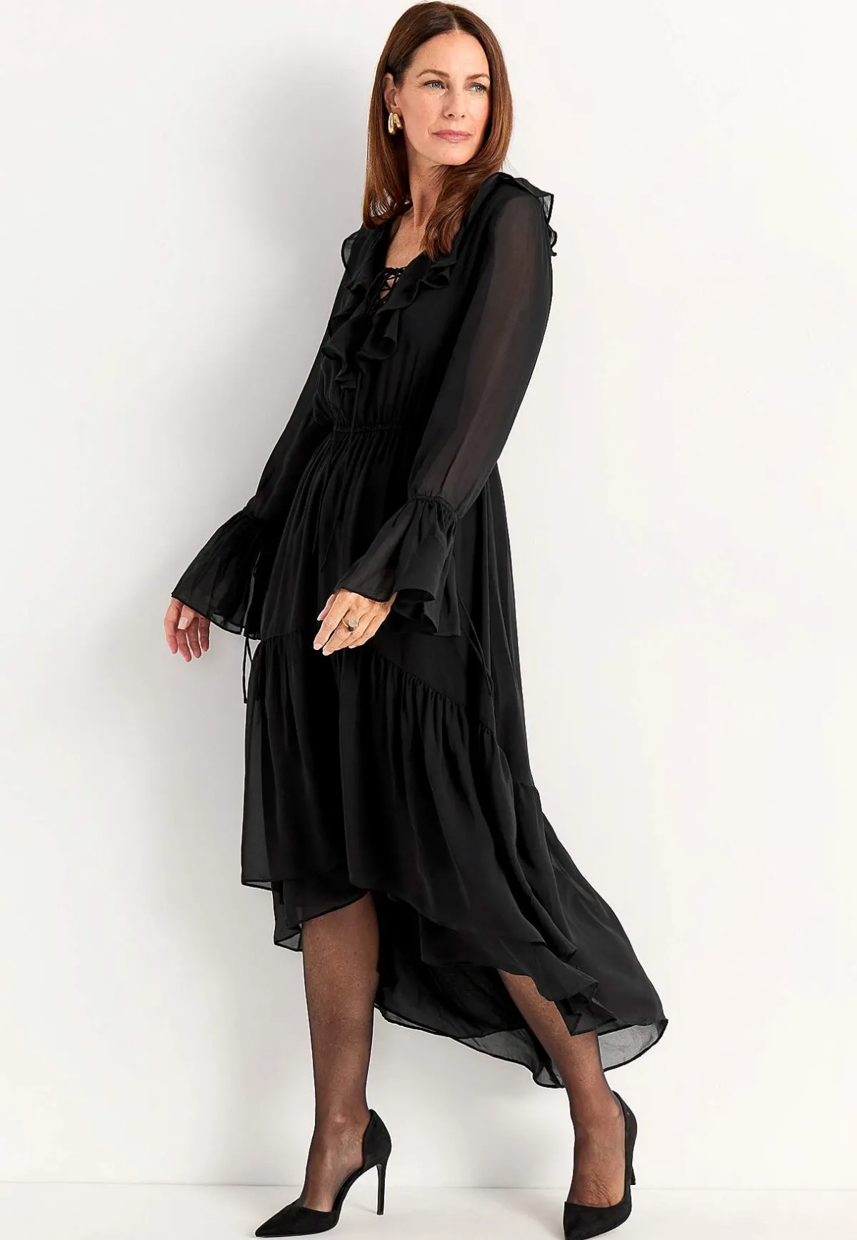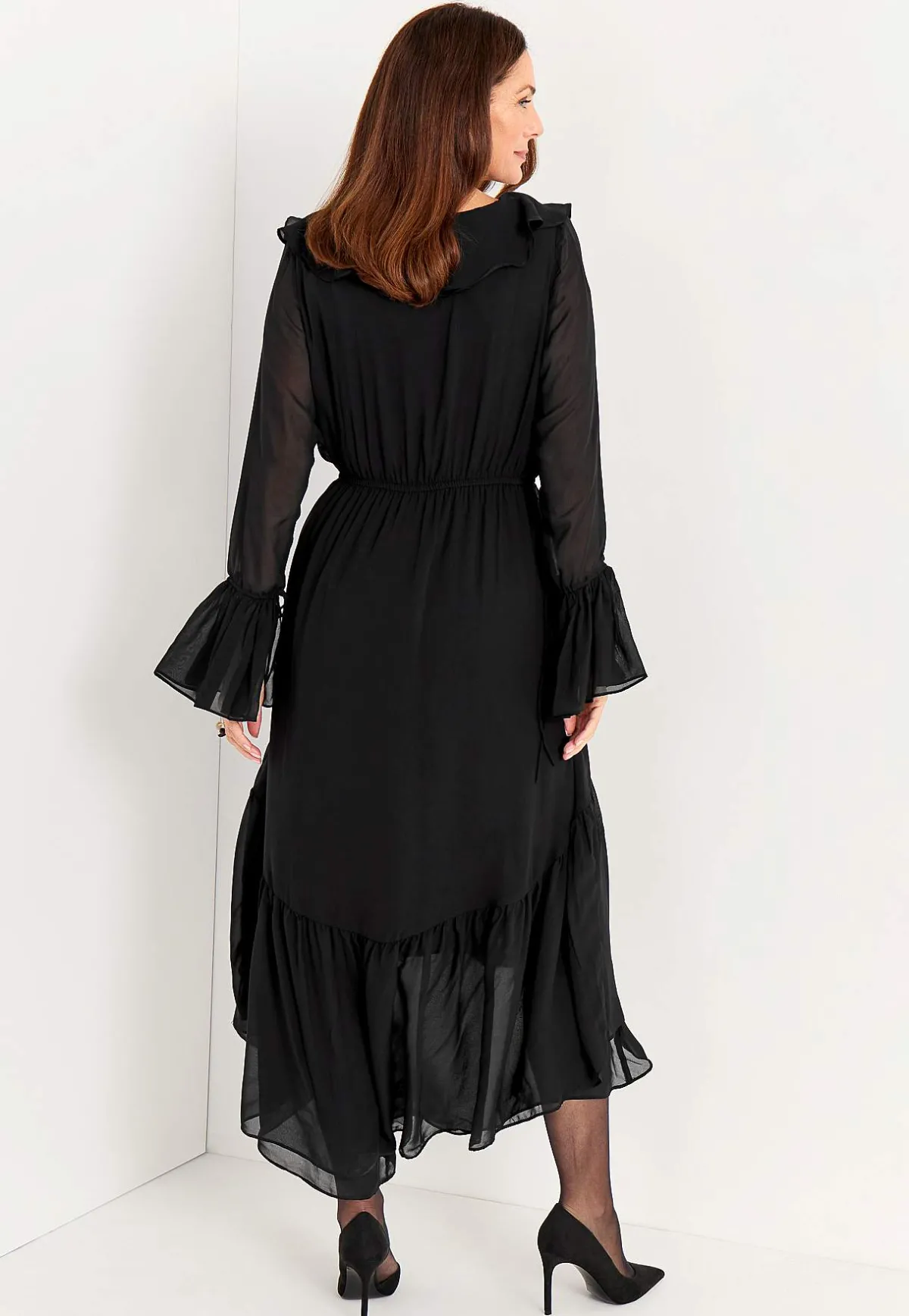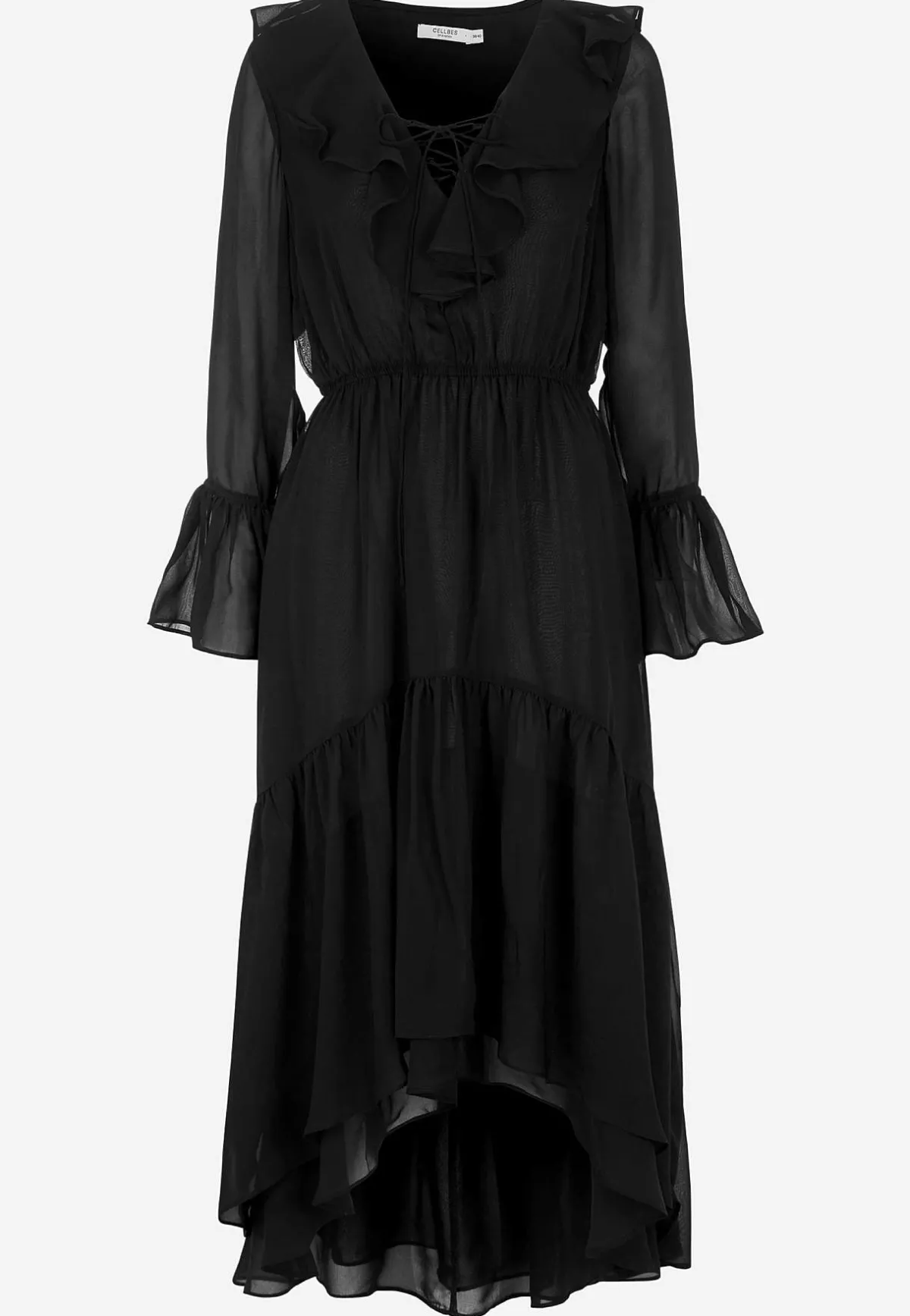 • Långa, skira ärmar med volang och justerbar snörning.